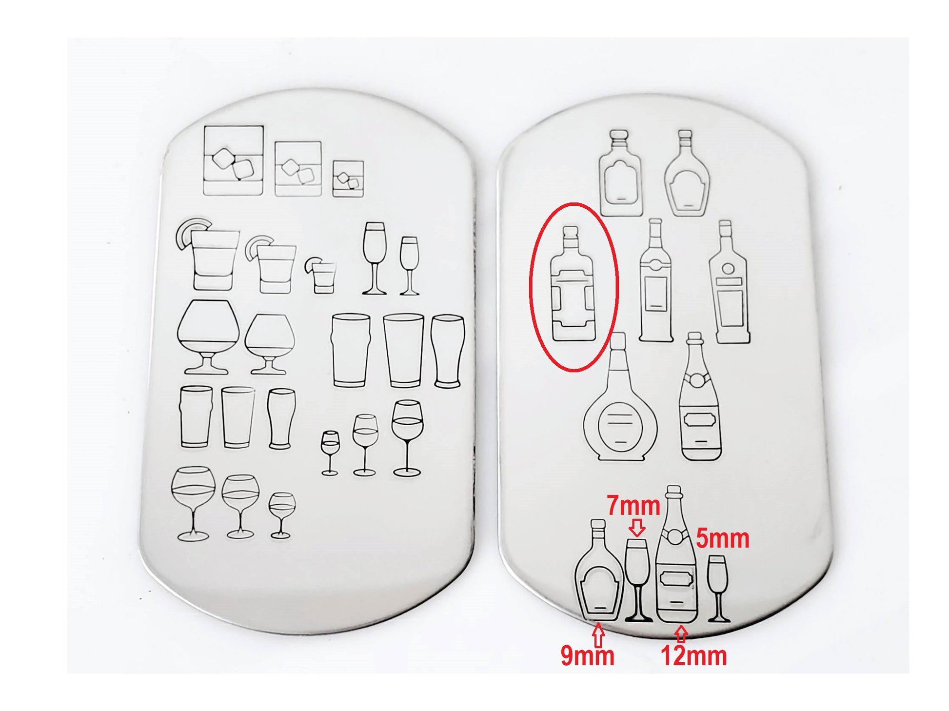 Blame it on the alcohol metal design stamps! This listing features several styles of alcohol bottles and glasses, perfect to create the perfect stamping wetbar in your hand stamp collection! Shot glass hand stamps, beer glass metal stamps, whatever you need, we got it!