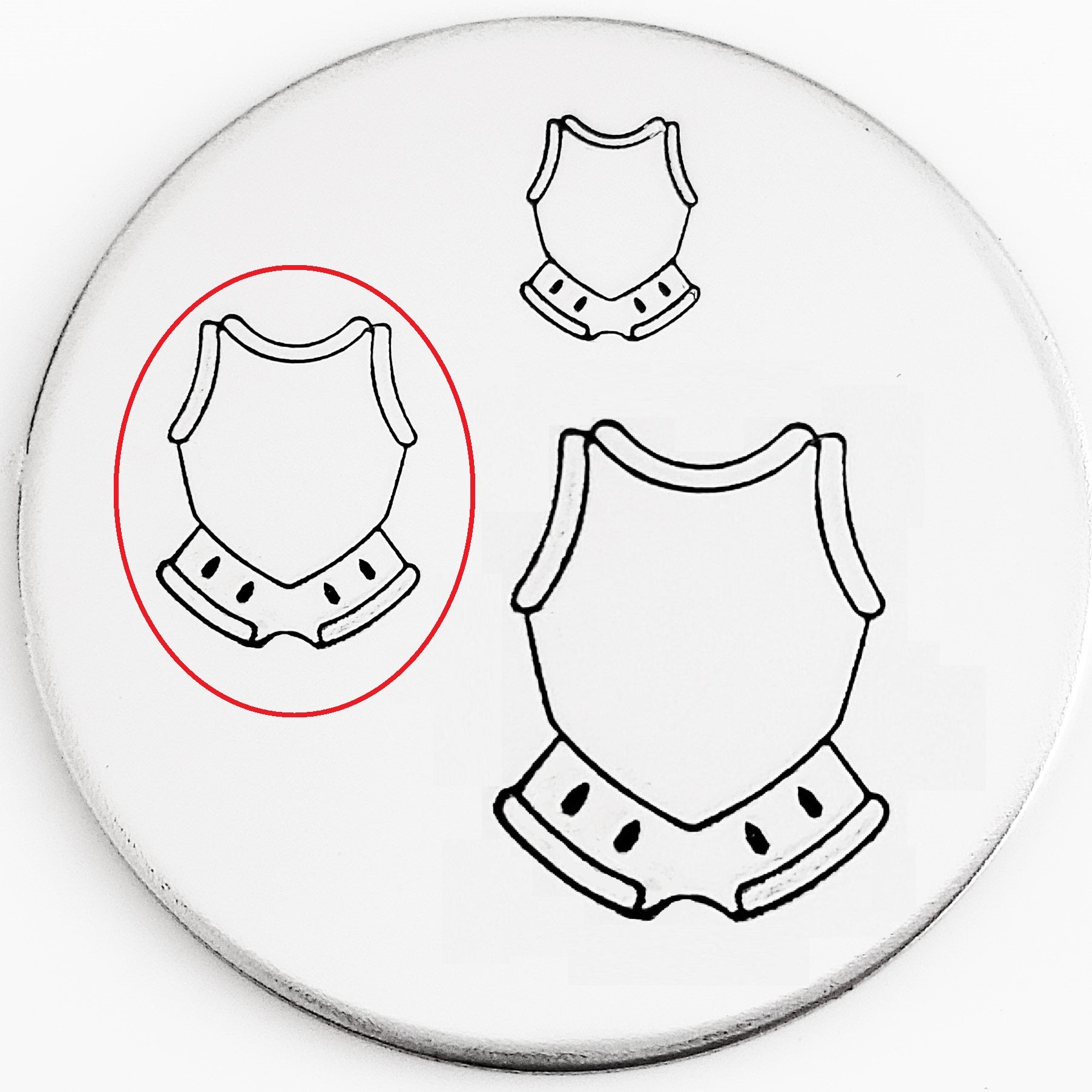 Old timey in style, this armor metal design stamp is just what you need to go into battle! Hand stamp armor on guy stuff, sarcastic things, or for history lovers of all ages! Pair with swords, axes, and shields to have the perfect scene to set for battle!