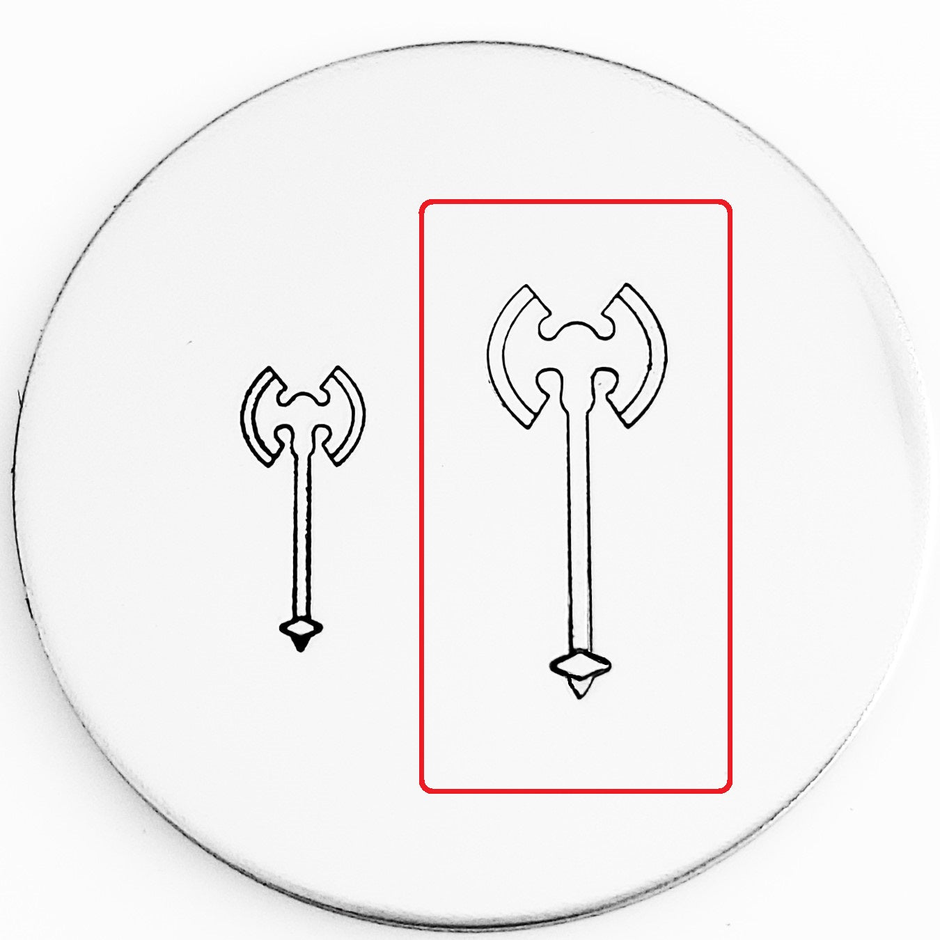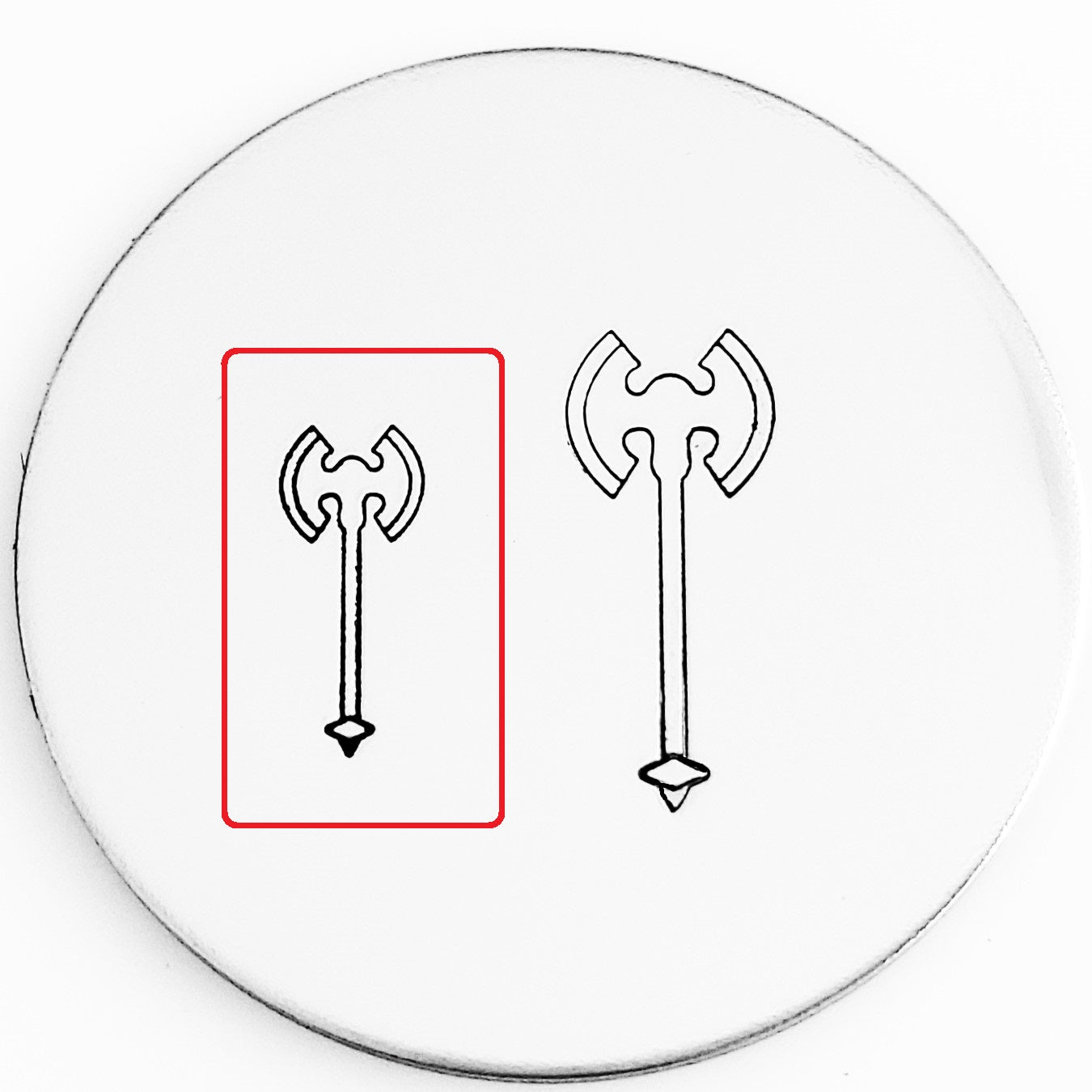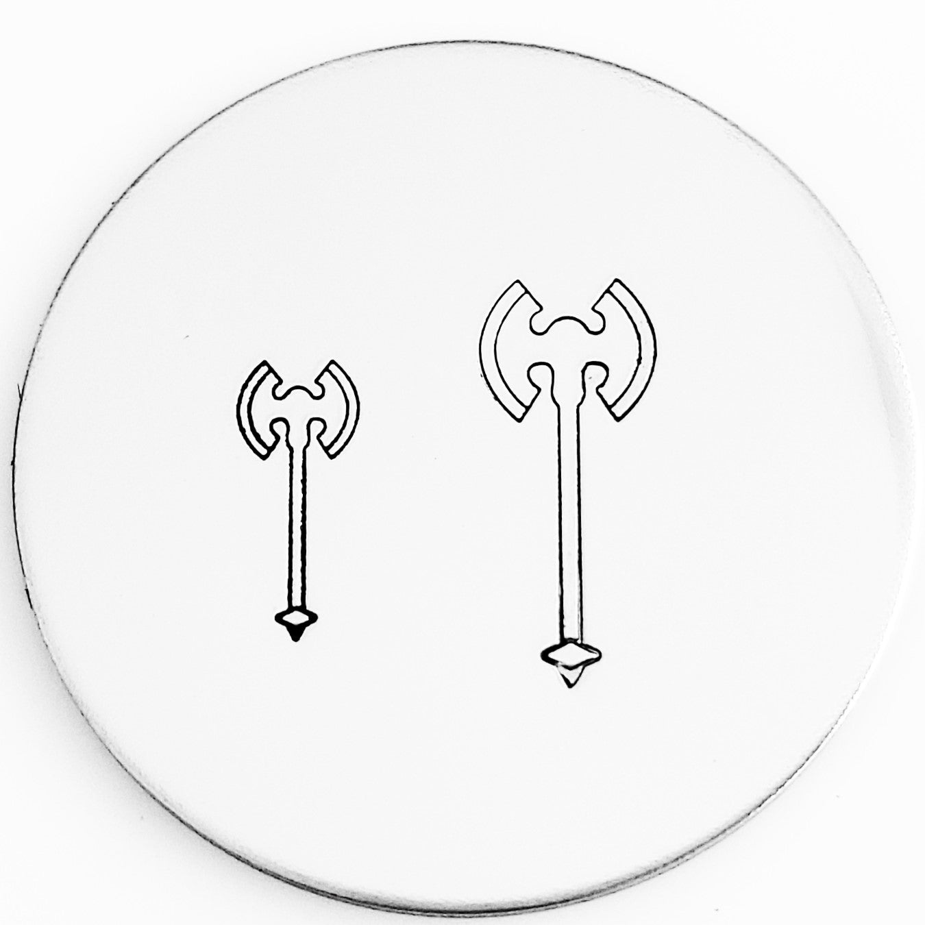 The axe metal design stamp is mightier than the pen! Pair with our sword and armor and you are ready for battle!
