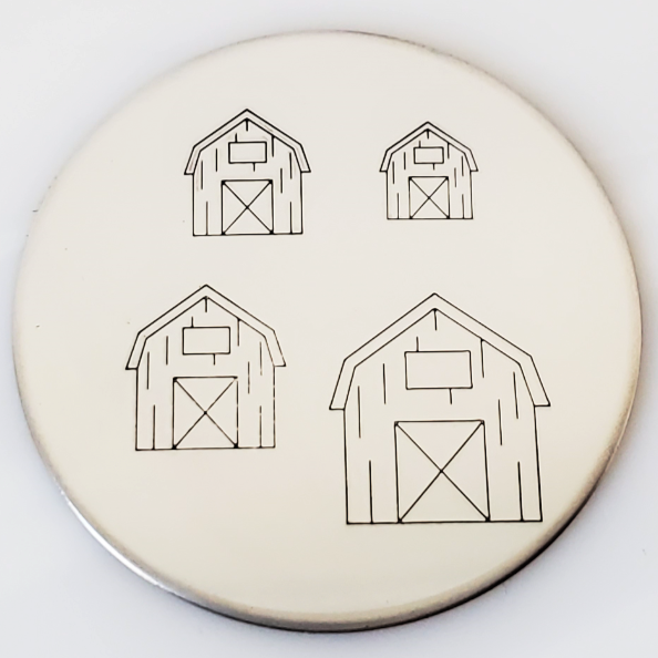 With all the farm and barn animals, gnomes, fairy wings, picket fences... you're going to need a barn metal design stamp to store all your little friends! This barn hand stamp was drawn by one of our bestie artists, Melissa Demke.