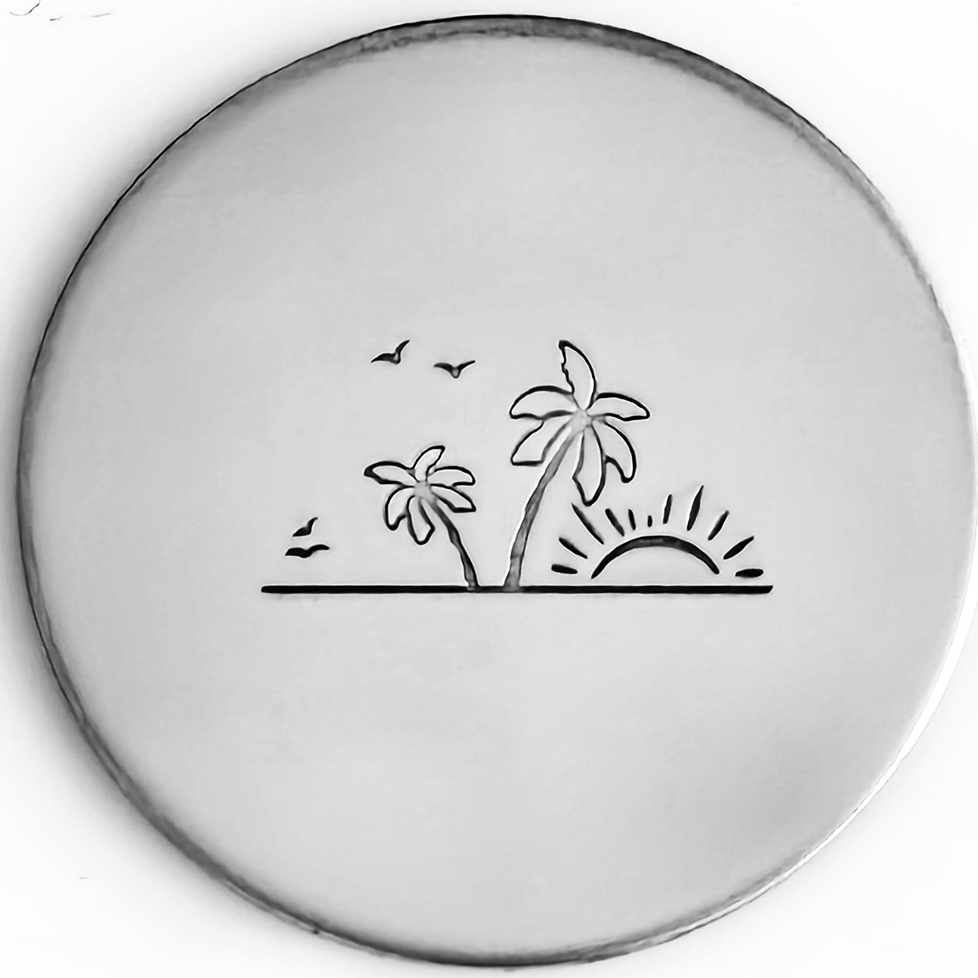 Trees, ocean, sun, who wouldn't dream all day of a beach scene metal design stamp like this?