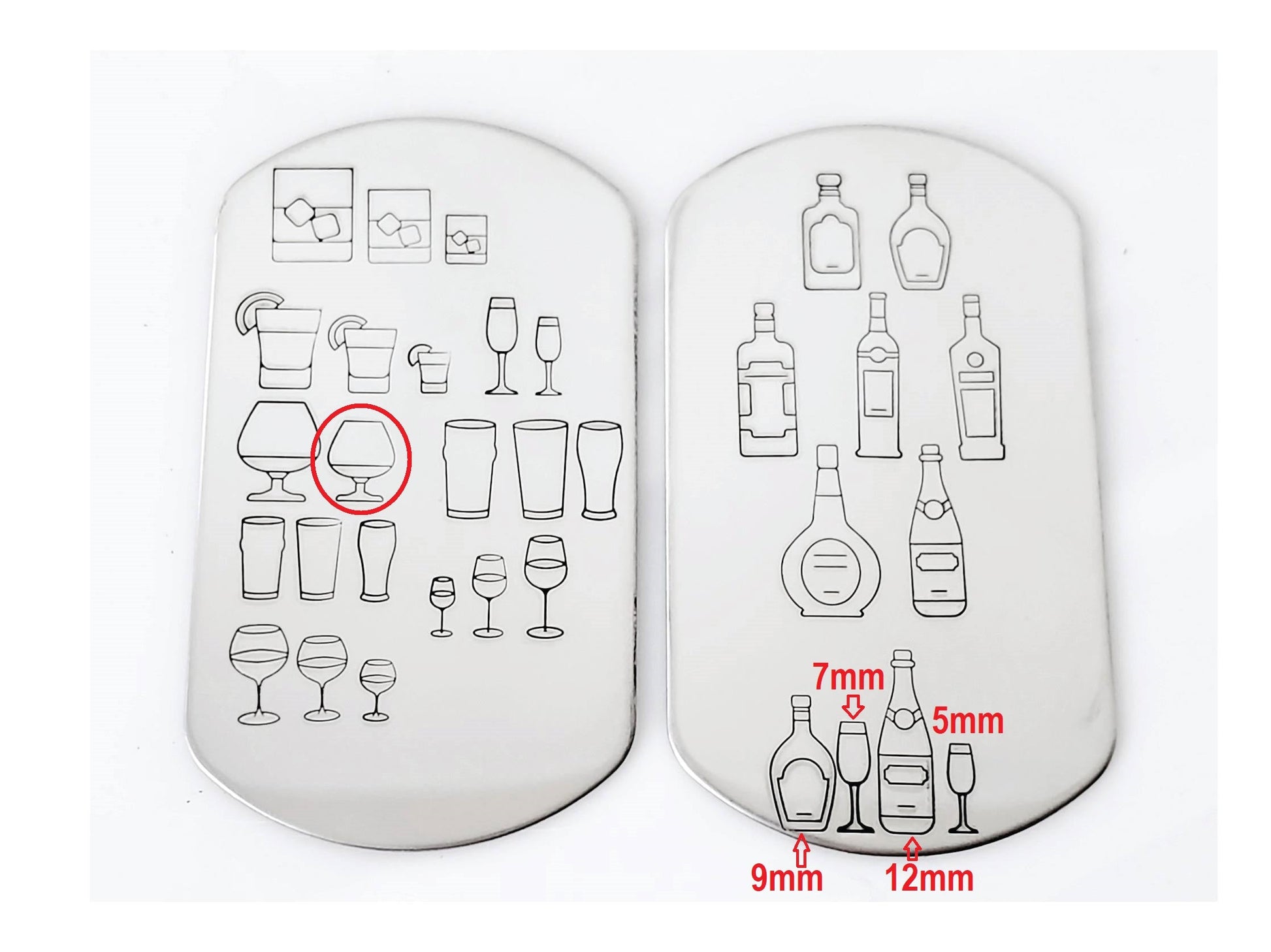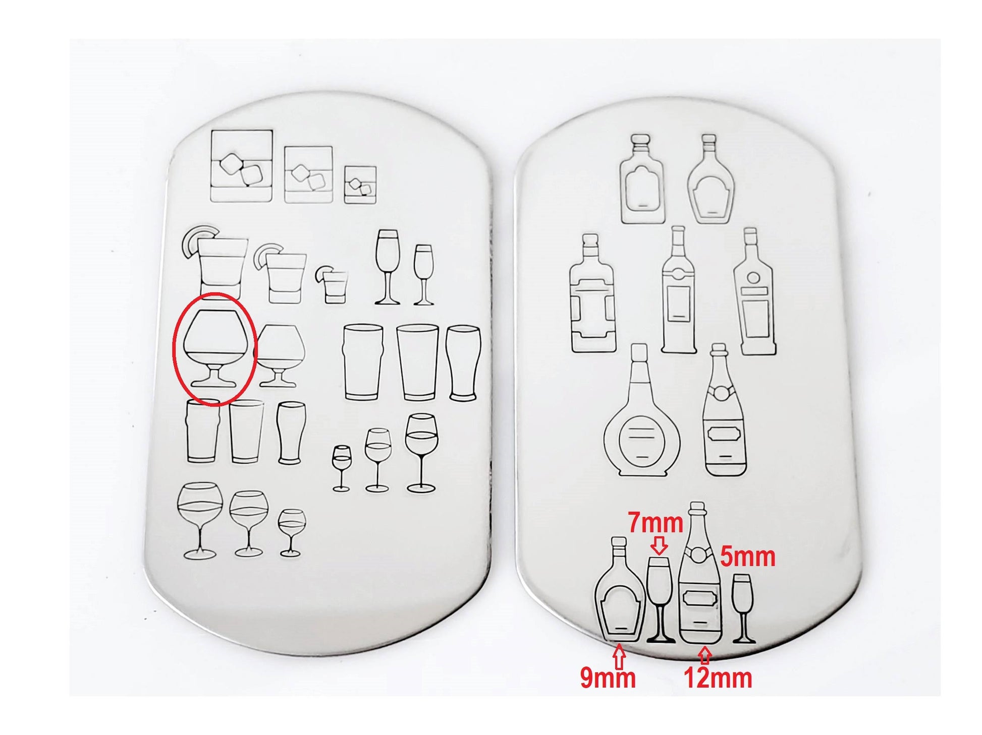 Blame it on the alcohol metal design stamps! This listing features several styles of alcohol bottles and glasses, perfect to create the perfect stamping wetbar in your hand stamp collection! Shot glass hand stamps, beer glass metal stamps, whatever you need, we got it!