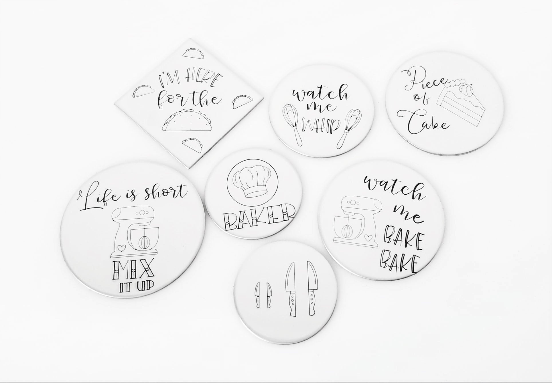 Finally! Some metal design stamps for chefs! Check out our full line of hand stamping food and food accessory designs! Whisk, mixer, cake, tacos, chef hat, and now a knife, all in hand stamping designs! Font Fixation is ready for your food and drink hand stamping needs!