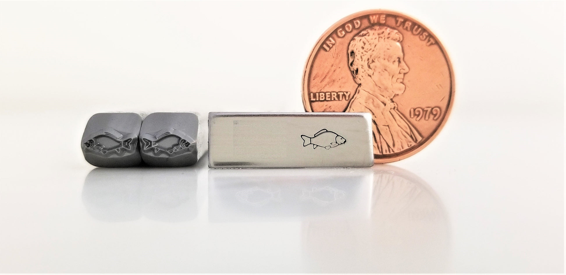 This carp fish metal design stamp will have you shouting "FISH ON!" Well, not really.... but close enough. We have a whole line of fishing inspired metal design stamps in the "Guy Stuff" section of our Design Stamps.