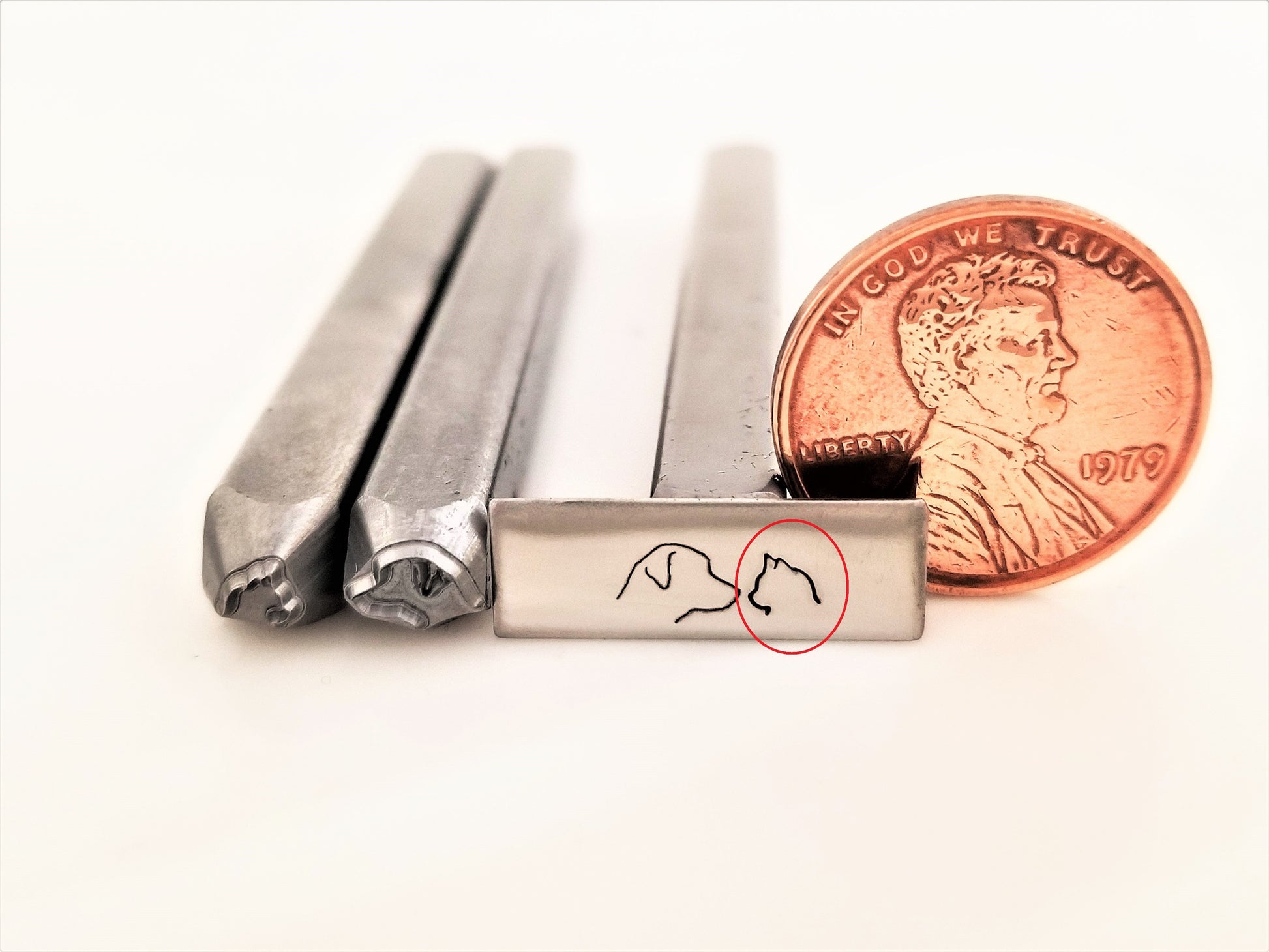 The cutest best friends ever! This unlikely hand stamp cat and dog metal design stamp couple comes in two stamps, and can be stamped separately or nose to nose! It doesn't get much cuter than this.
