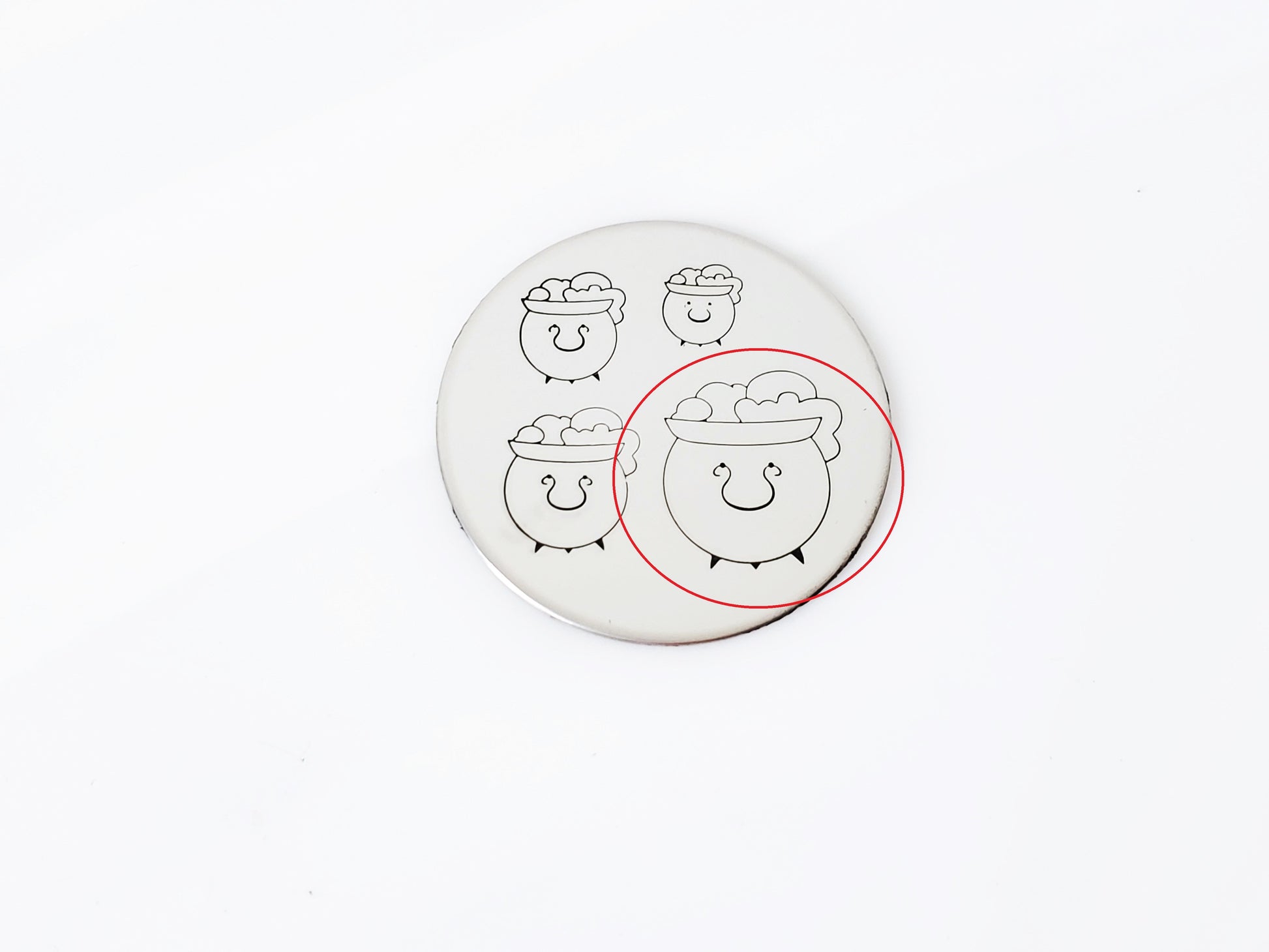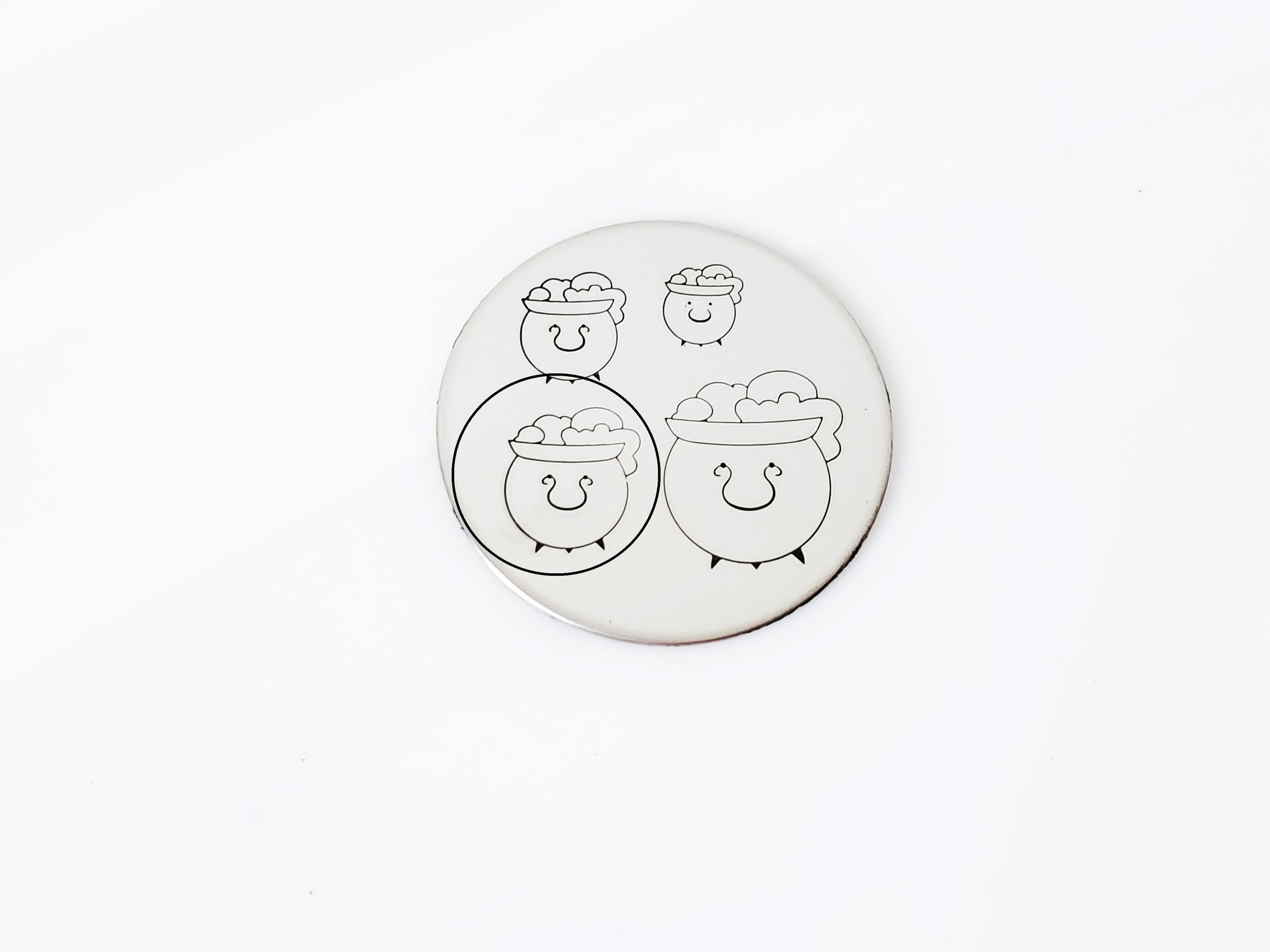 Witches, cauldron, bubble and boil! Eye of newt and wing of bat, make something foul! This hand stamp cauldron metal stamp design is perfect for the Halloween and witch stamping you'll do! Add some tiny circles above it to make your brew look extra!