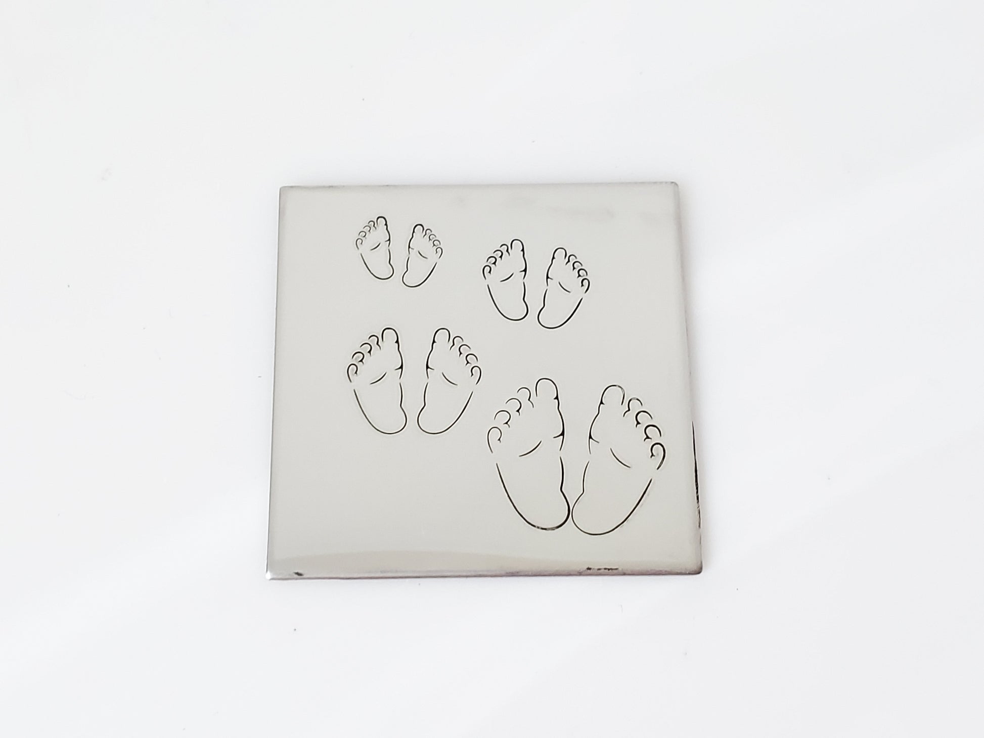 Perfect for baby announcements and Christmas ornaments, our chubby baby feet metal design hand stamps have grown in size!