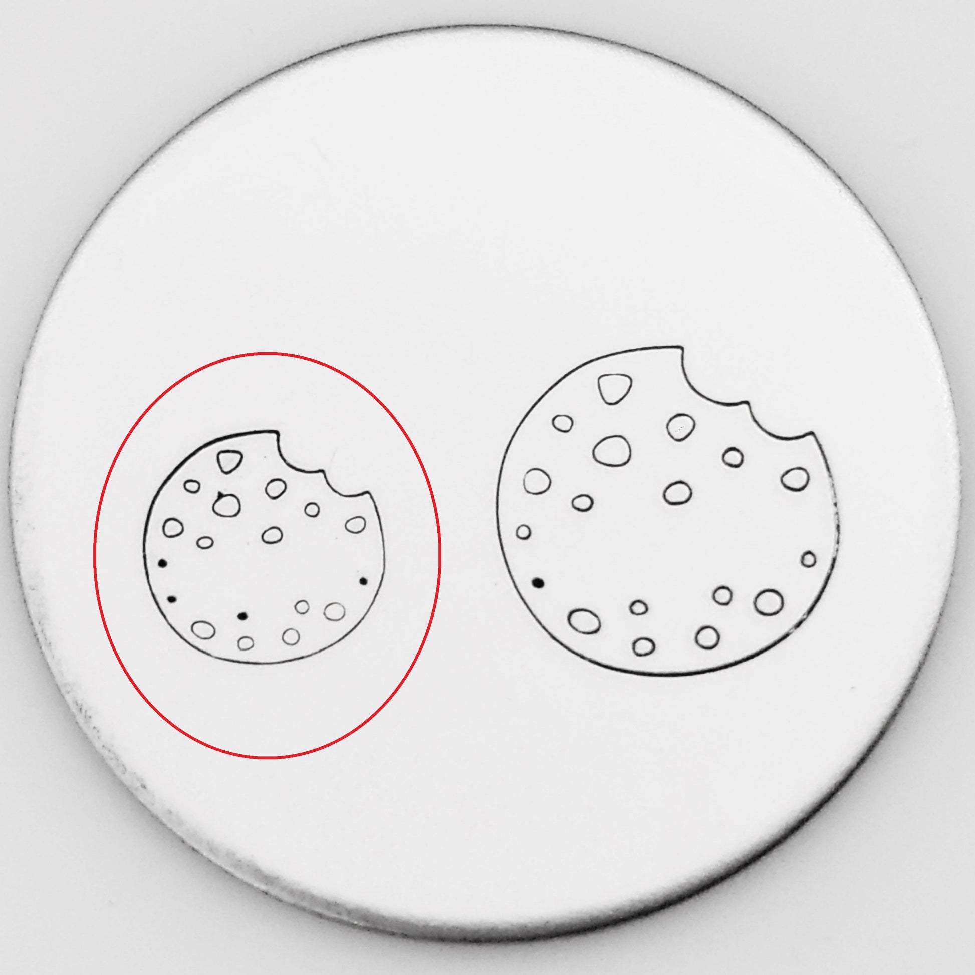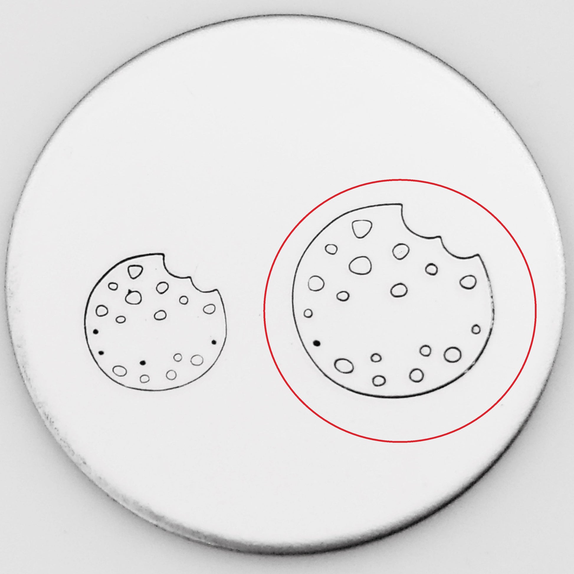 The perfect adorable cookie metal design stamp. Partner with the Cute Milk, and eyes and smiley face, and you have a whole Kawaii look that can be hand stamped with any adorable text or design hand stamps!