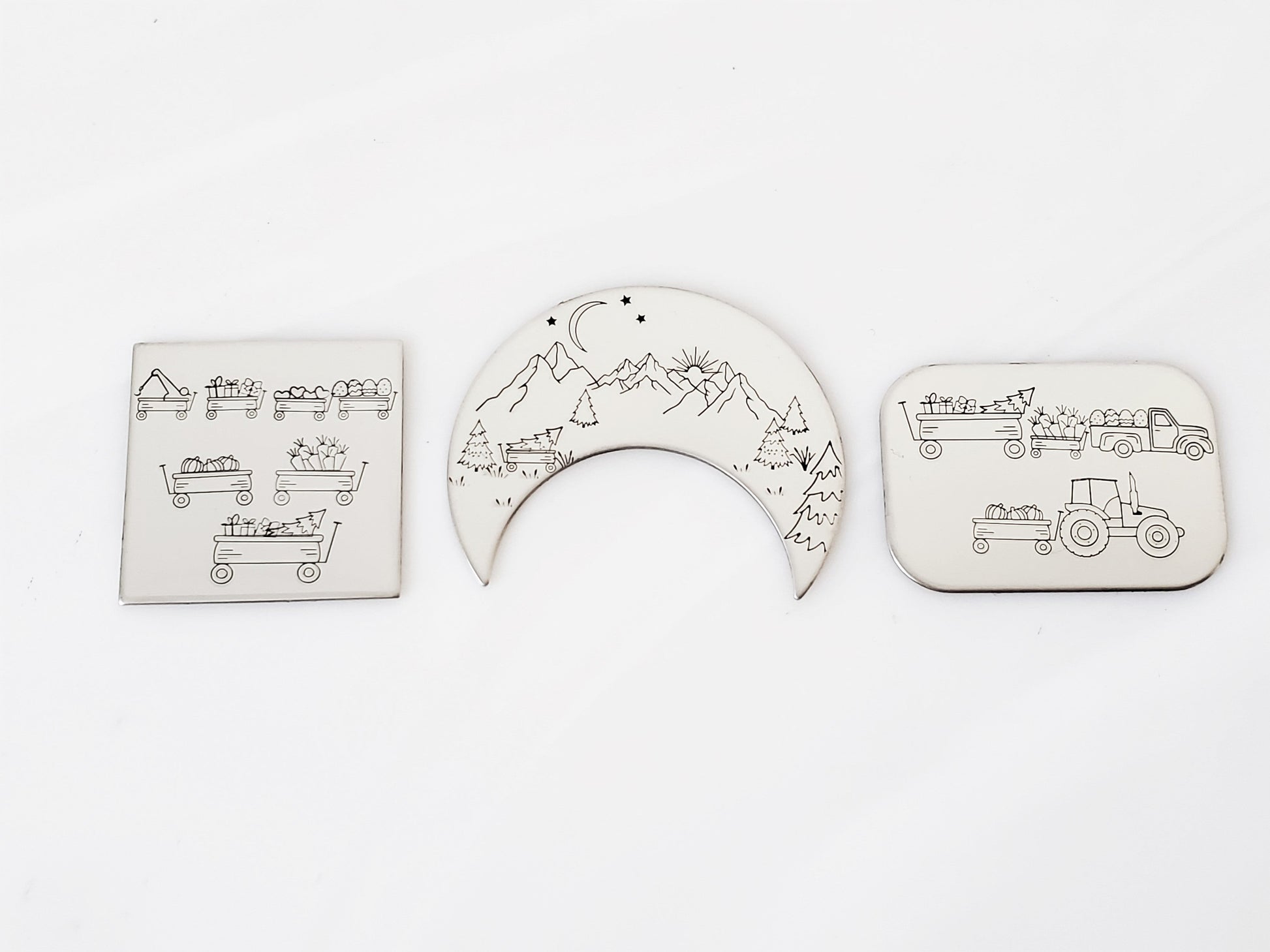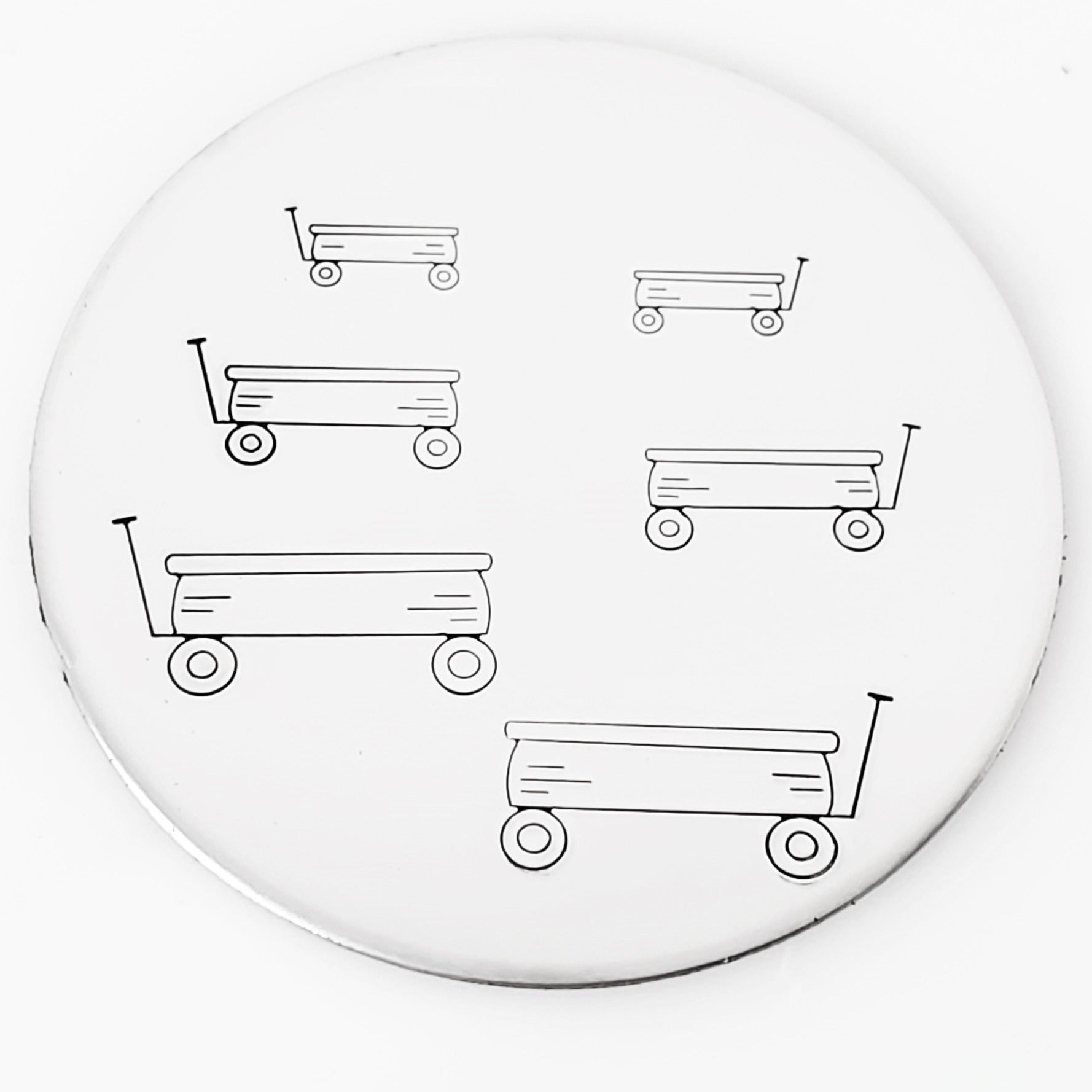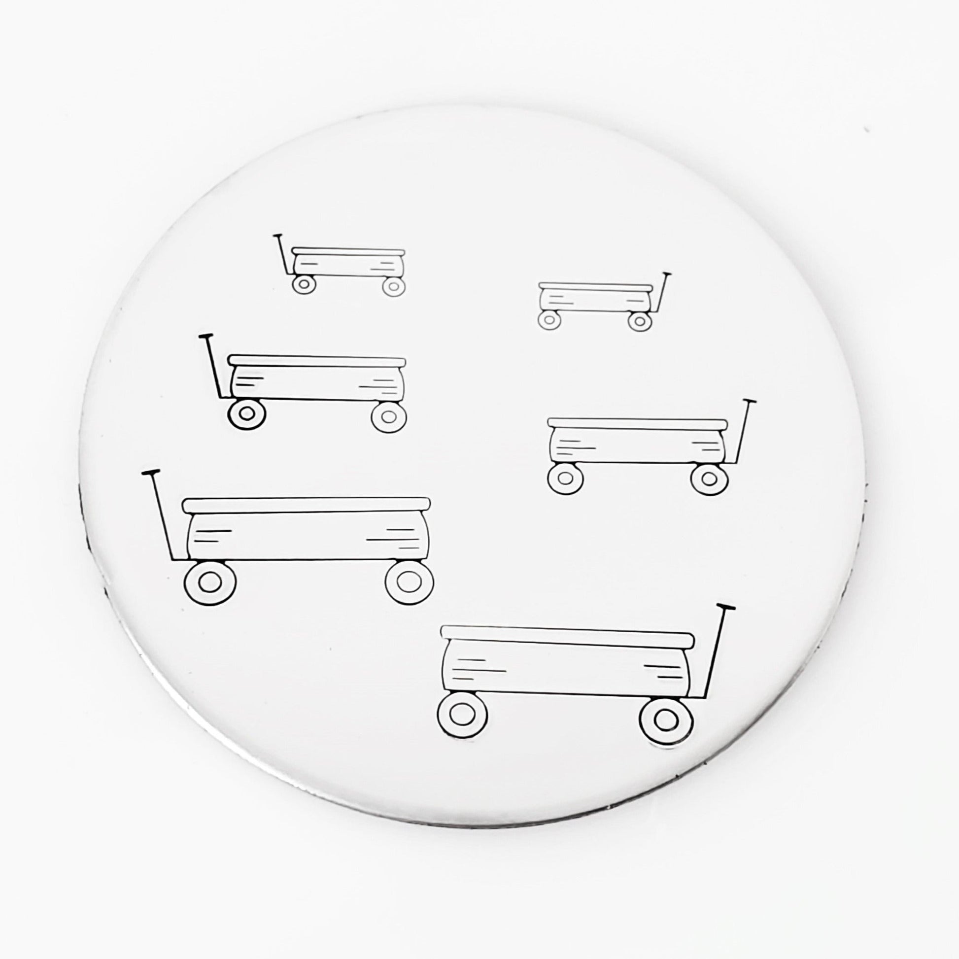 What will you pull in little wagon metal stamp design? This wagon comes in left and right versions so it can go anywhere! Hand stamp your wagon design on it's own in 12mm, with the Pick Up Truck in 9mm, or add as a small accent in 5.5mm. This design was expertly designed and drawn by Melissa Demke! Thank you, Melissa!