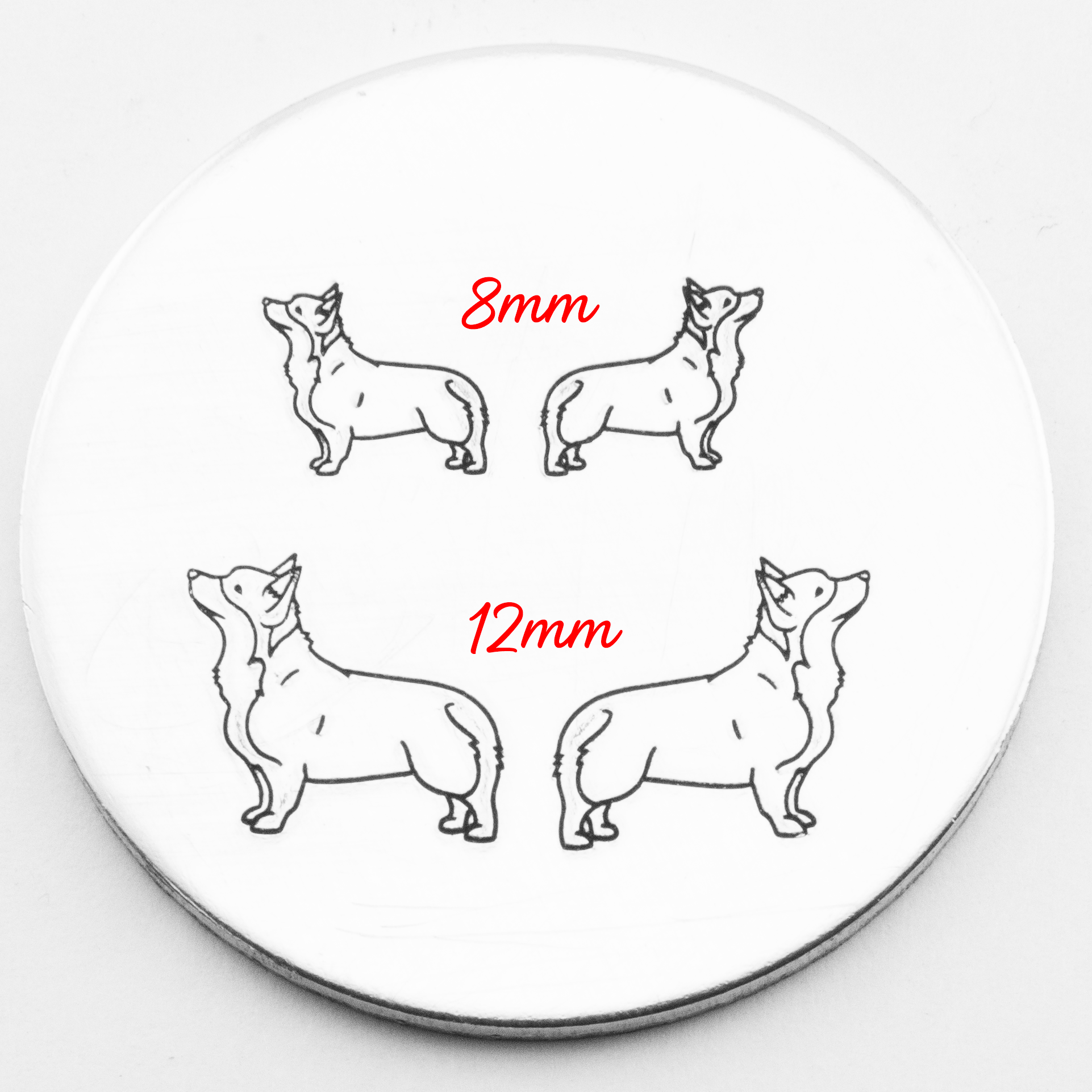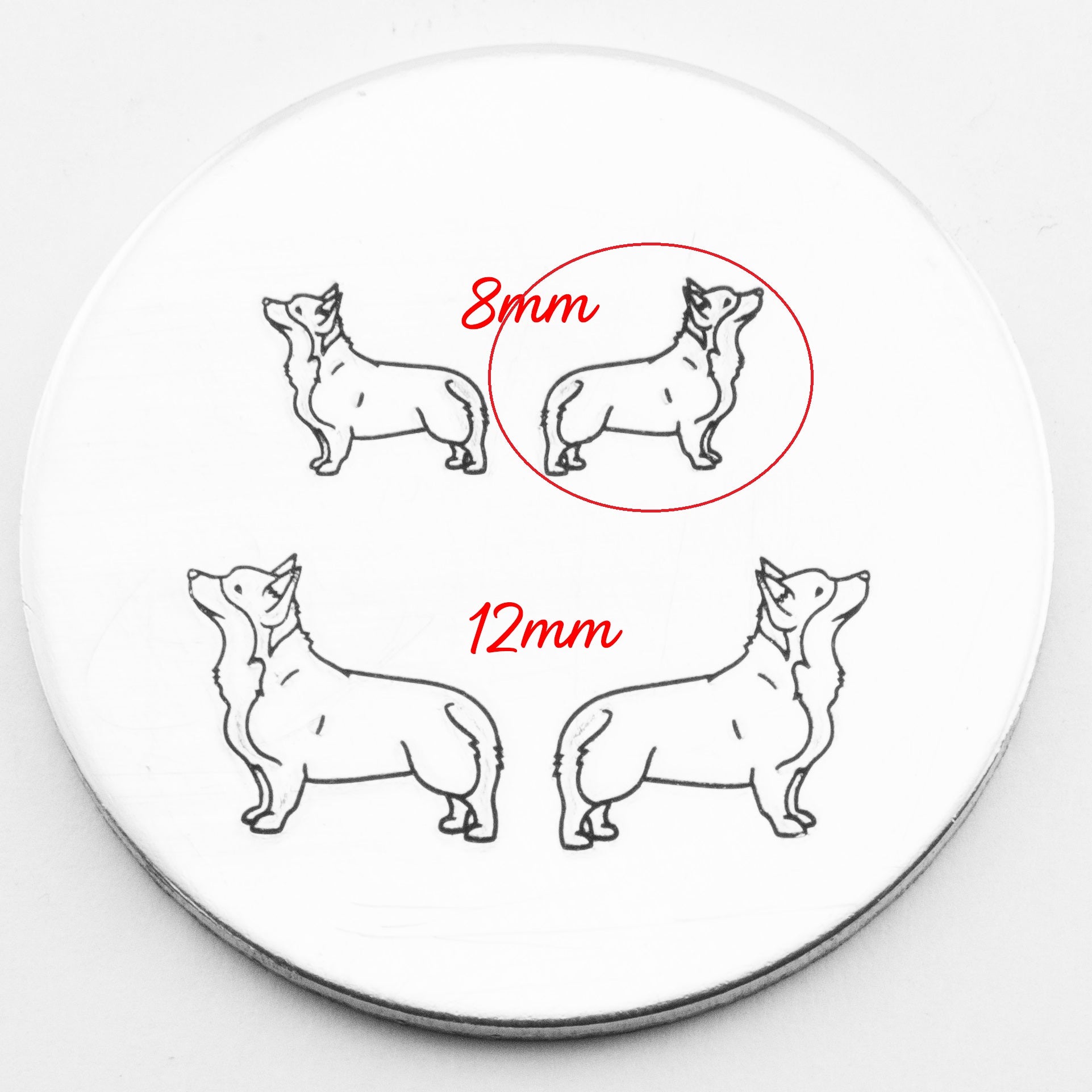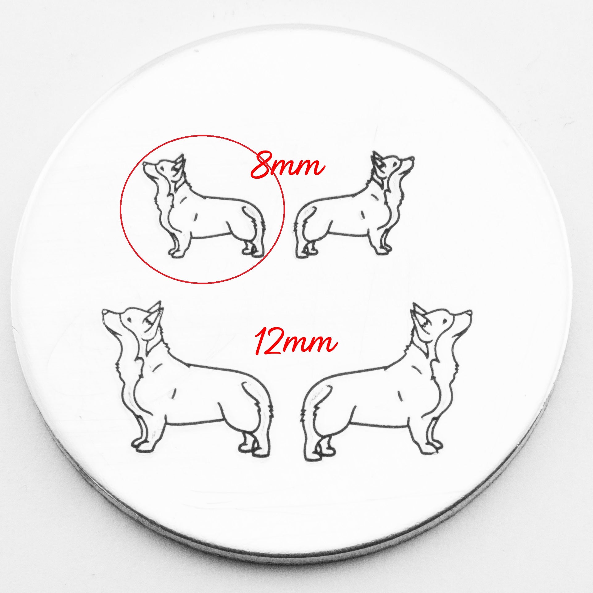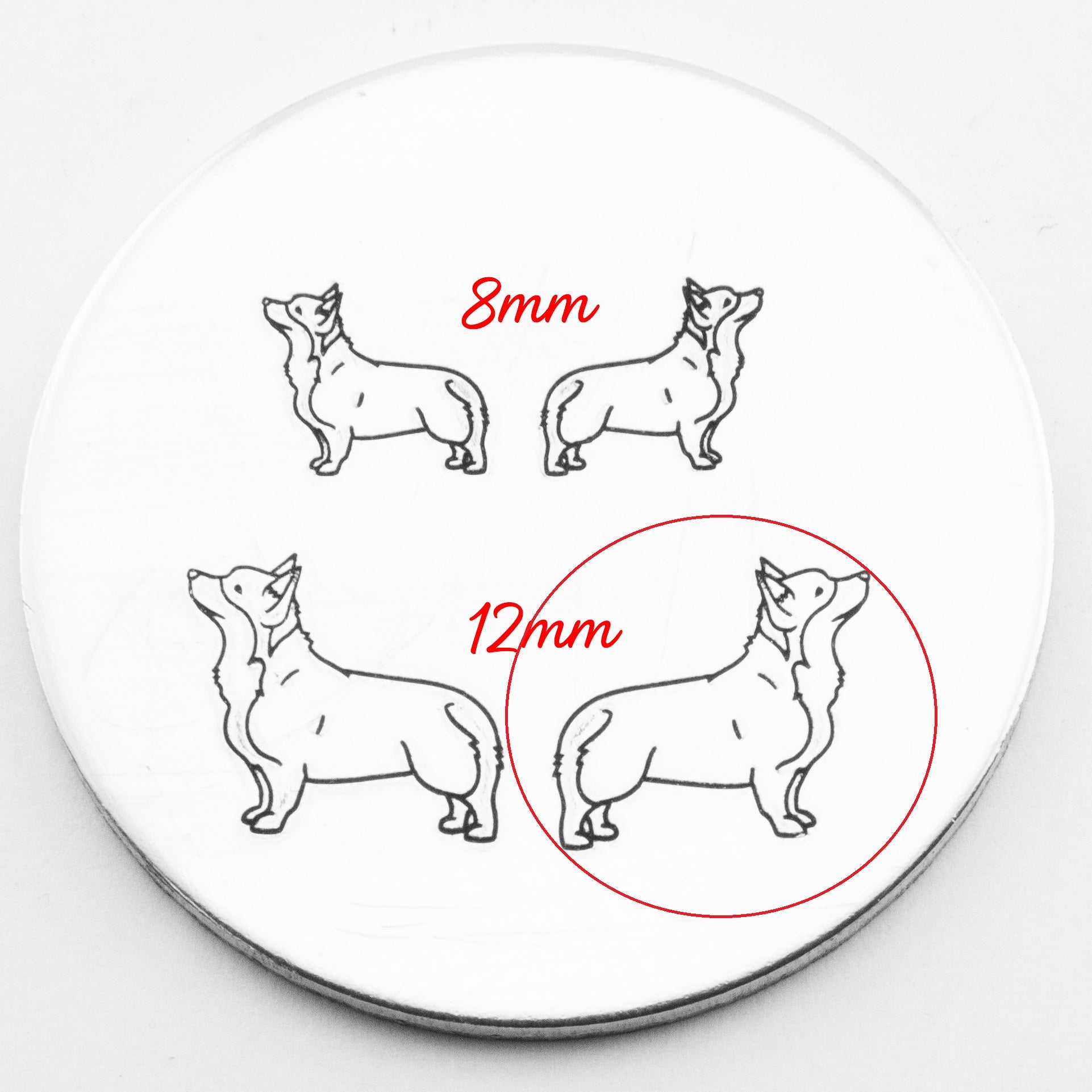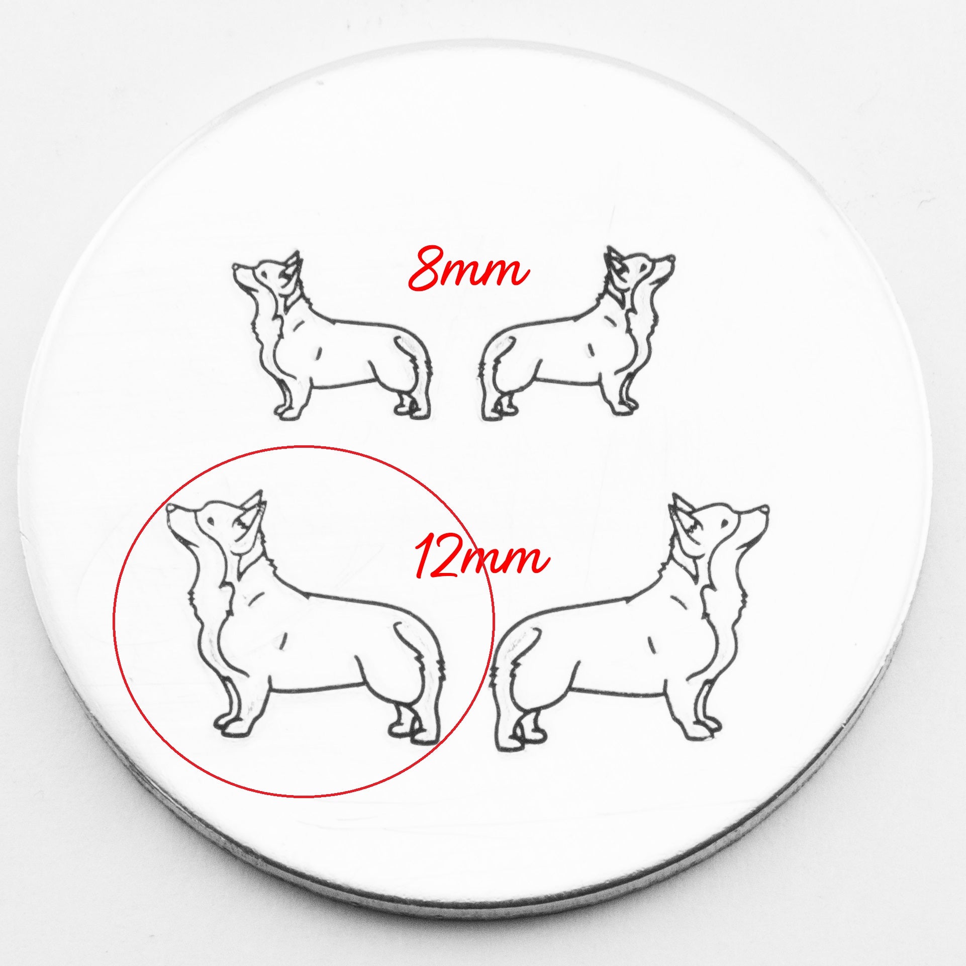 Stamp your way to cuteness overload with our delightful corgi metal stamp! Add a sprinkle of adorable charm to your crafts and products. Let this lovable pup leave its mark on your creations, guaranteed to make your customers smile This Corgi hand stamp comes in two sizes