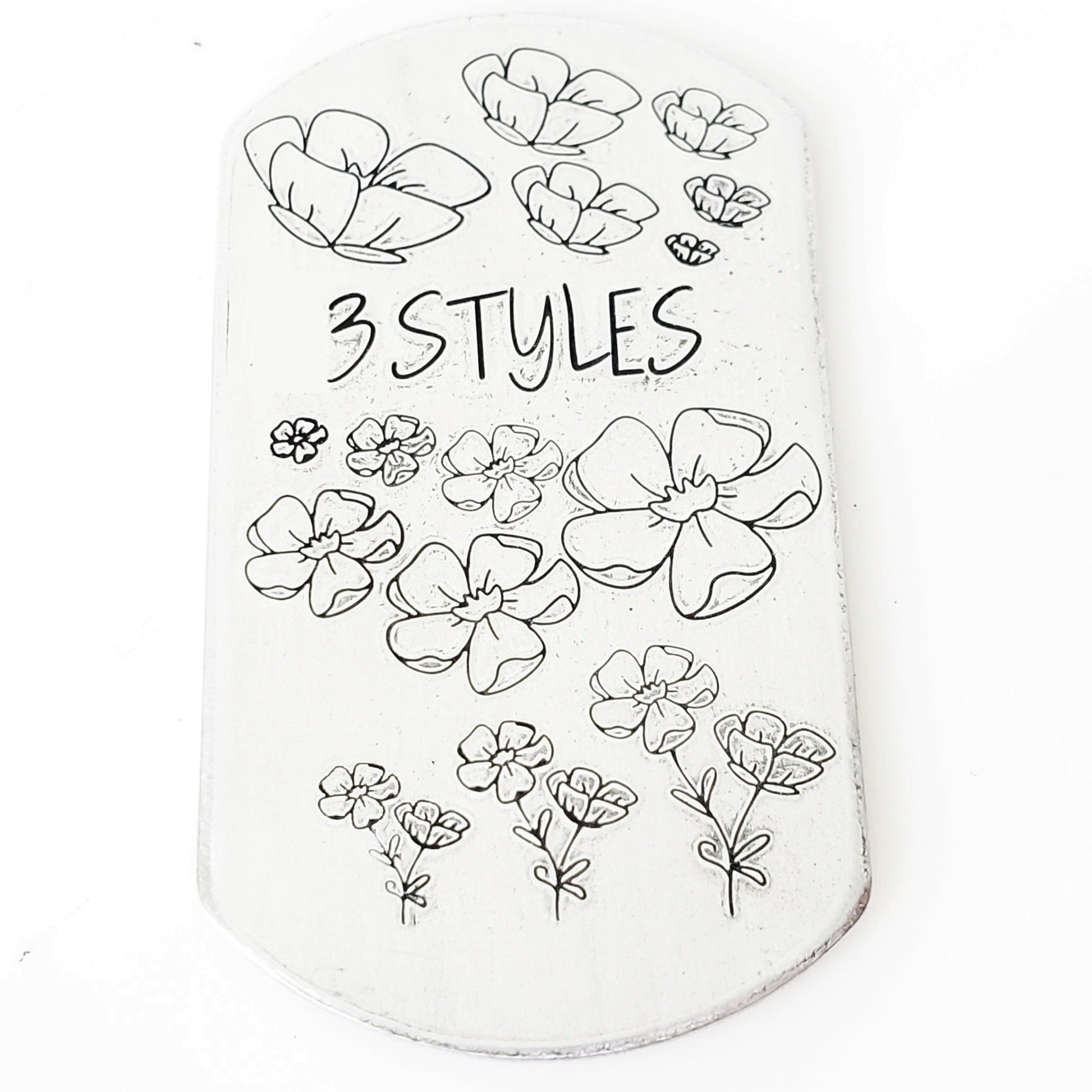 We love the designs we get from Melissa Demke, and this week's floral launch is right up there with some of her best designs! This Cosmos flower metal stamp design is perfect for Mother's Day, springy-thingys, and all the "crap, this is off center -- stamp a flower!" designs you can create!