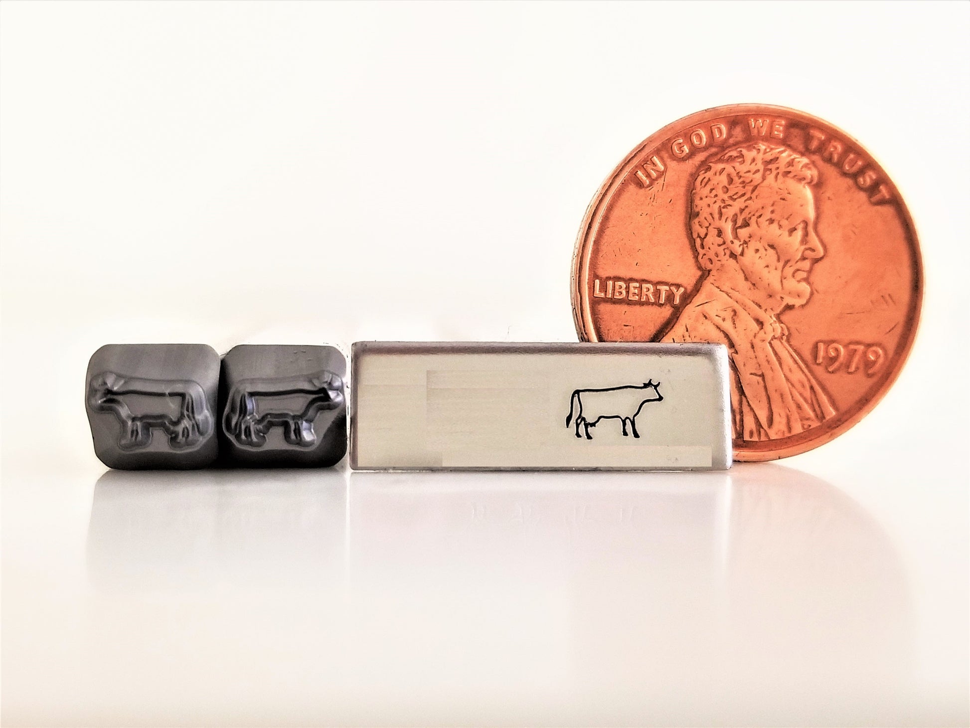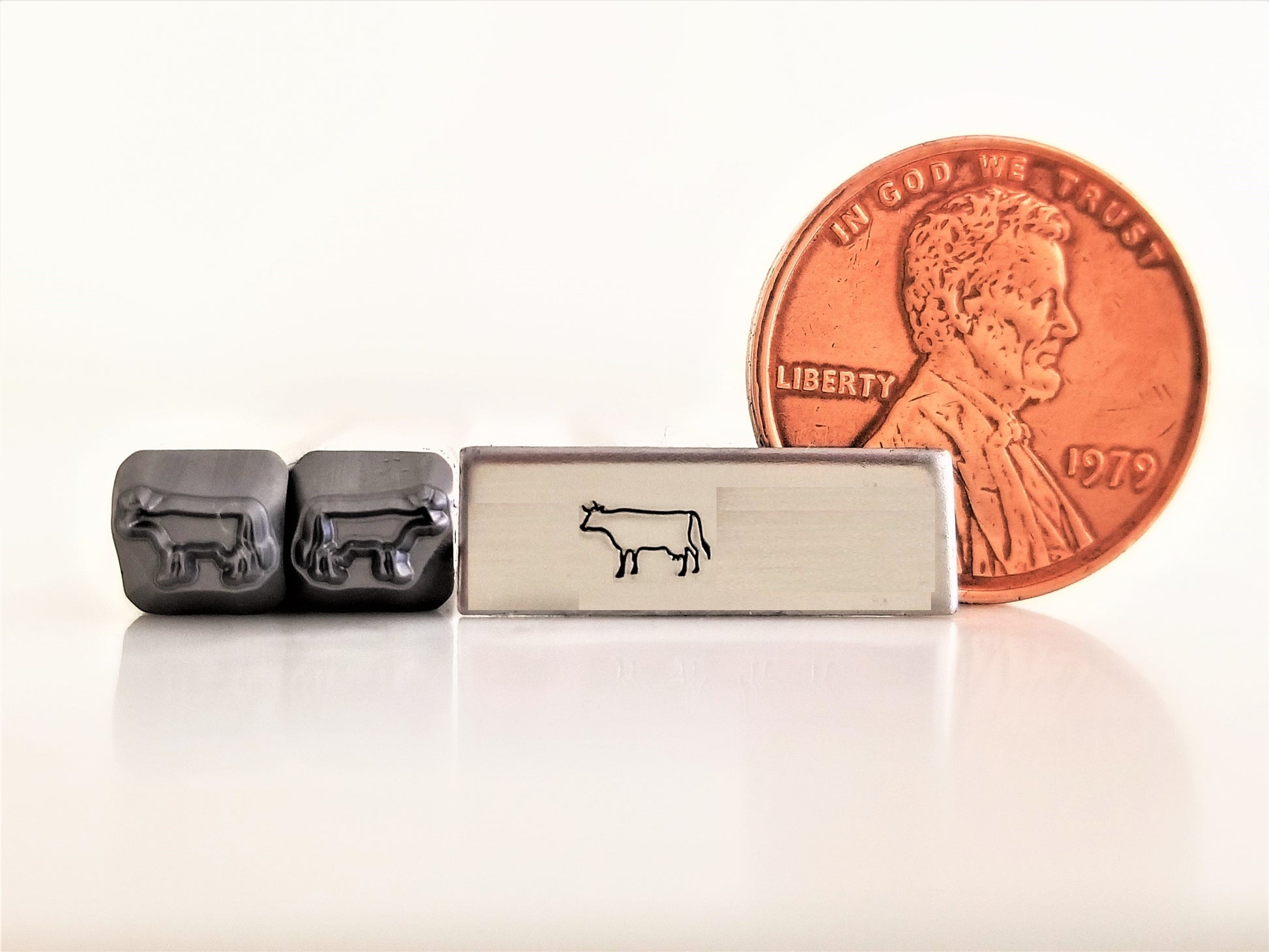 YES! HAVE A COW!! Our 5.0mm hand stamp cow metal design stamp comes in Left and Right facing! Pair it with our Bull and Calf design stamps for the perfect ranch family! All of our Simple Dimple stamps manufactured to be used on all metals, and are designed to fit in most ring jigs.