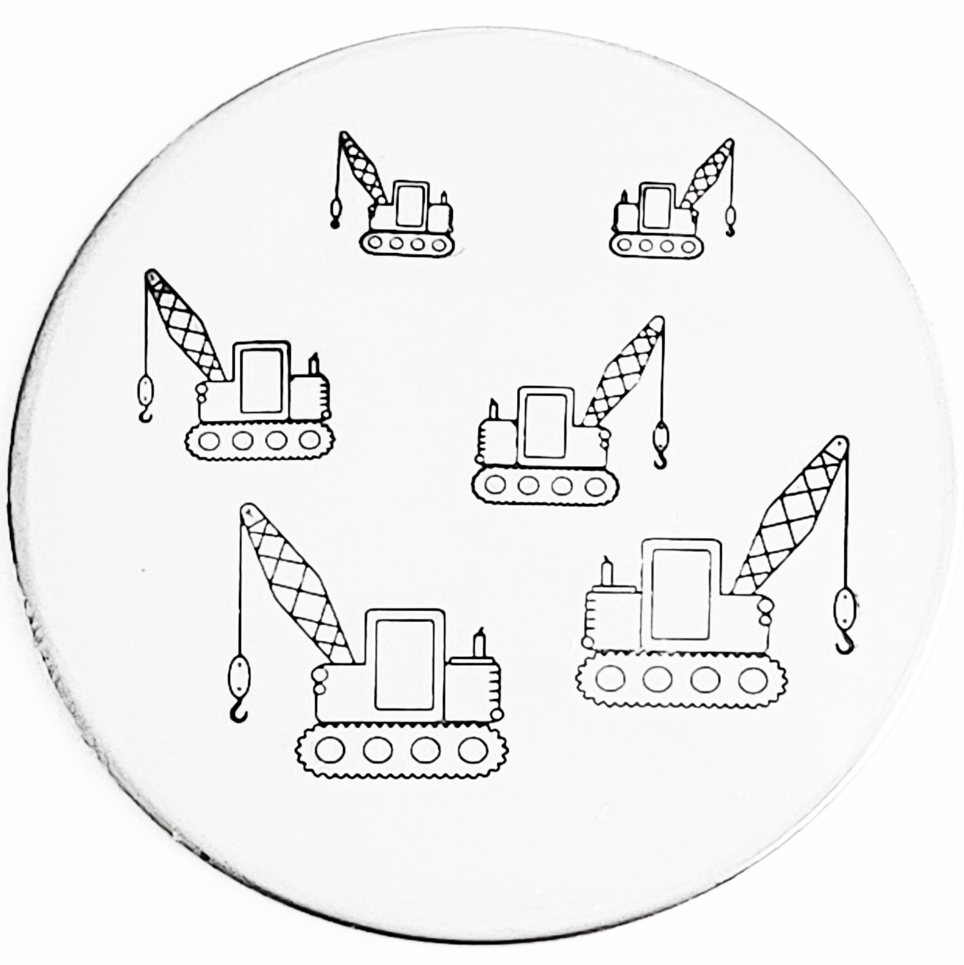 So much construction, we need to put up signs warning people... or at least wear some trendy, orange vests! Check out the full line of 12mm Construction Hand Stamps: Dump Truck, Crane, Bulldozer, Excavator, Cement Truck, Tow Truck, Tractor #02, and Trucks!! Add on a Hard Hat Metal Design Stamp, Pick Axe, or Gas Can, and you have a full construction scene!