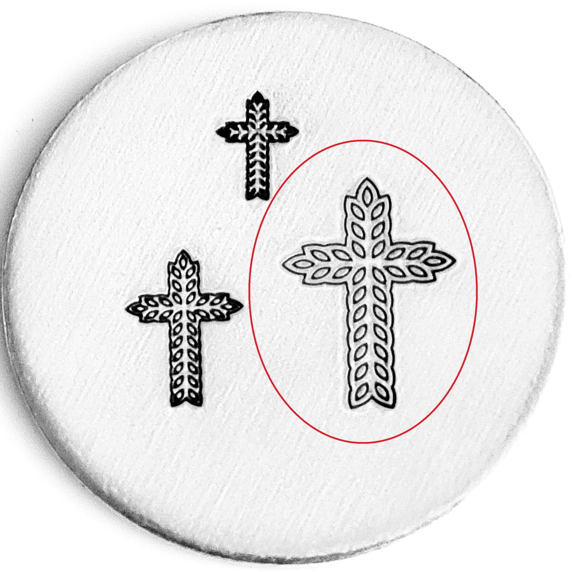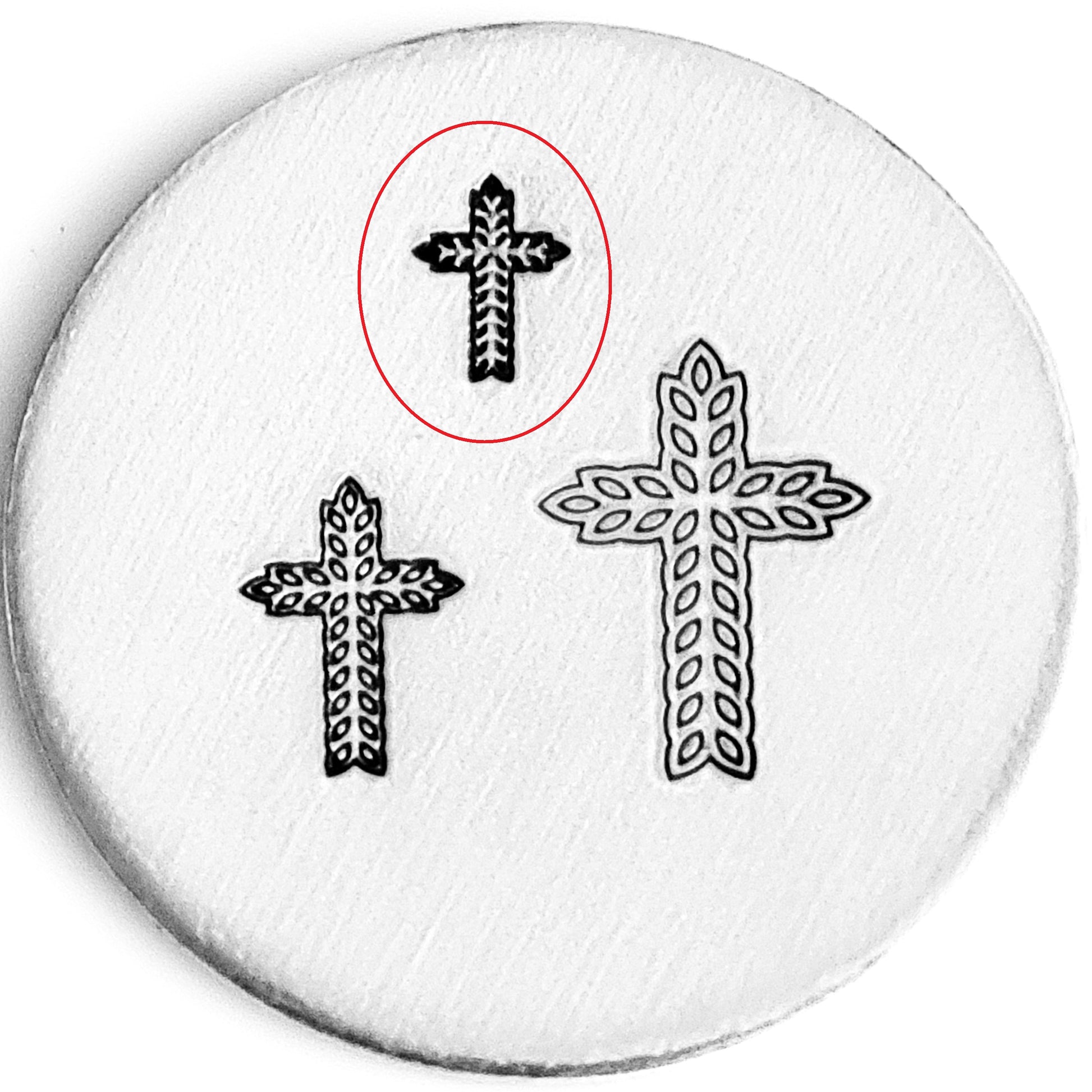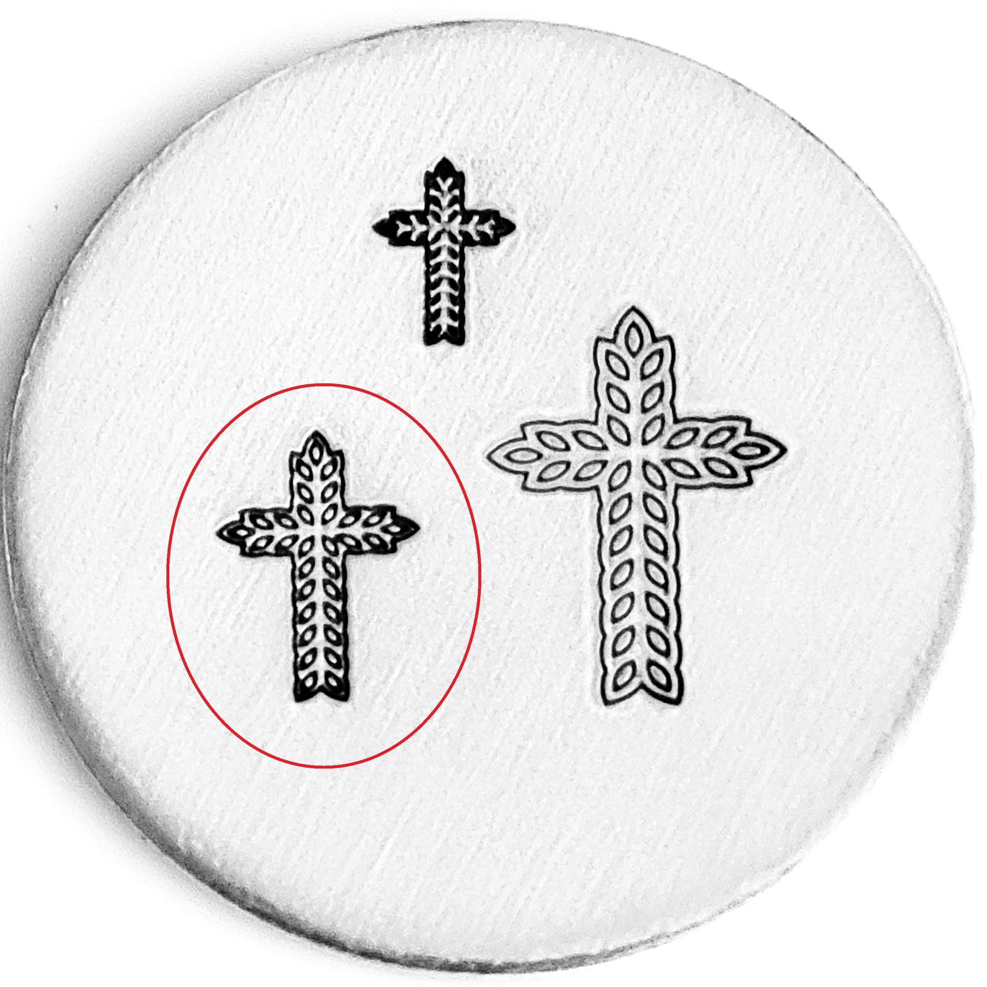 Broadening our collection of cross metal design stamps. Be sure to do a search on our website for "cross" to see which cross hand stamp styles we have in stock! This cross is made from a crown and thorns.