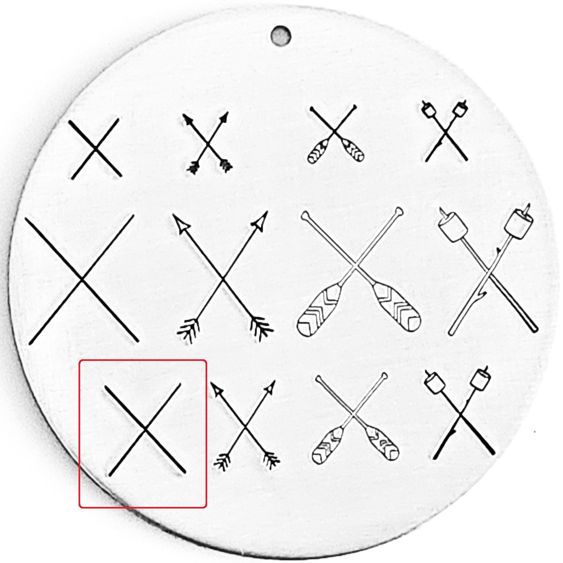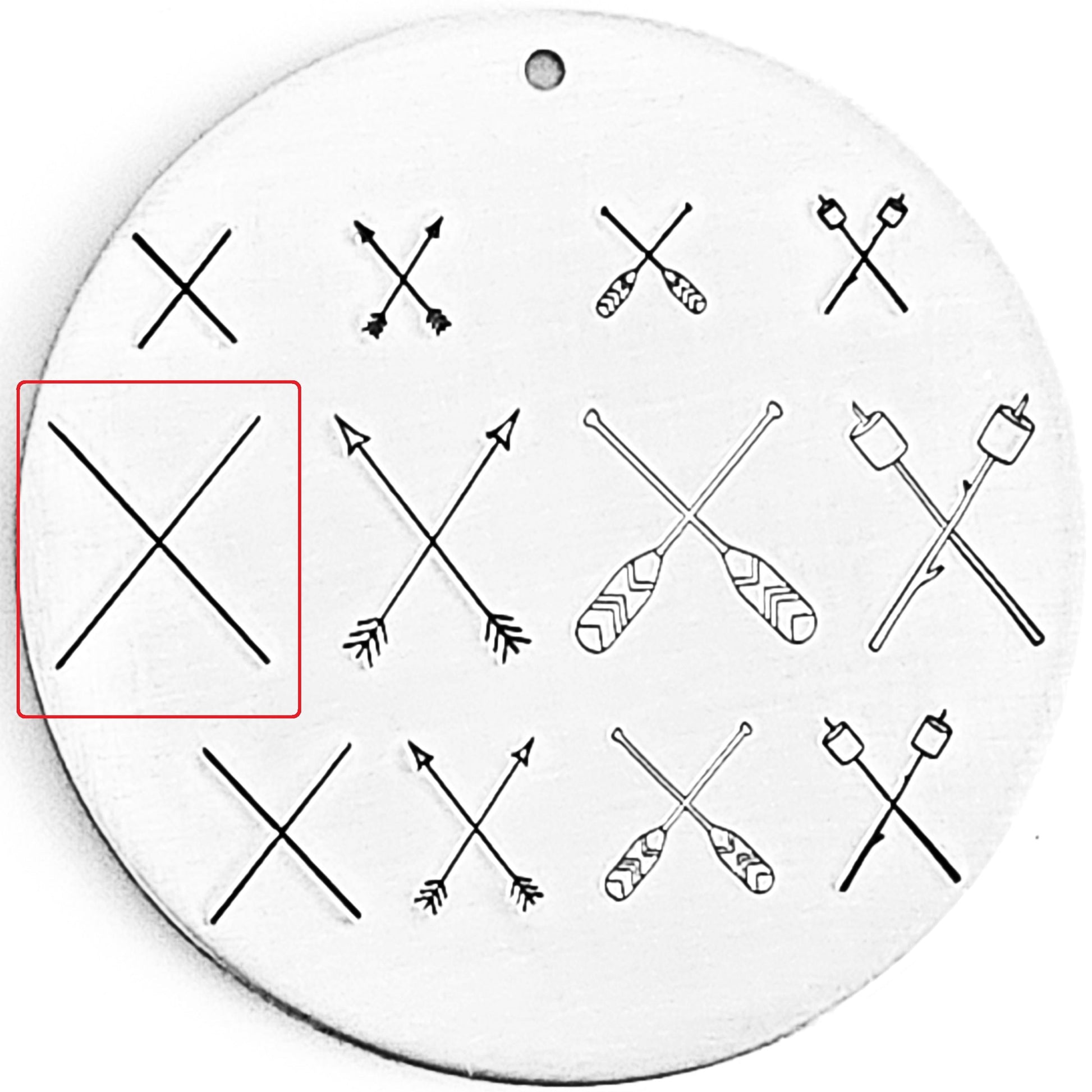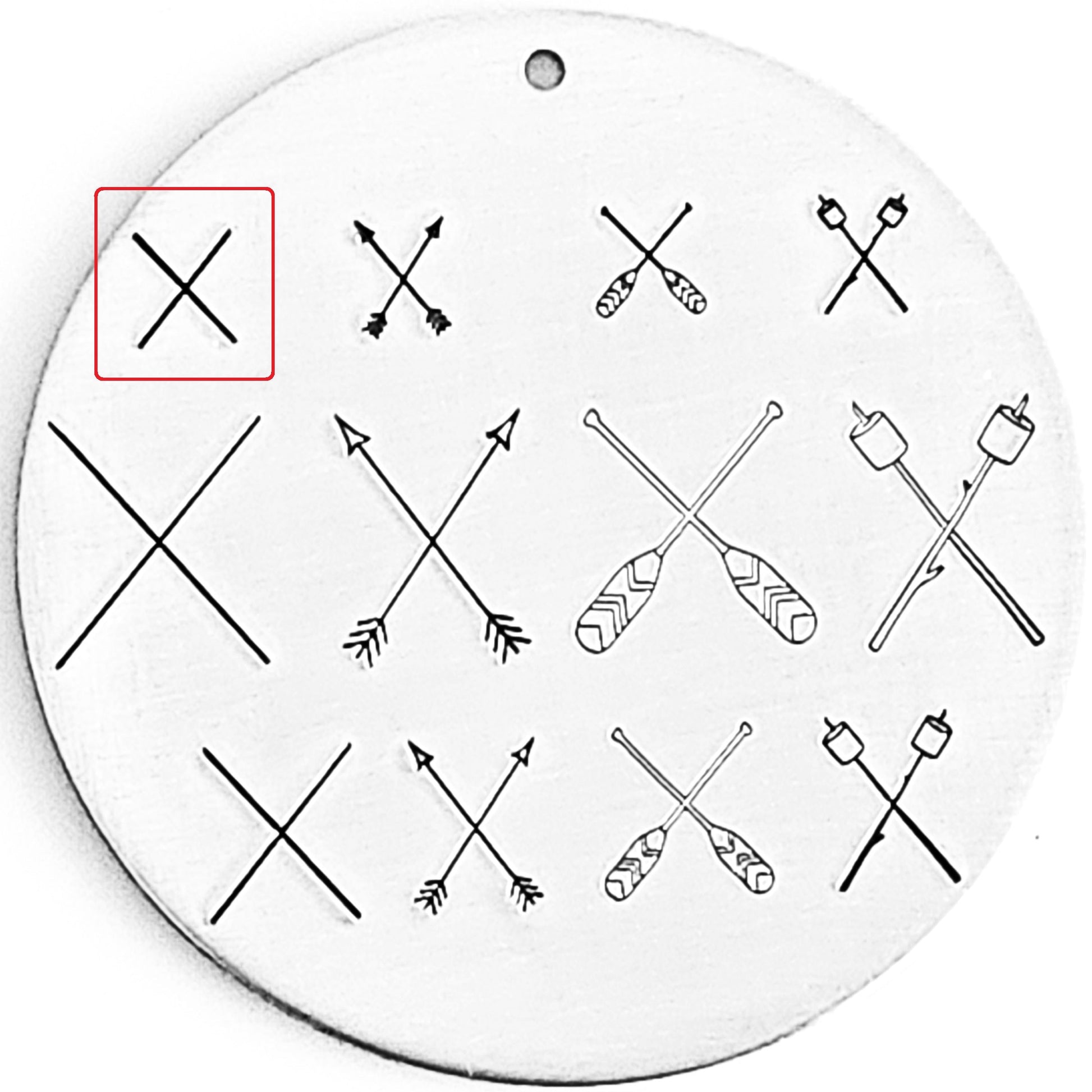 Crossed oars, crosses arrows, crossed marshmallows, and crossed lines metal design stamps! All the things you need to create the ultimate 4 corner addictions! Add tiny design stamps to each area and really show off what your customers love!