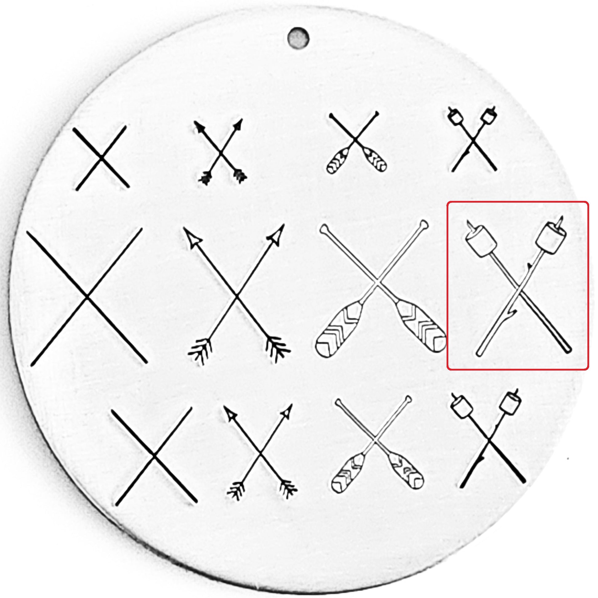 Crossed oars, crosses arrows, crossed marshmallows, and crossed lines metal design stamps! All the things you need to create the ultimate 4 corner addictions! Add tiny design stamps to each area and really show off what your customers love!