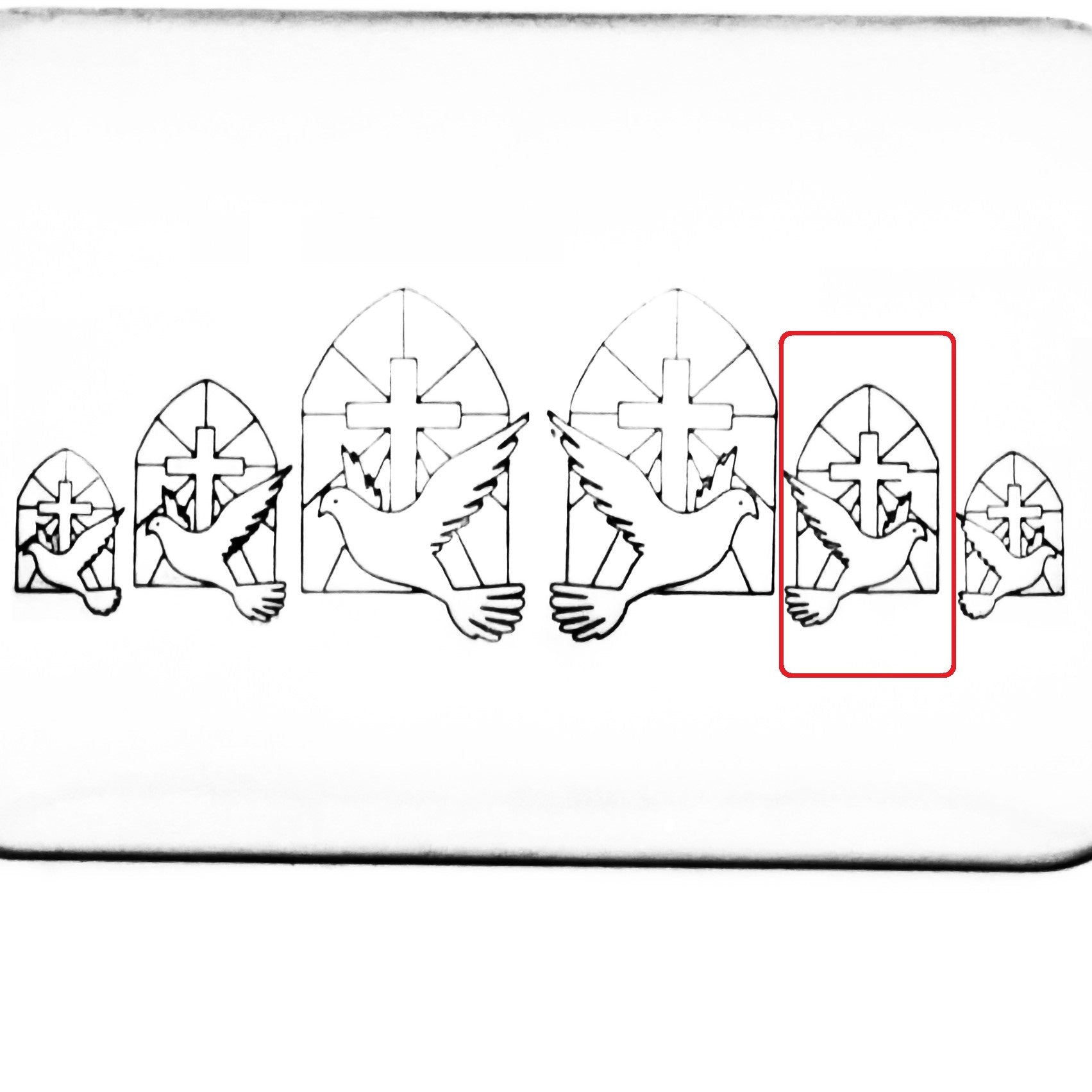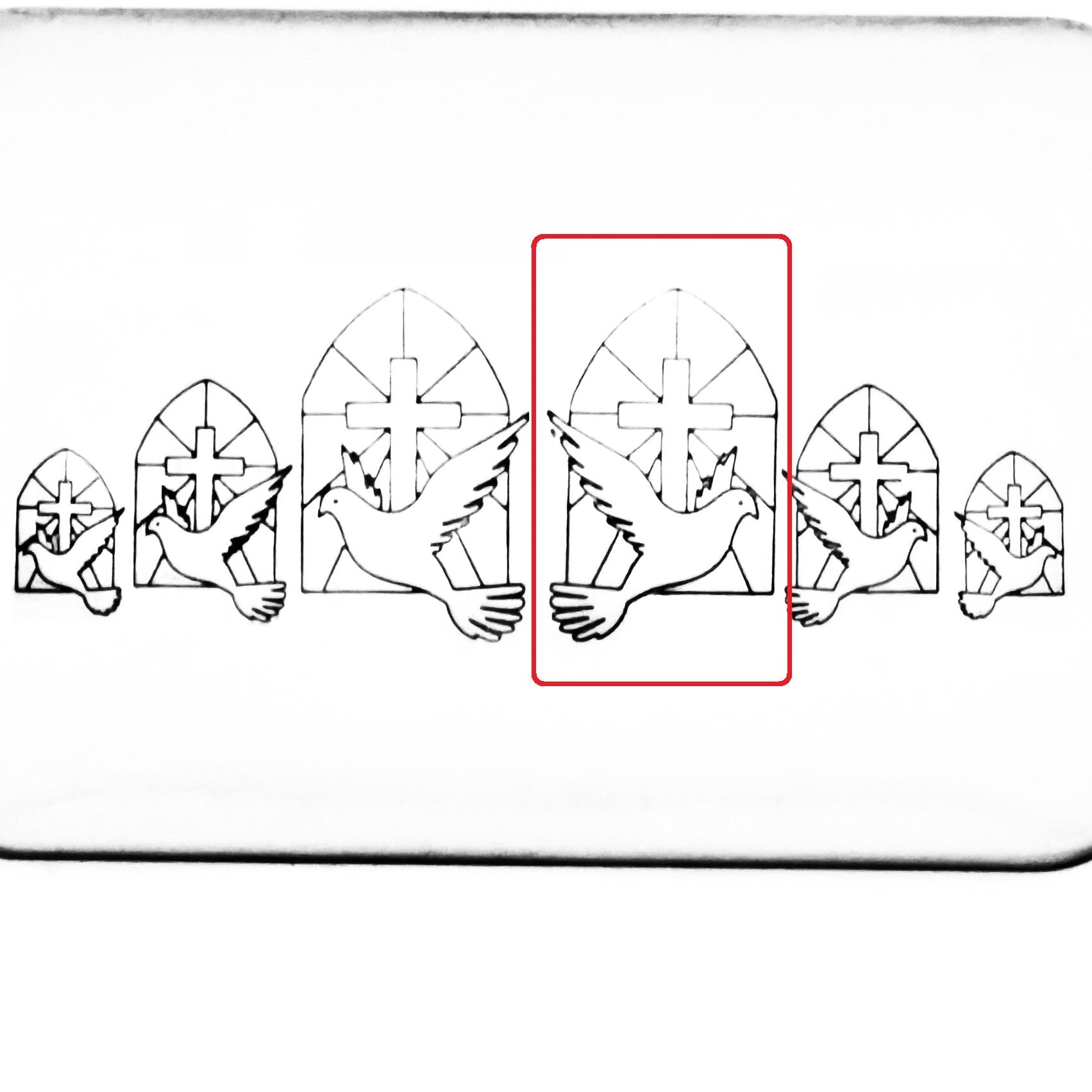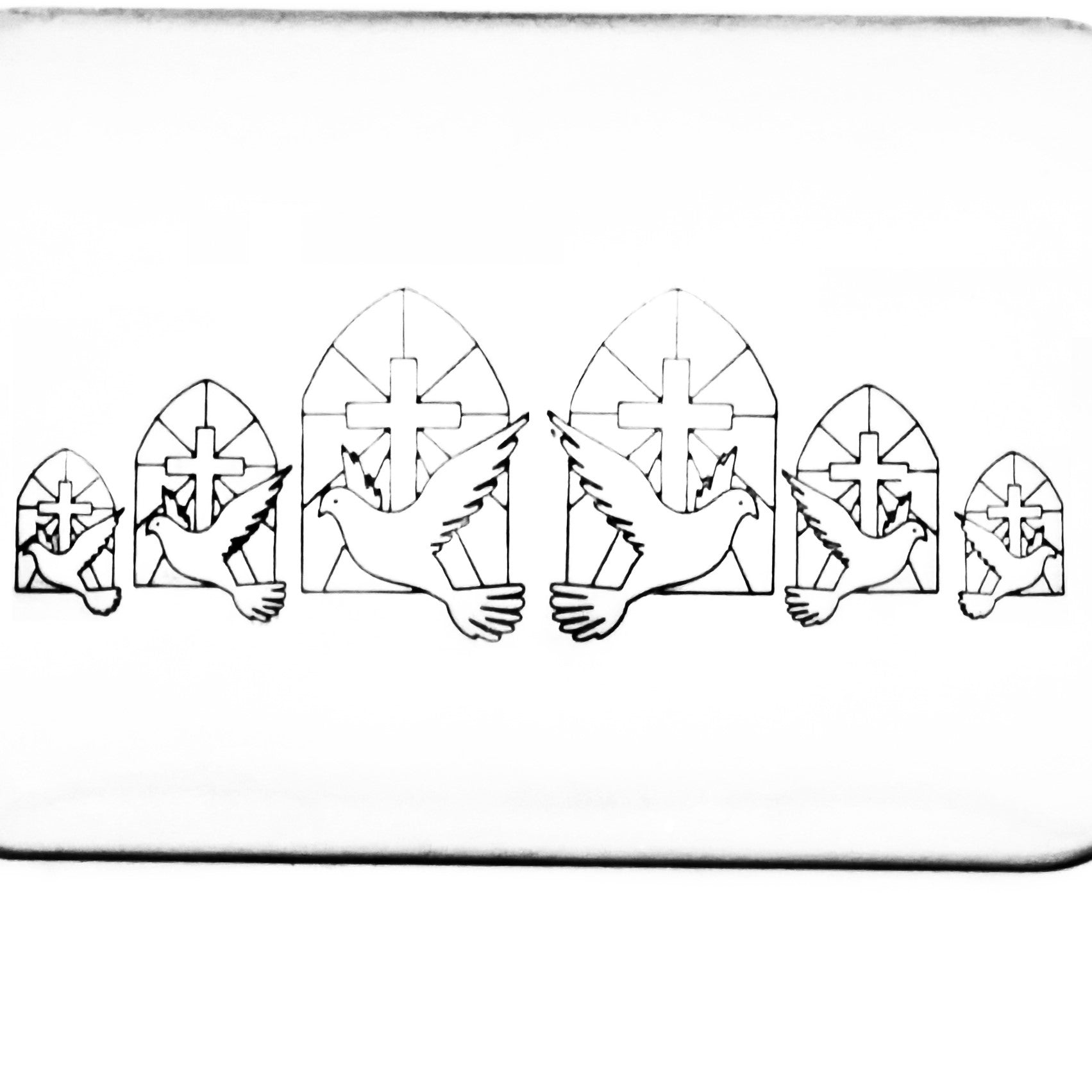 This symbol of a Holy Spirit metal design stamp features a dove and cross, and comes in left and right facing.