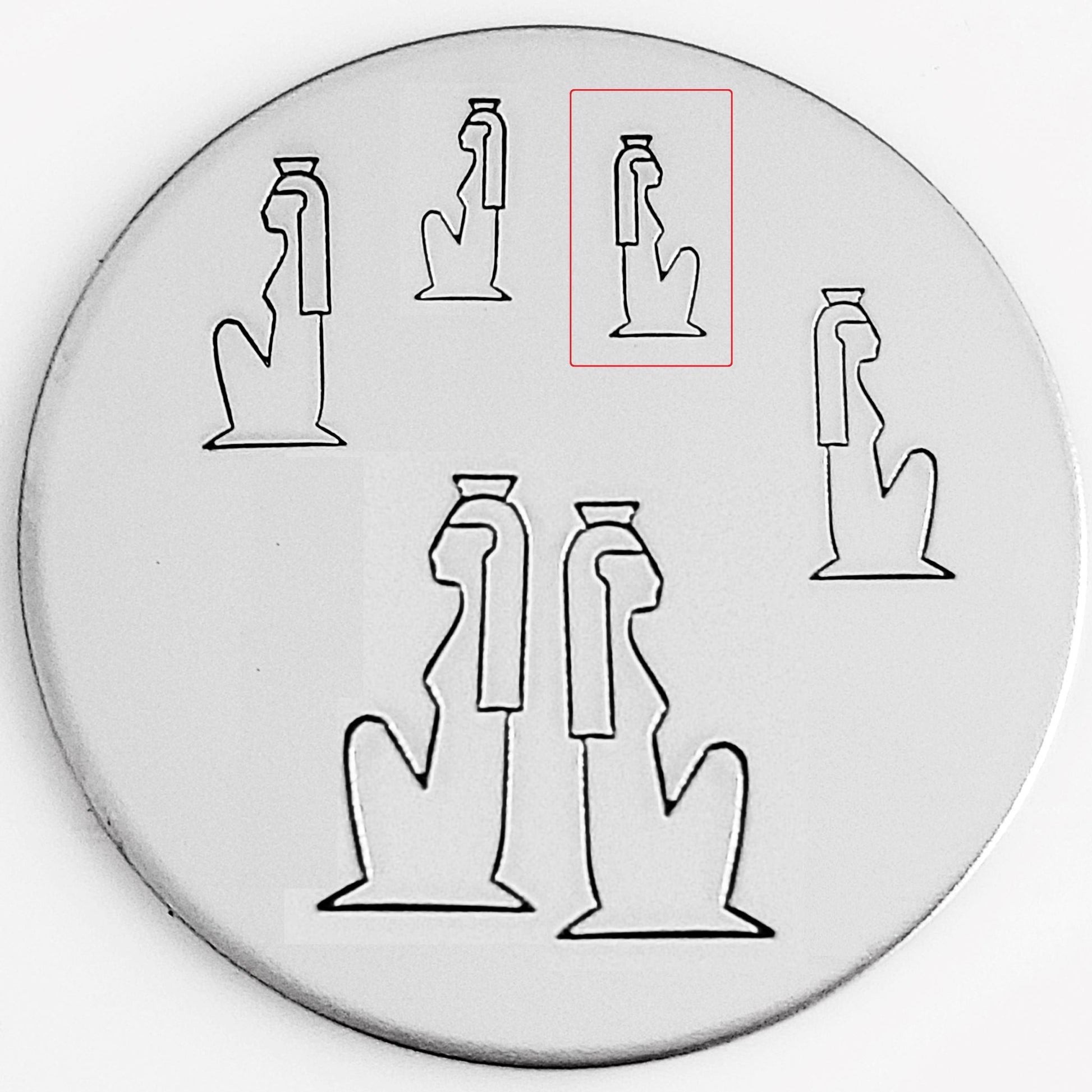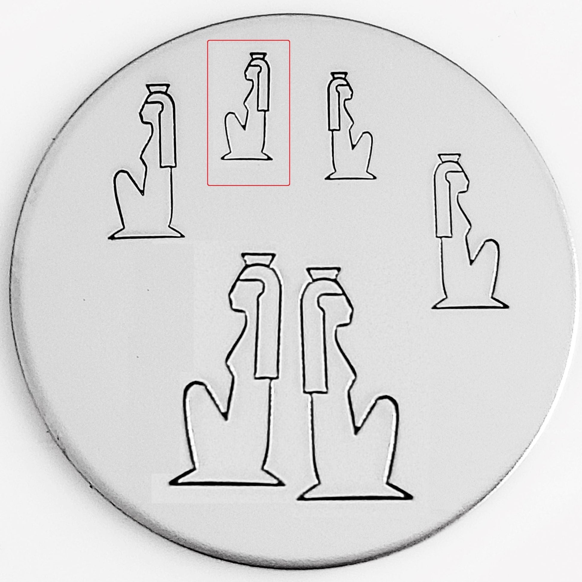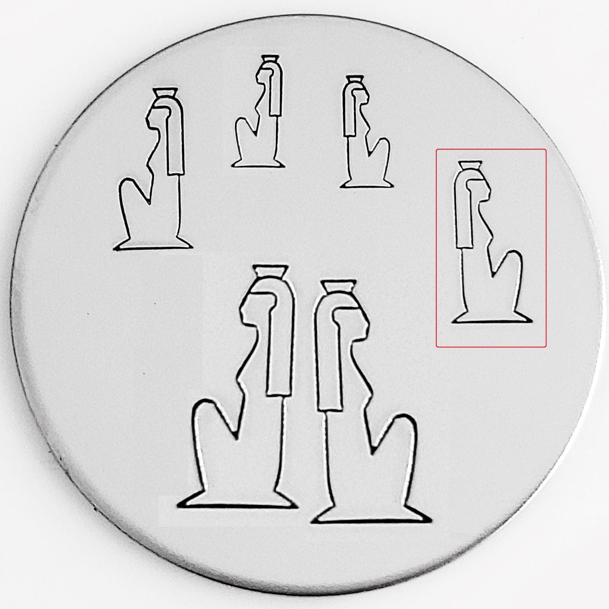 Our Egyptian line of stamps represents symbols and images that are widely known as being symbols of strength and representation of the basis of life. This Egyptian Woman metal design stamp is a commonly used image in most hieroglyphs.