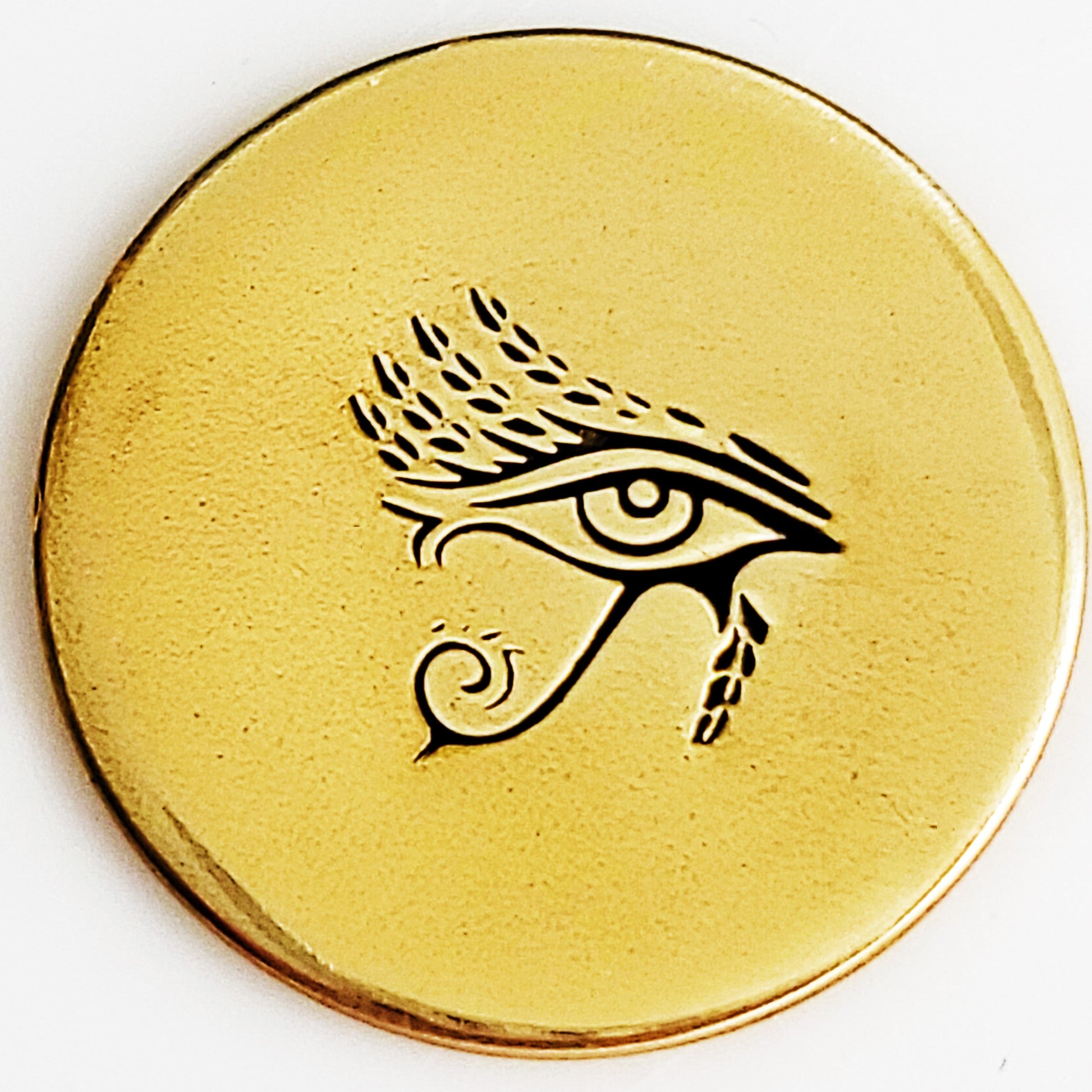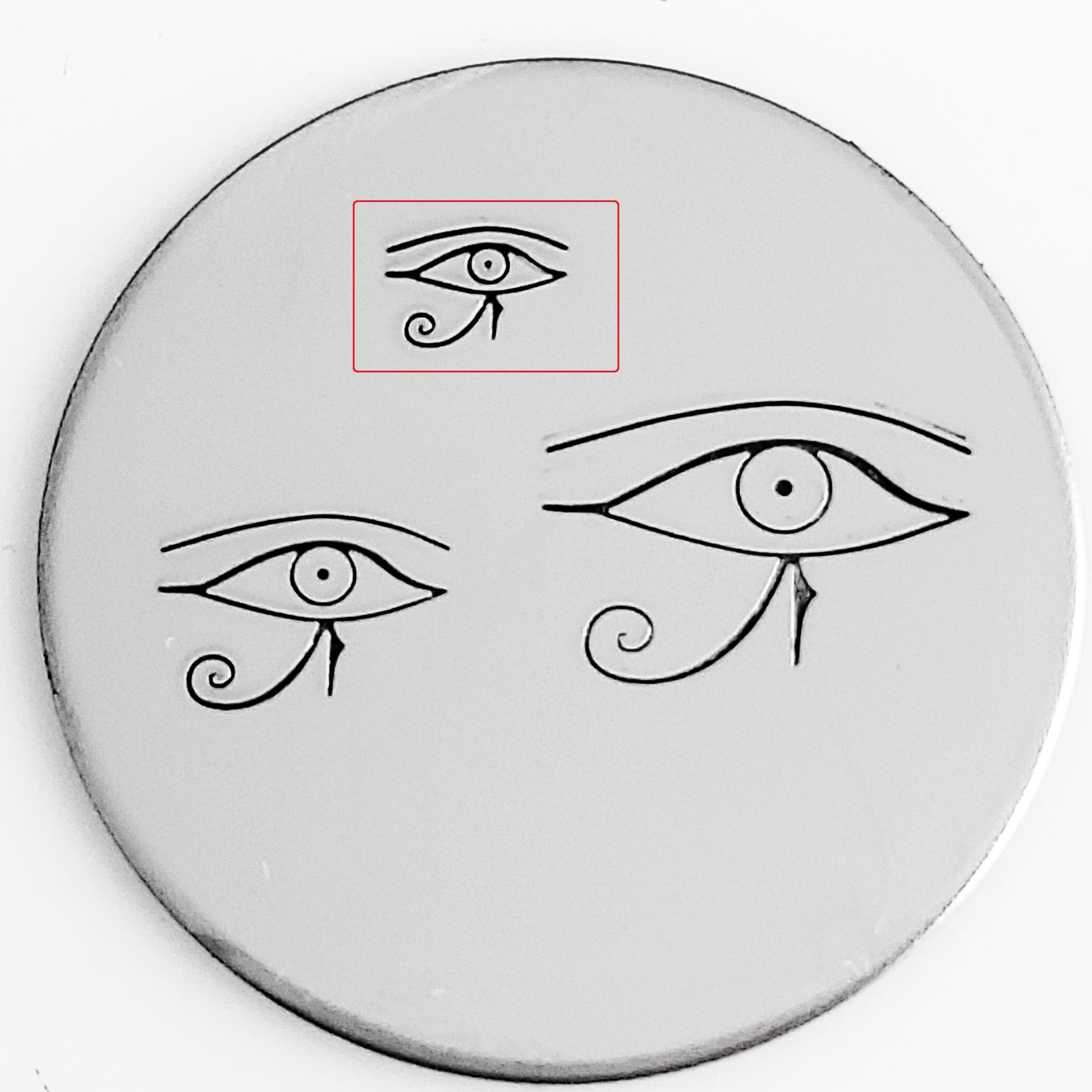 Our Egyptian line of stamps represents symbols and images that are widely known as being symbols of strength and representation of the basis of life. This Eye of Ra metal design stamp is used to represent the right eye, and the eye of Horus the left eye.