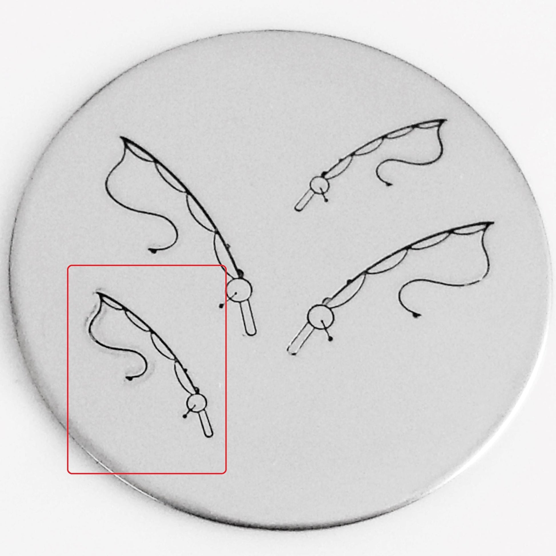 Fishing rod metal design stamps are for any fishing enthusiast, not just we hand stamping ones! We have a whole line of fishing inspired stamps in the "Guy Stuff" section of our Design Stamps. Be sure to check them out! All of our Simple Dimple metal design stamps are manufactured to be used on all metals, and are designed to fit in most ring jigs.