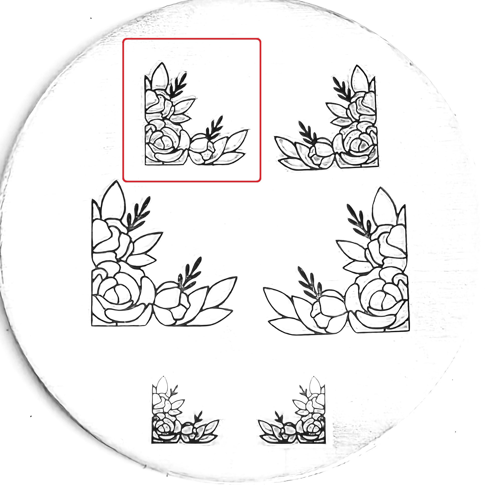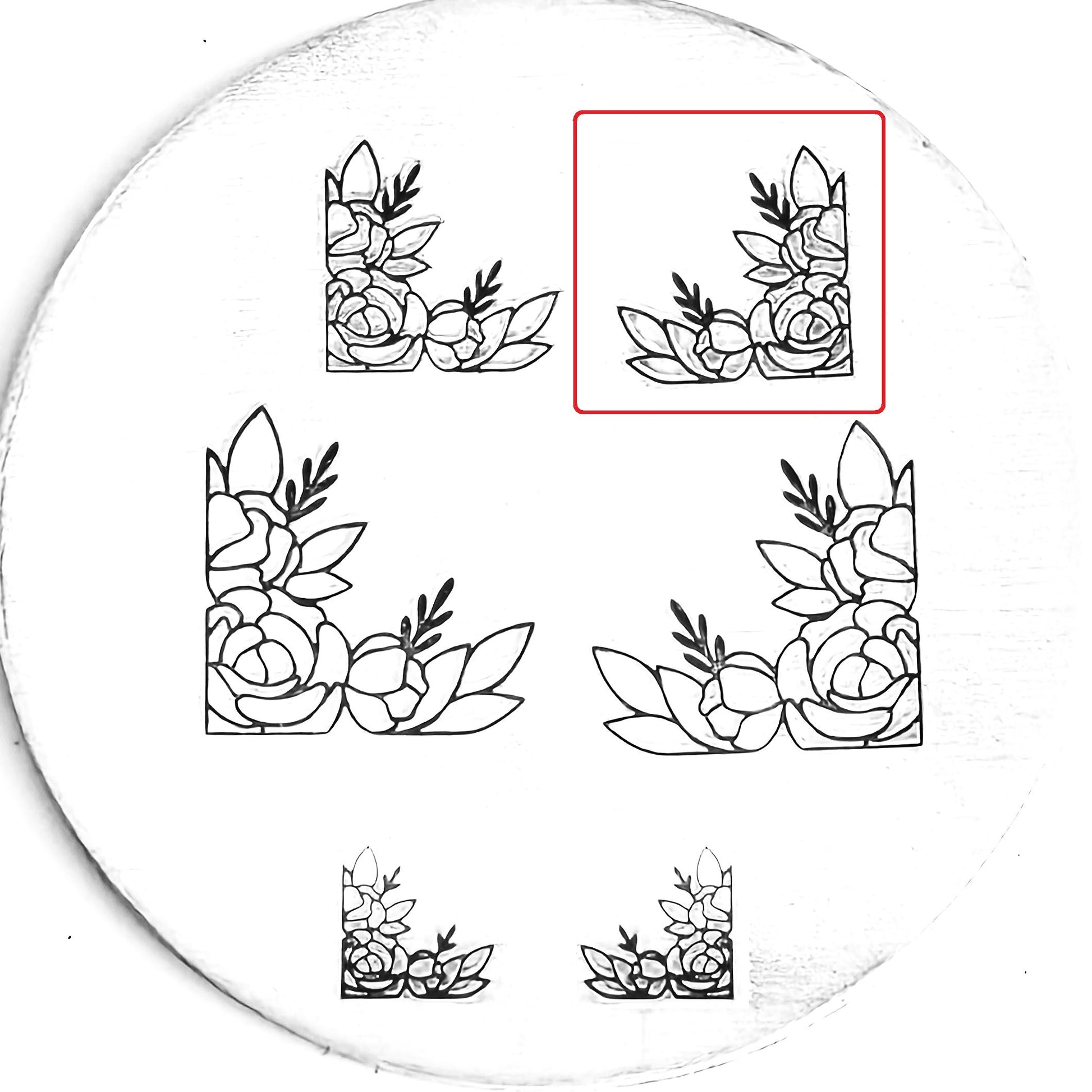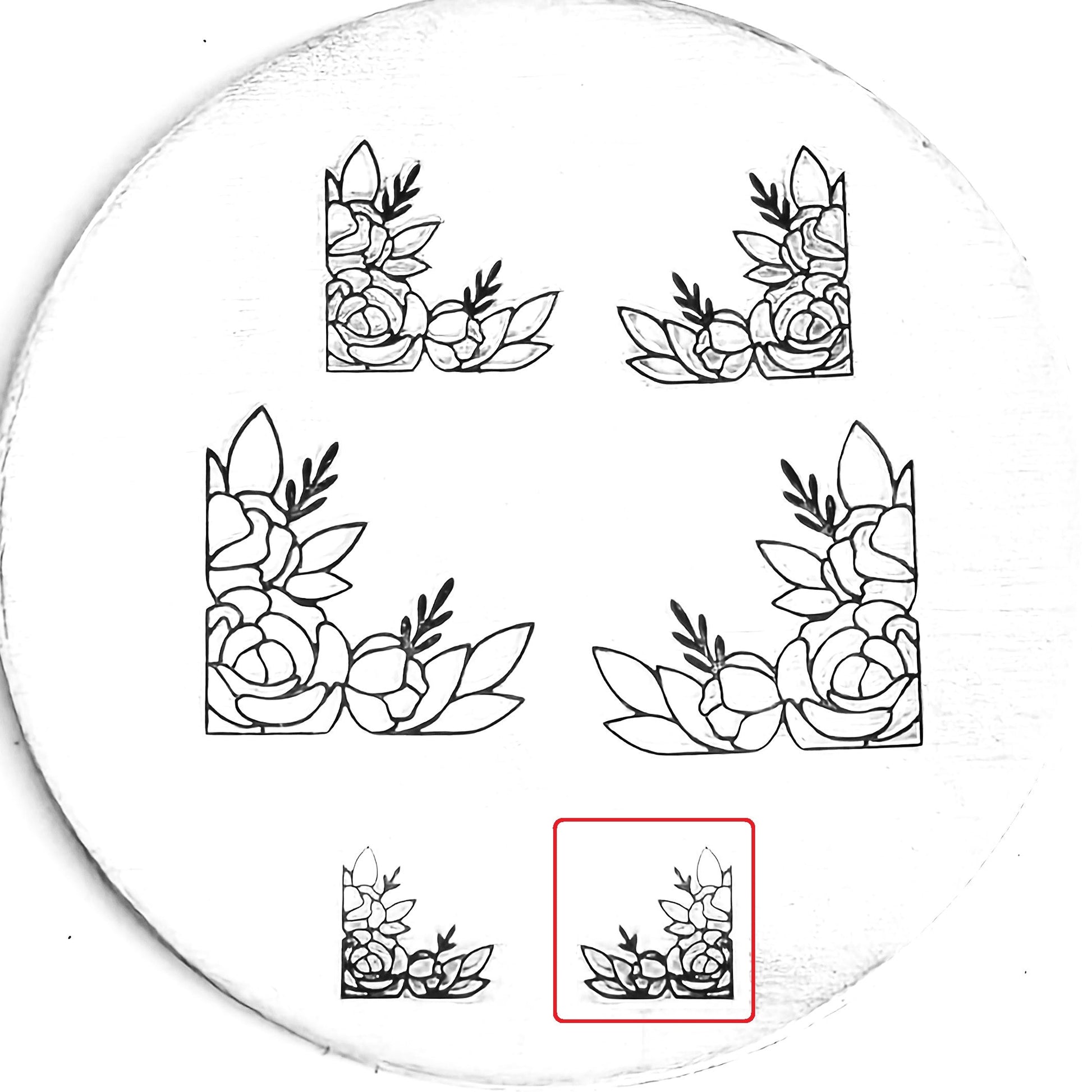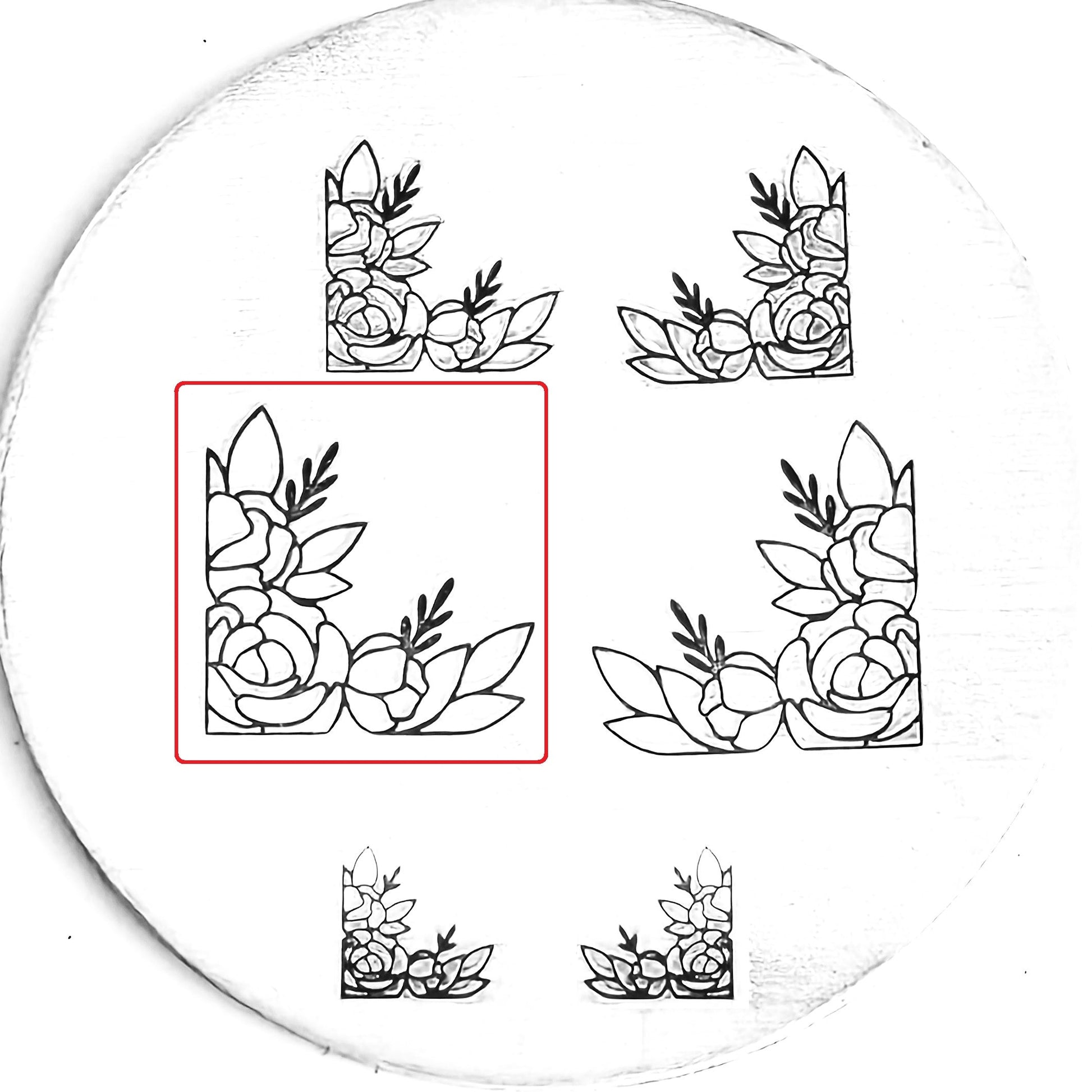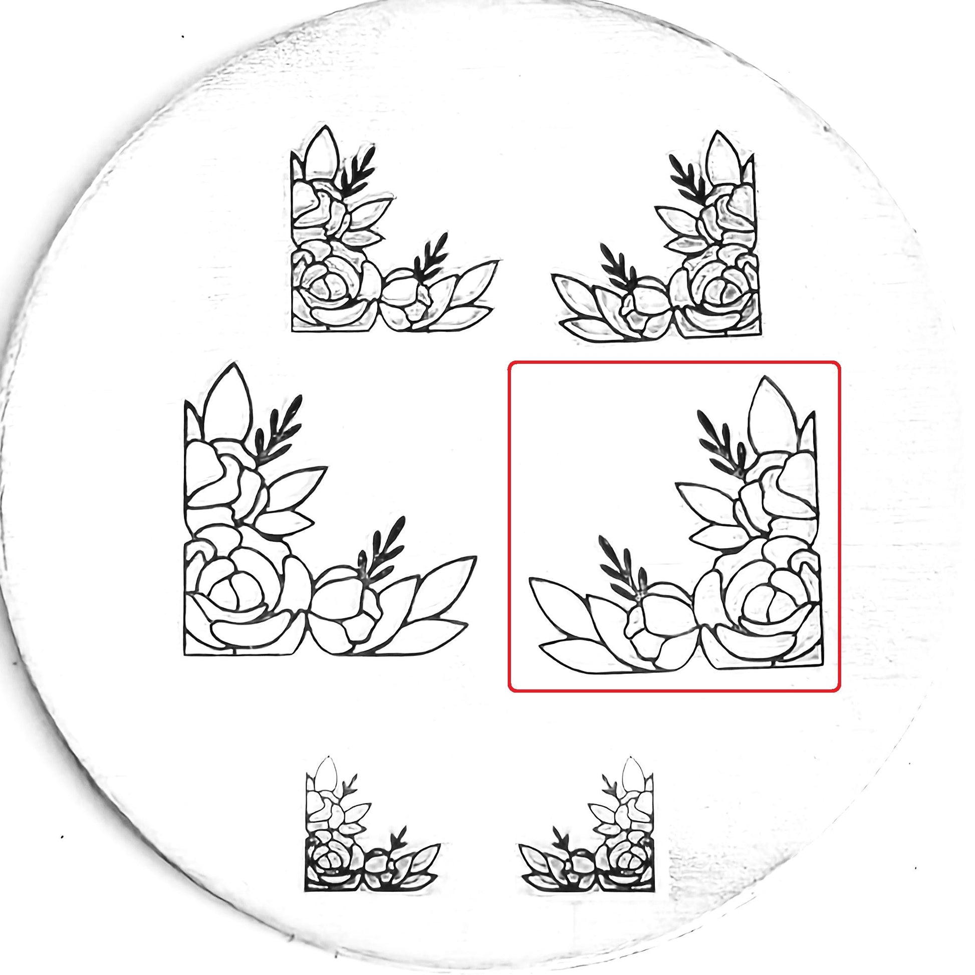 This gorgeous flower corner metal design stamp is perfectly ornate and lovely for all of your feminine needs. Lovely up a wedding piece, add some flair to your spring and summer themed designs, and make something beautifully sandwiched between floral bookends!