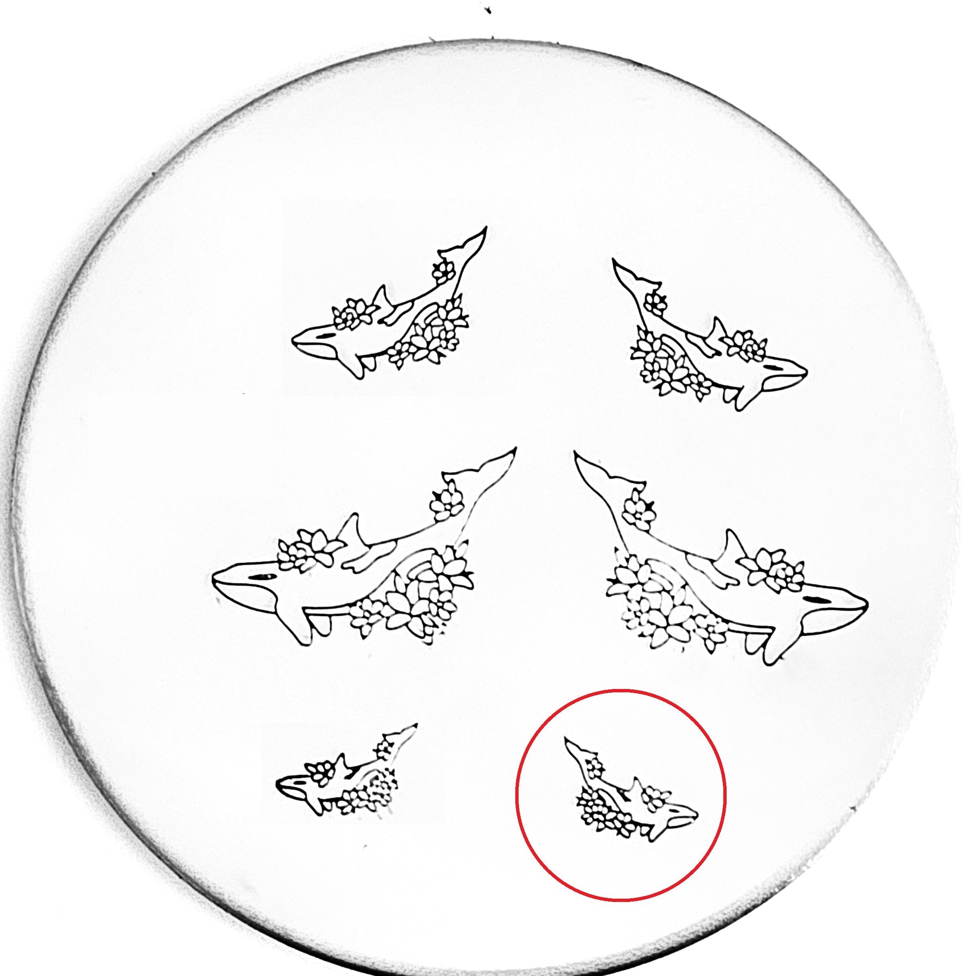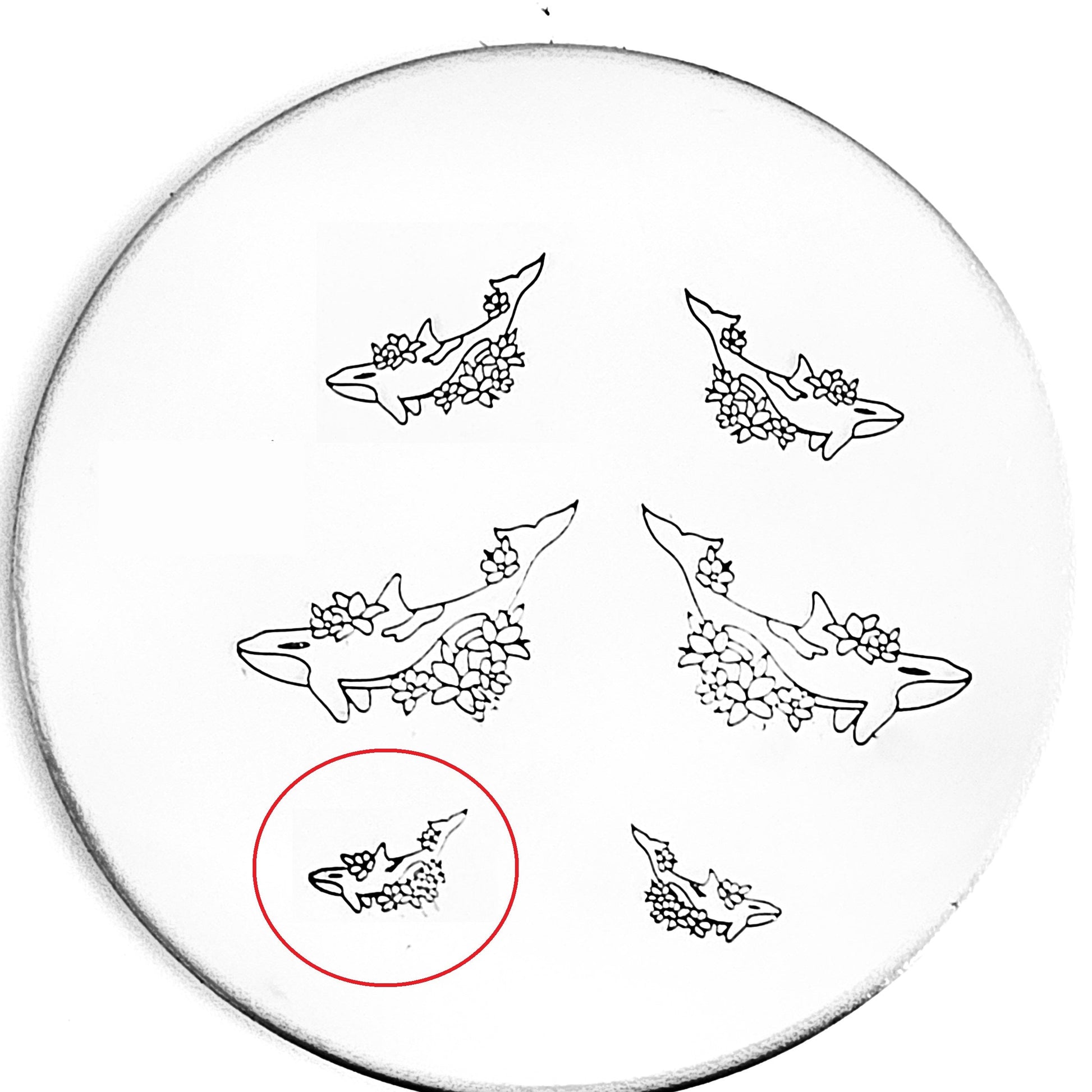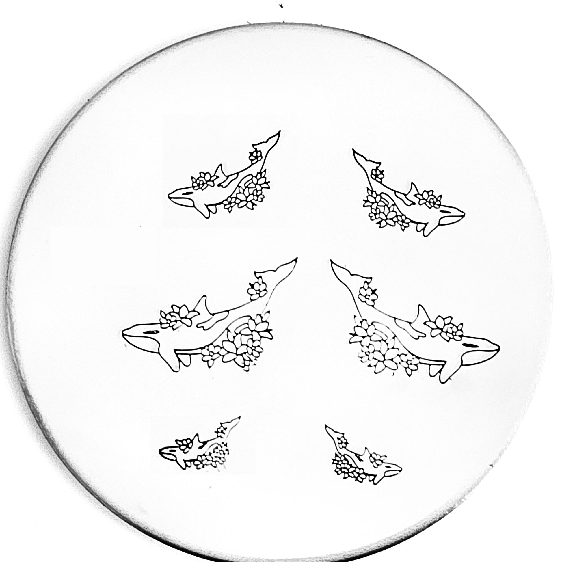 Orcas are beautiful and majestic (and we have several types of Orca design stamps!) and this orca is no different! Surrounded by flowers and beauty, use our orca hand stamp for the ocean lover in you!