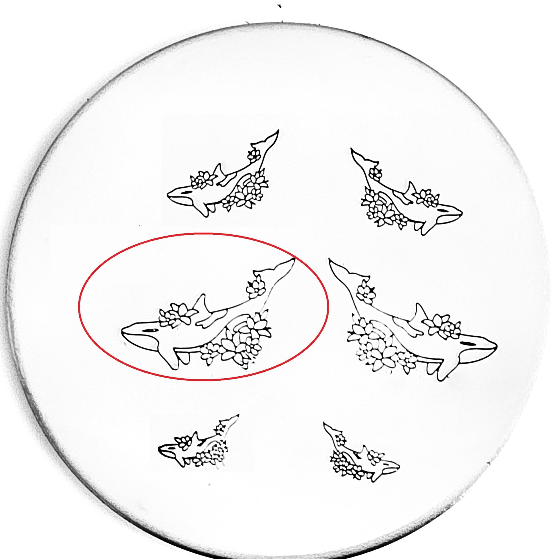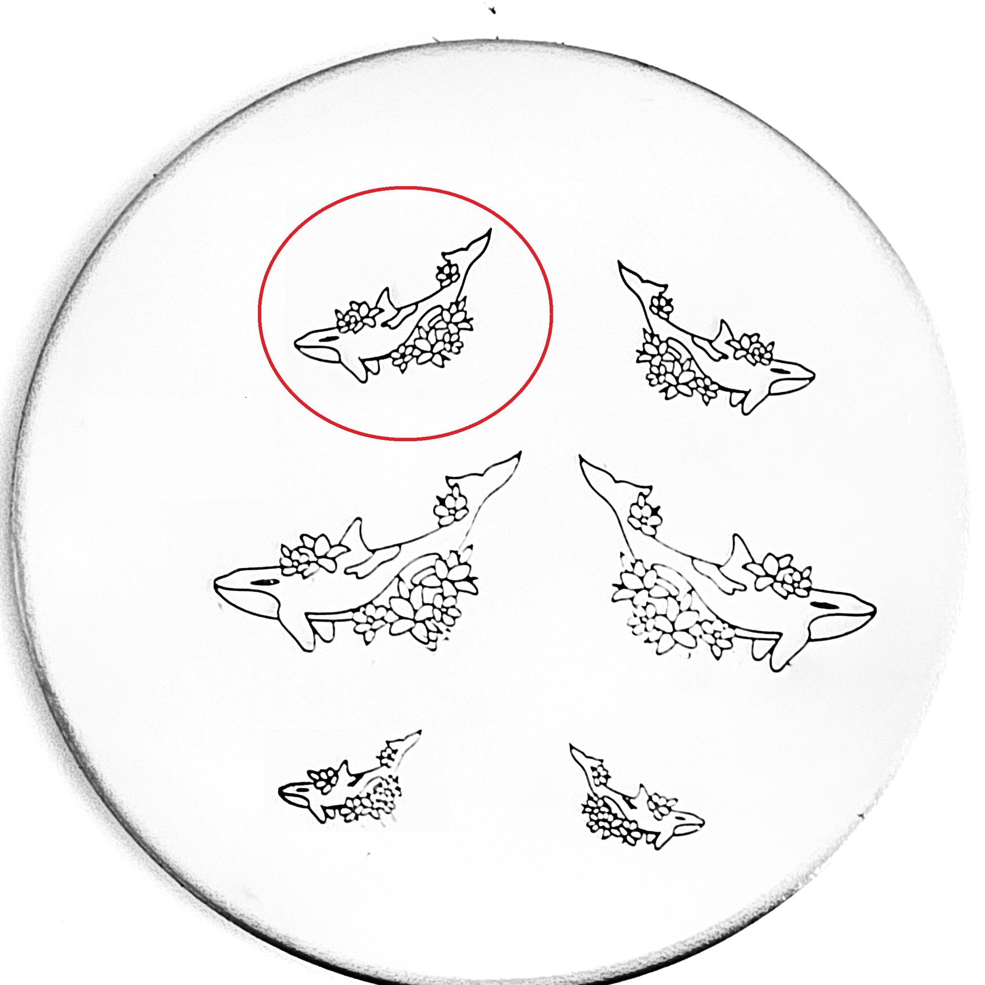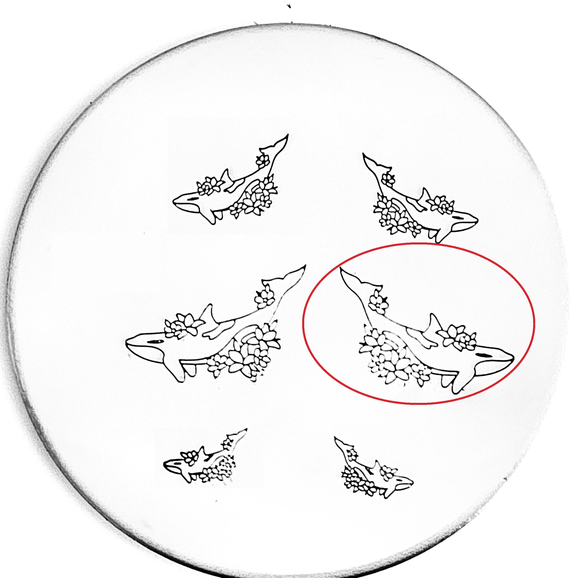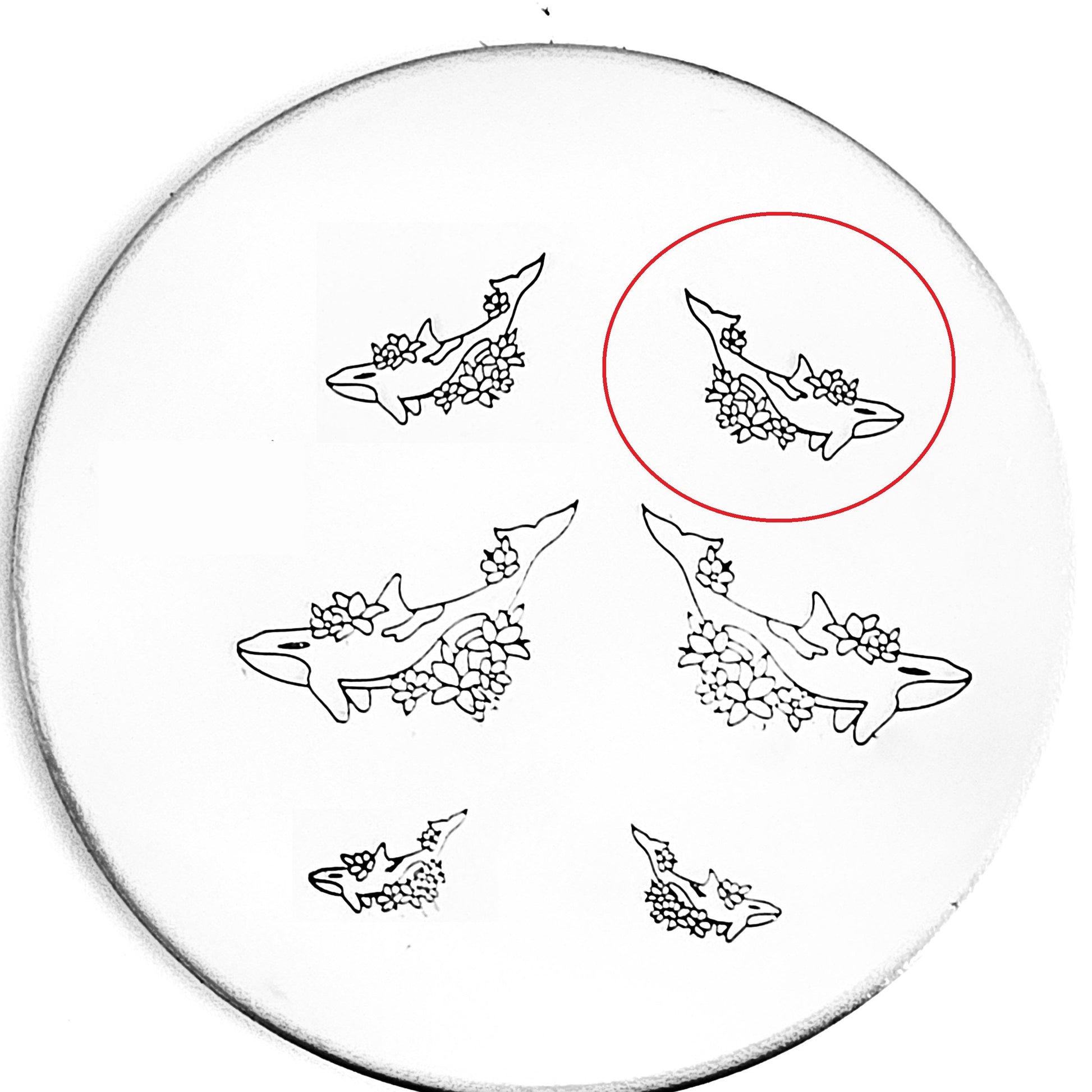 Orcas are beautiful and majestic (and we have several types of Orca design stamps!) and this orca is no different! Surrounded by flowers and beauty, use our orca hand stamp for the ocean lover in you!