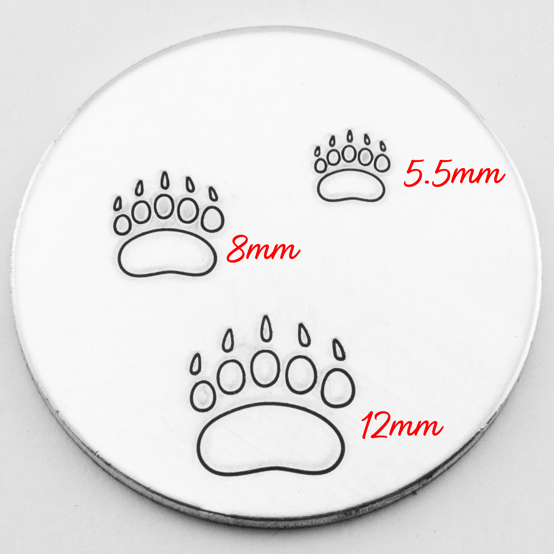 Leave your mark with our adorable Bear Paw metal stamp! Perfect for adding a touch of wilderness charm to your creations. Stamp away and watch your crafts come to life with a dash of bear-inspired flair. This Bear Paw metal hand stamp comes in three sizes