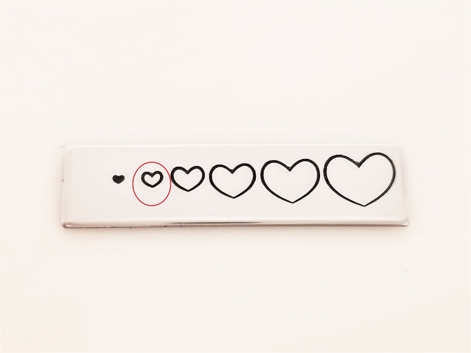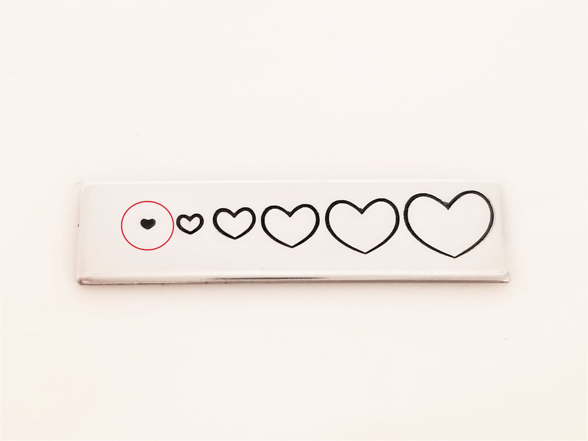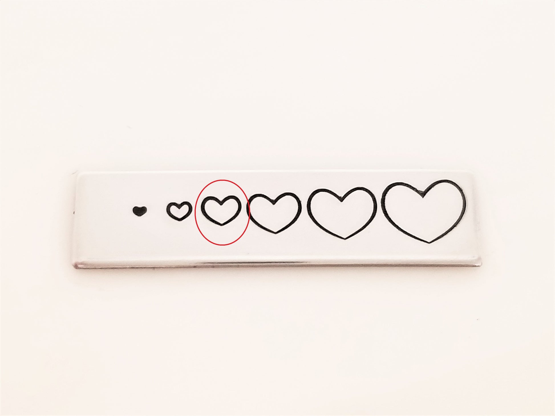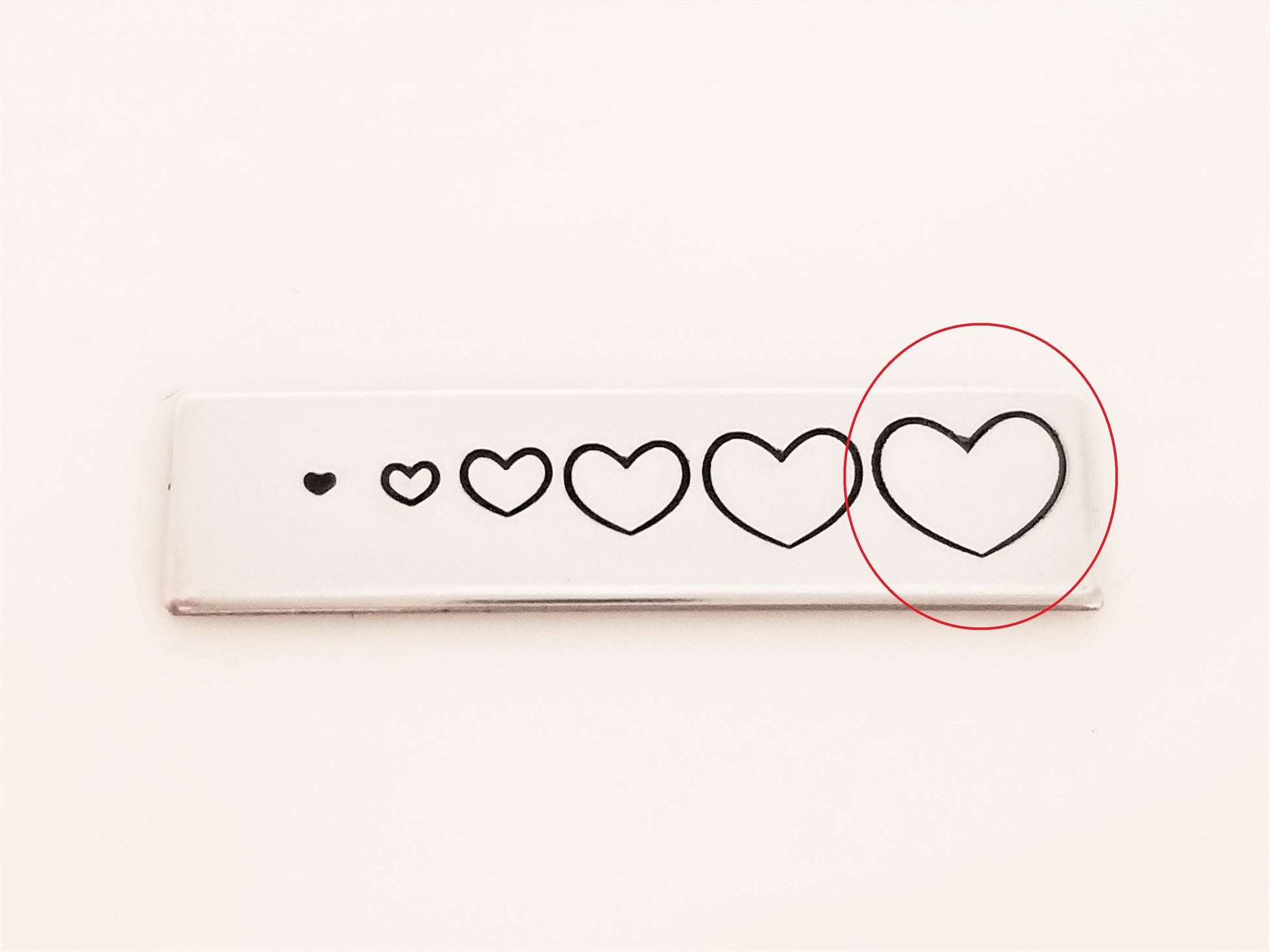 - The .75mm heart is TINY. It **barely** needs a tap to leave the heart shaped impression. Hammer too hard, and you'll have a period ;)