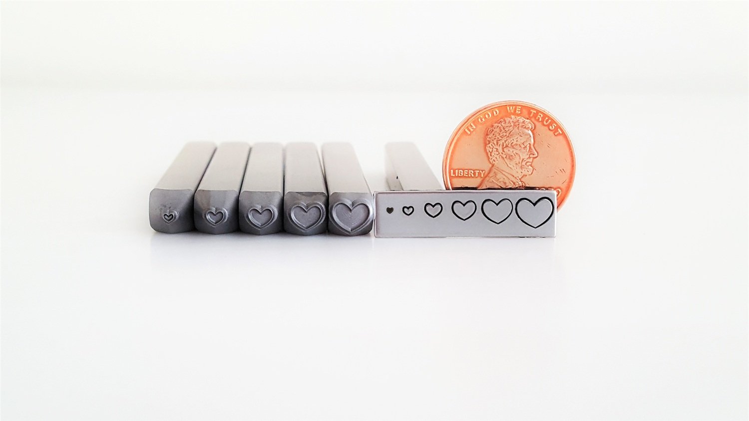 - The 5.5mm full heart is perfect around the date on a penny.