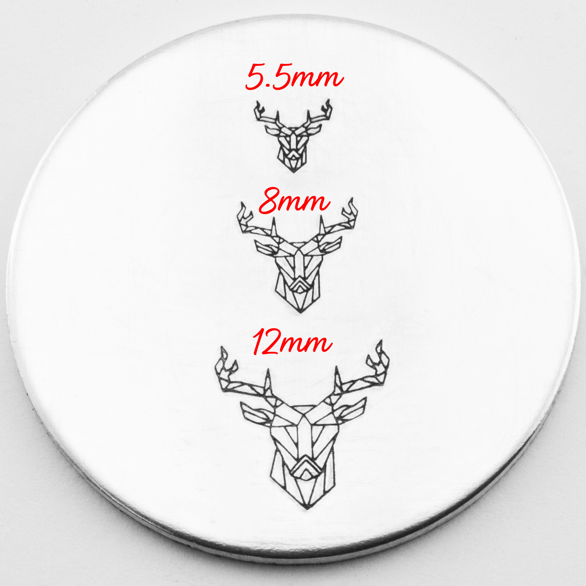This Geo Deer Metal hand stamp comes in three sizes