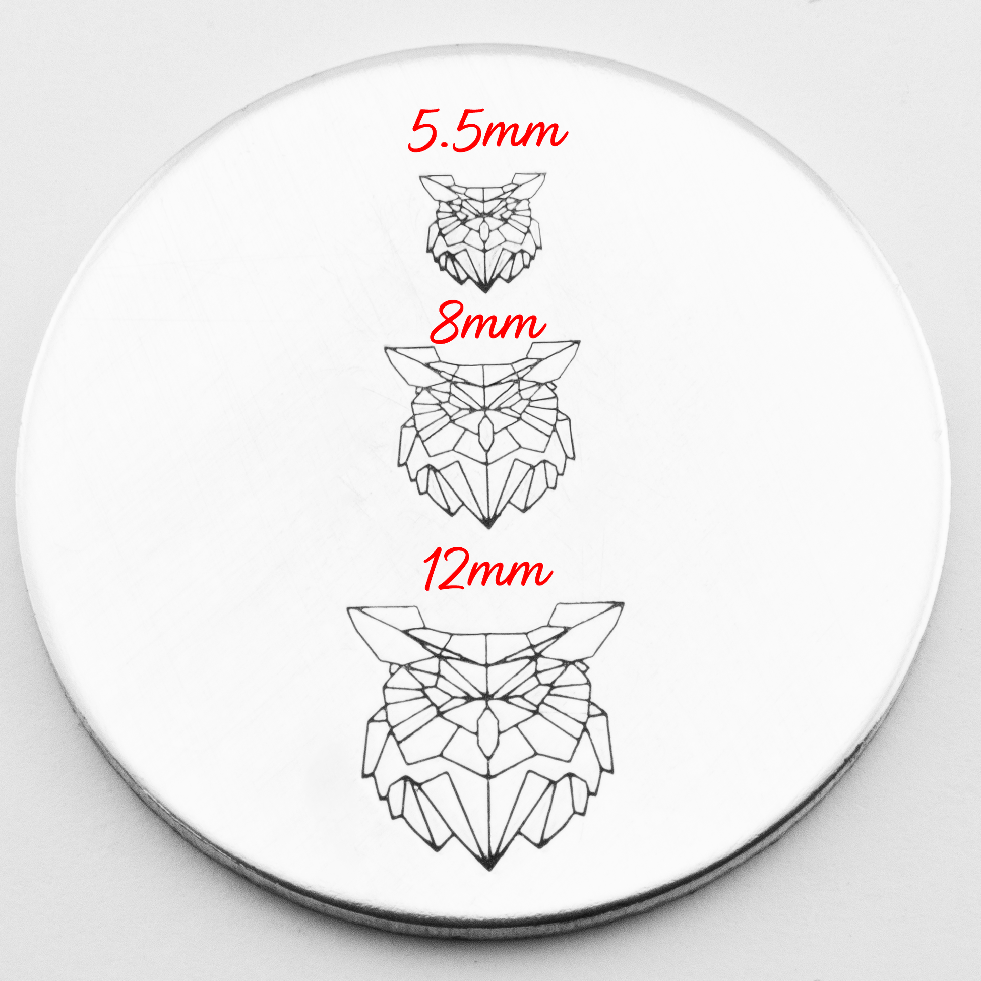This Geo Owl Metal hand stamp comes in three sizes