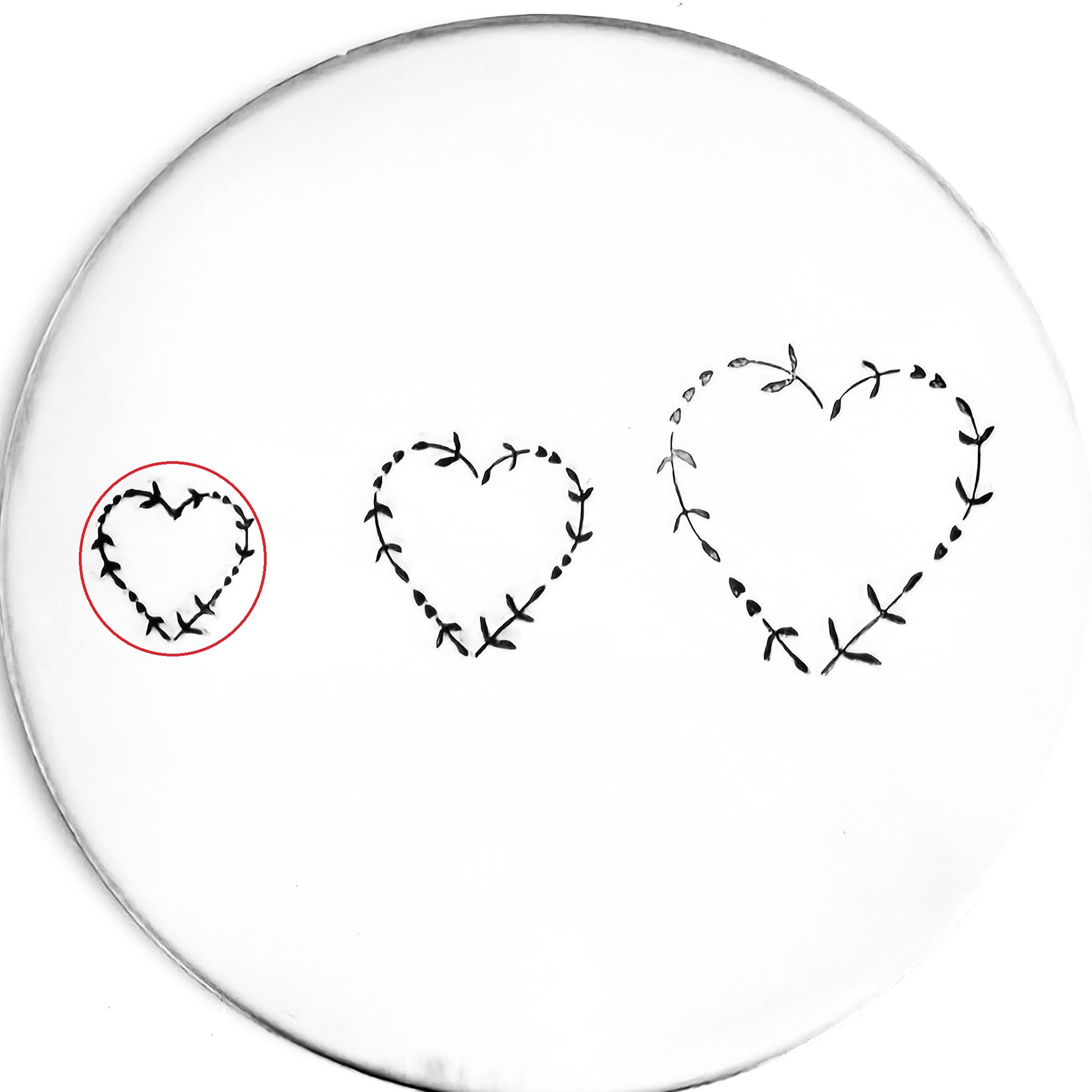 Lovely, feminine, and pretty, this heart wreath metal design stamp fits tiny words, names, or letters to showcase the beauty and love for someone!