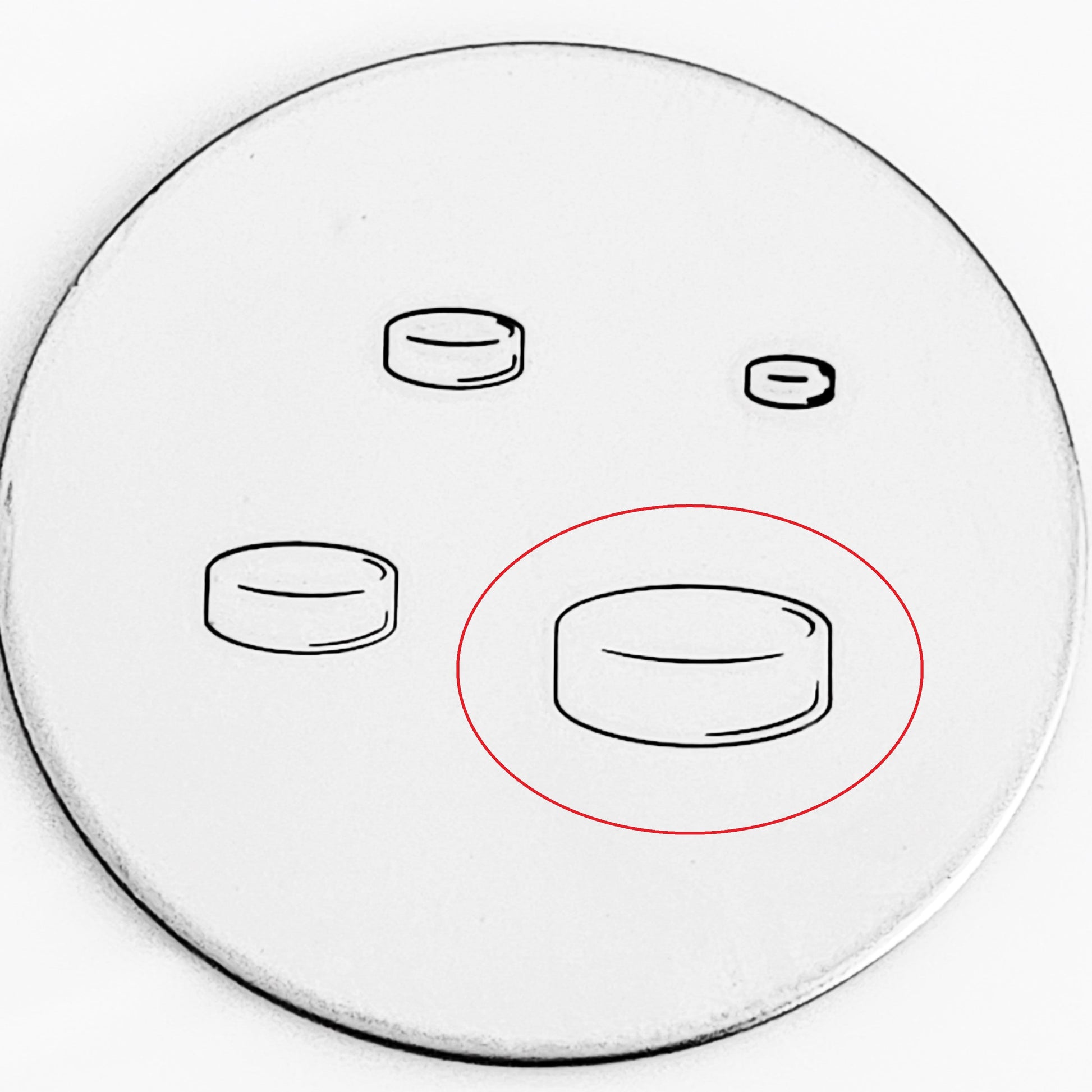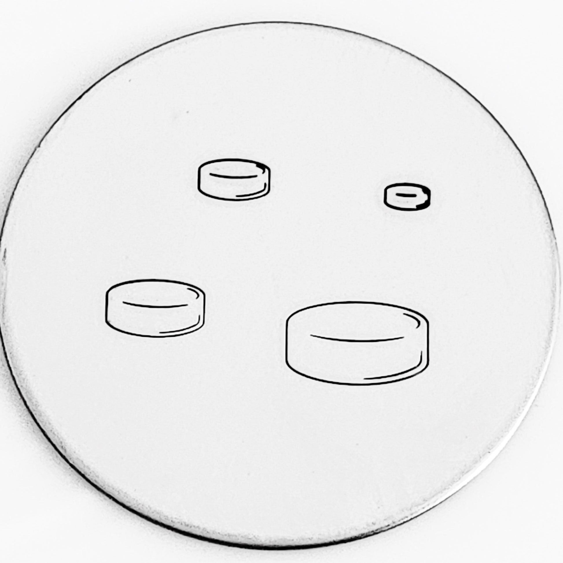 - The inside dimensions are very small because of the line in the middle, making stamping inside only likely in the 8mm puck, and even then, you're looking at a 1mm font.