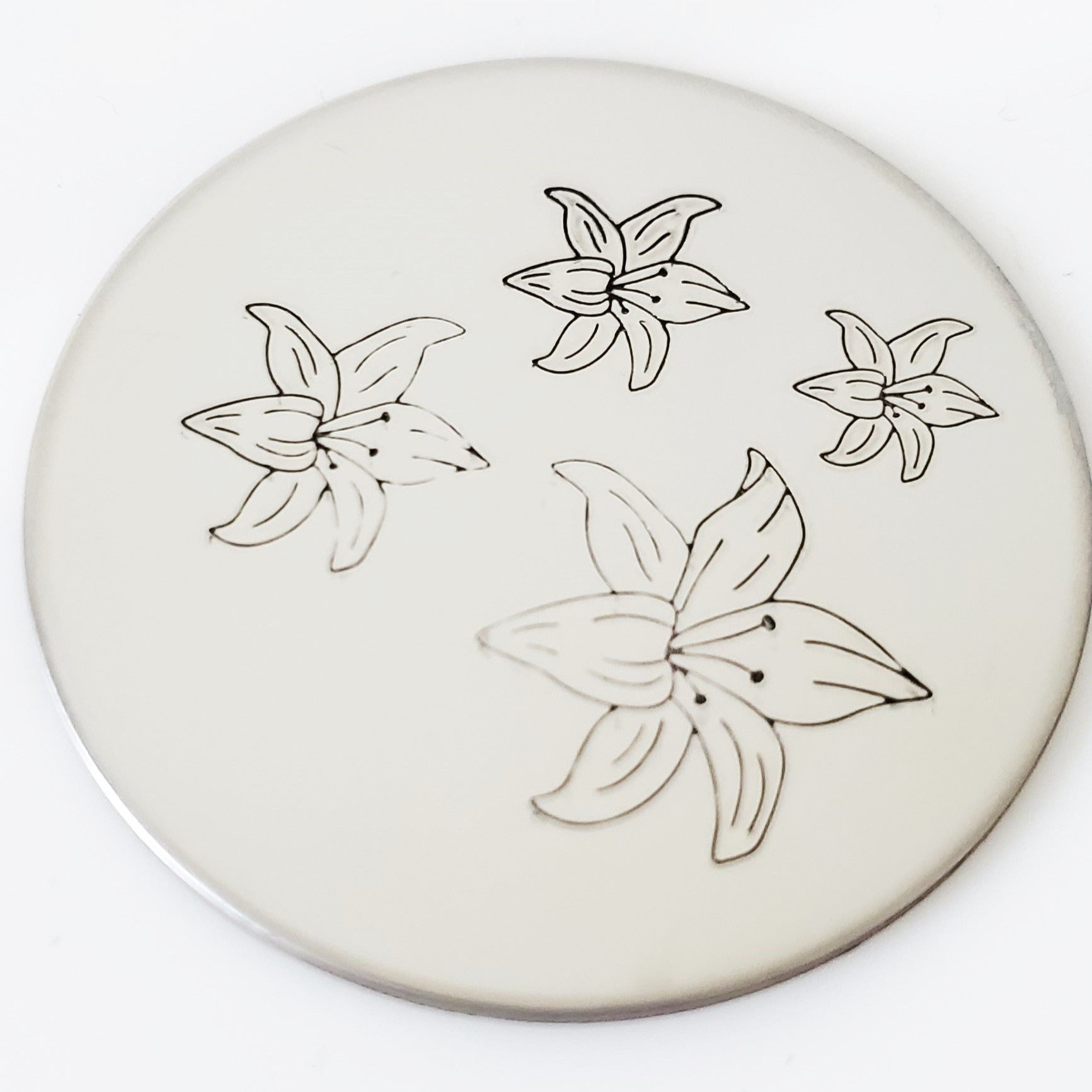 We love the designs we get from Melissa Demke, and this week's floral launch is right up there with some of her best designs! This Lily flower metal stamp design is perfect for Mother's Day, springy-thingys, and all the "crap, this is off center -- stamp a flower!" designs you can create!