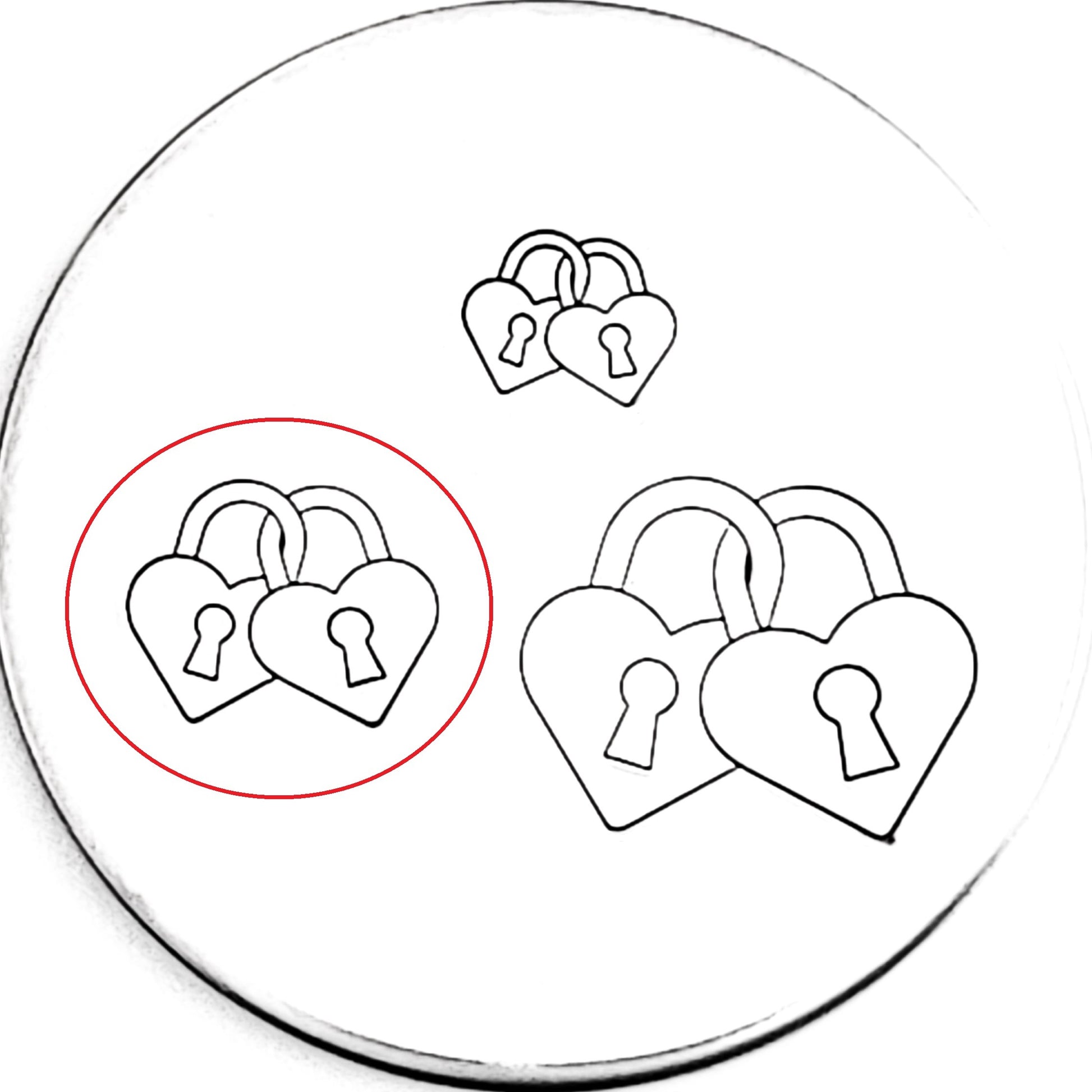 These two locks are bound together! Add on a key, or use to show marriage or devotion, this pair of locks metal stamp will stand the test of time!