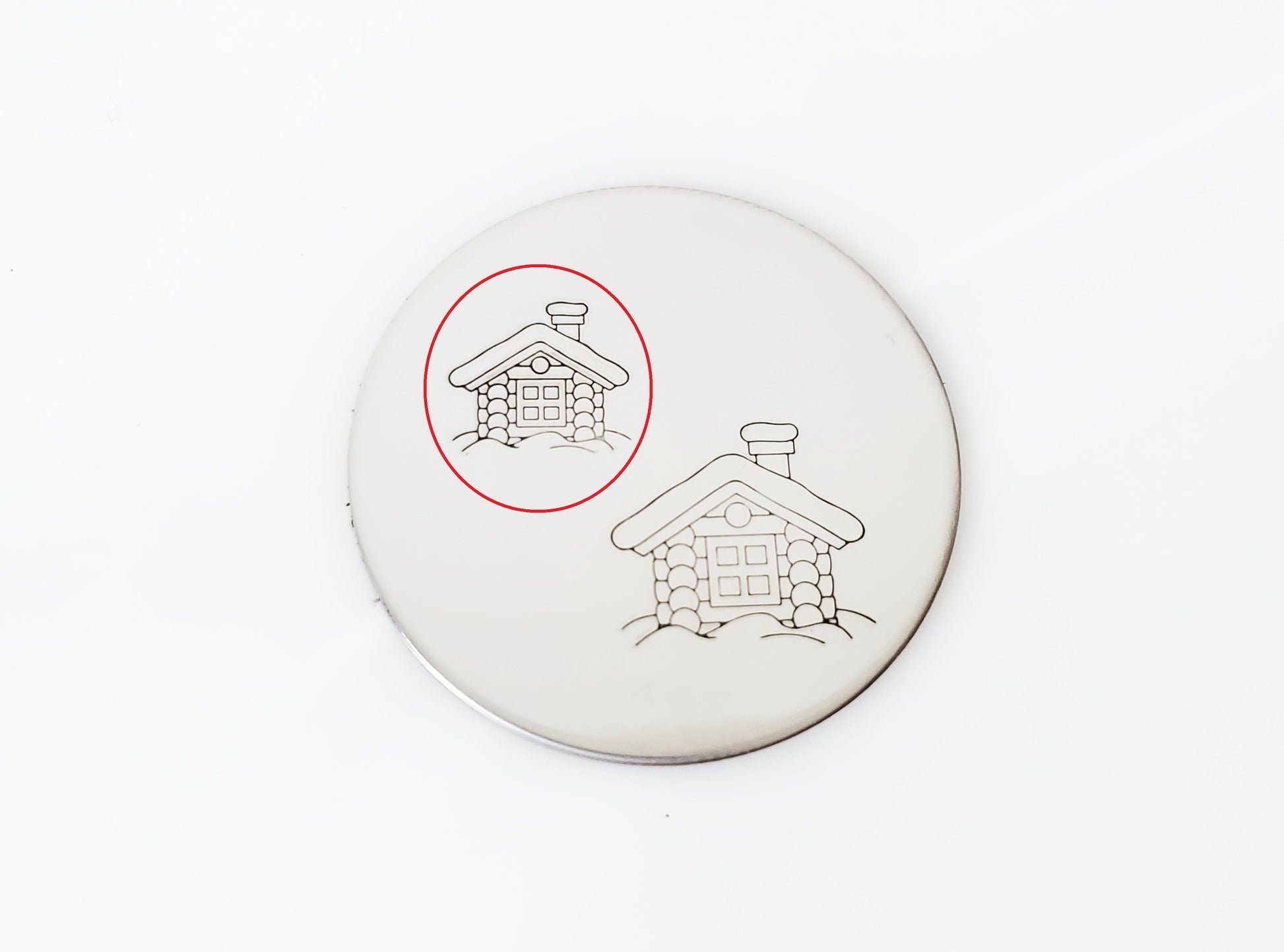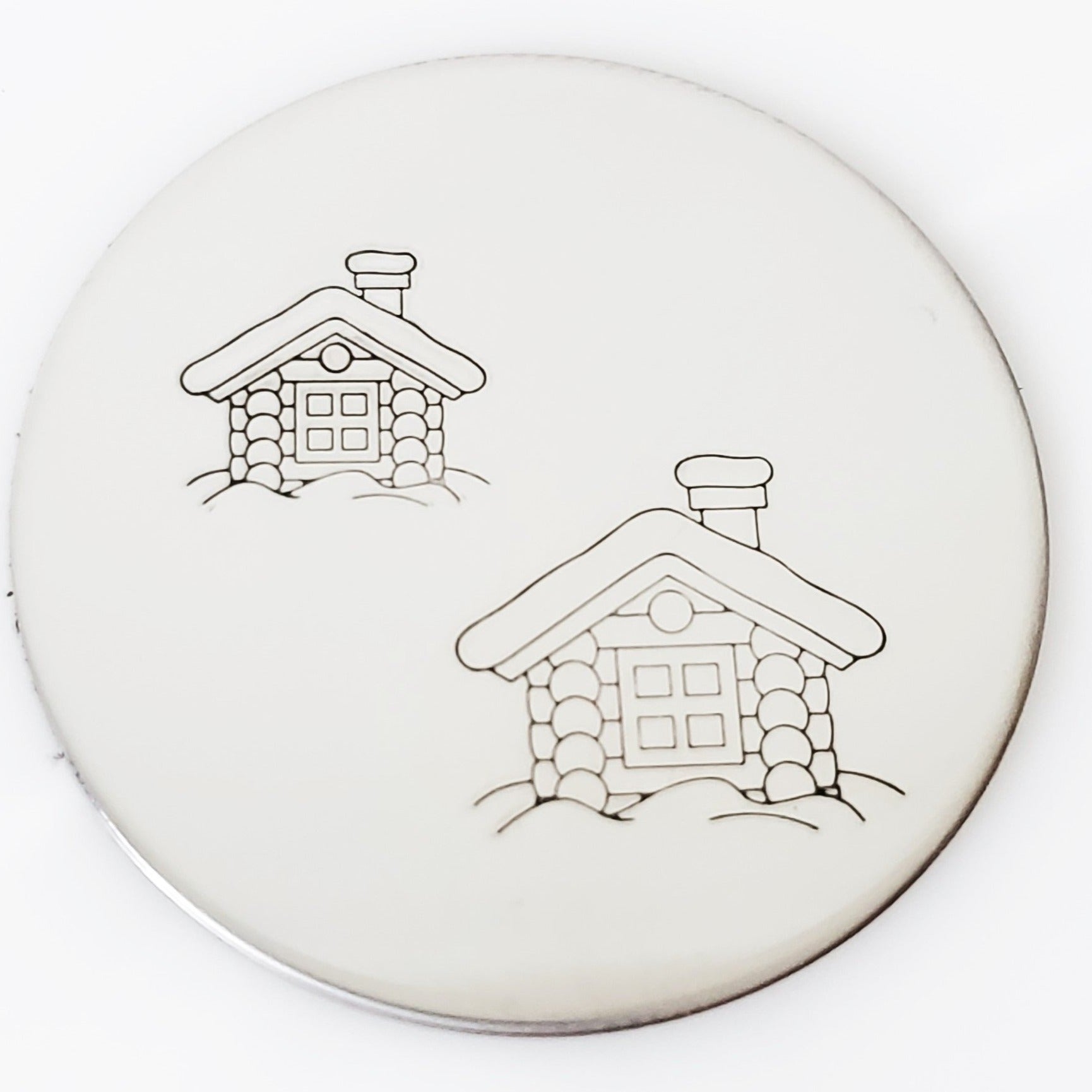 Snowy and wintery, our log house metal stamp design is expertly designed by Amanda Durrant!