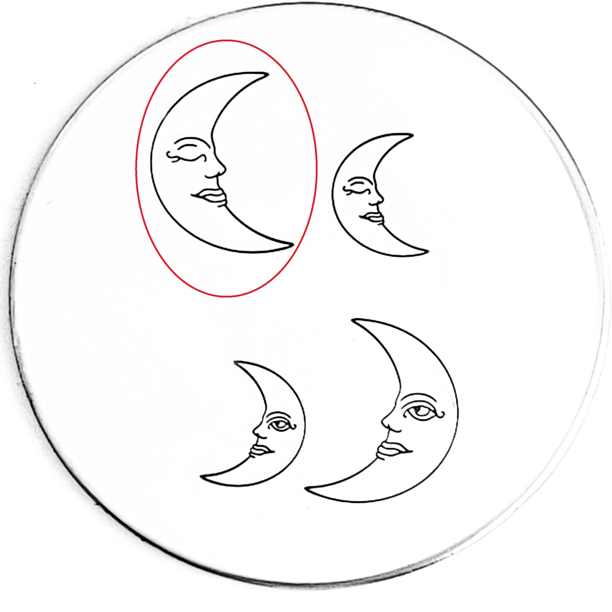 Another gorgeous lunar display of a waking or sleeping moon metal design stamp. Use with our Face Sun metal stamp, or just on it's own because it's so beautiful!