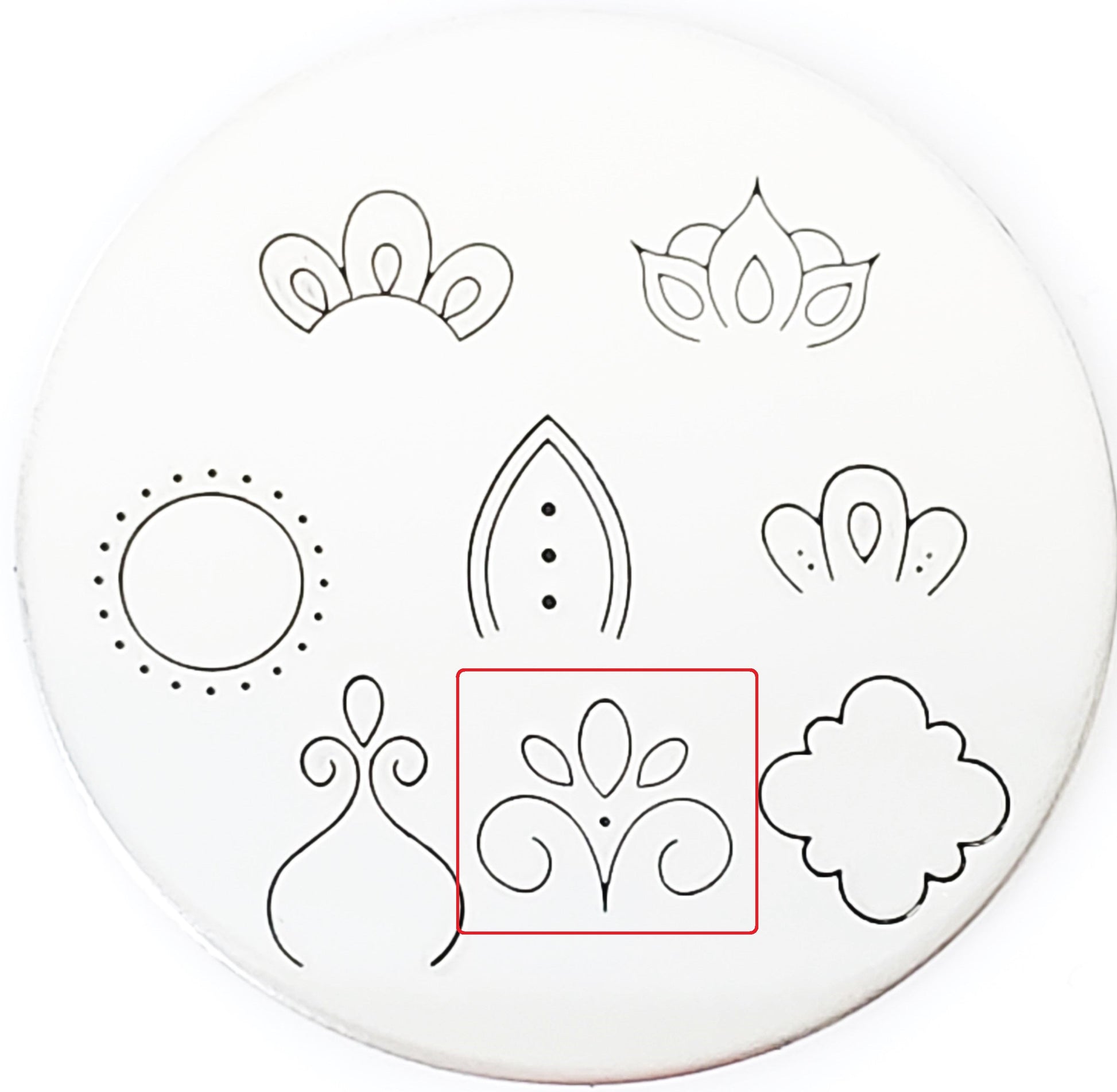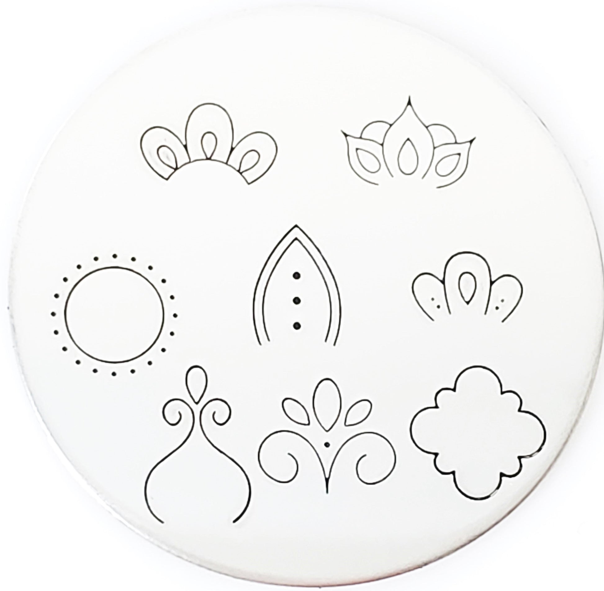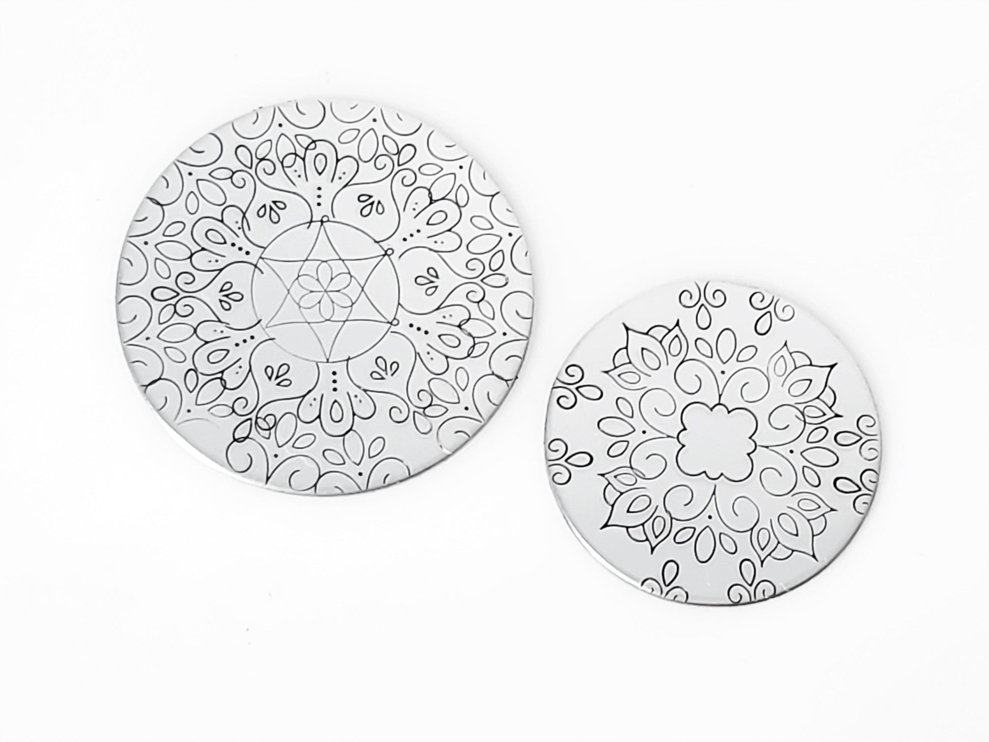 These new Mandala metal design stamps are perfect additions to our other mandala shapes and designs, or perfect to be used on their own within this set of stamps shown here! Whether you are trying to achieve enlightenment, calm your mind, or take a few moments in silence, our Mandala metal design stamps are just the hand stamping tools you need! Make a cuff with a silent reminder, carry a keychain, or try making a necklace that reaches into your soul and brings you comfort and peace. This drawing is by Amanda Durrant, and we love the peace it brings to our shop!