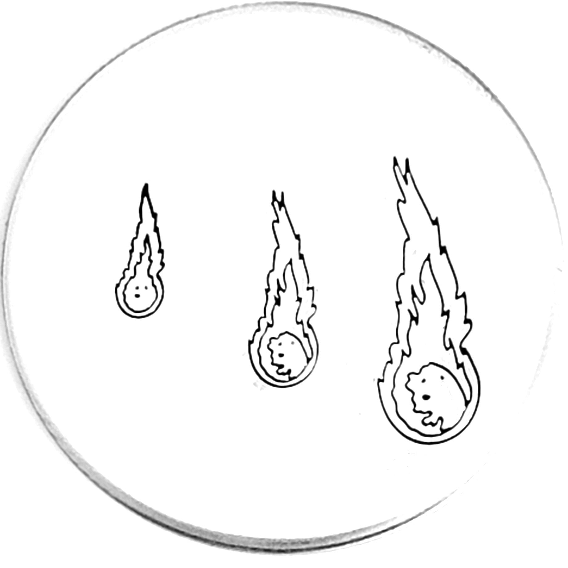 Is it a meteor, meteorite, or falling star? This fiery ball of space stuff is on a crash course for something! What will your meteor metal design stamp collide with in space?