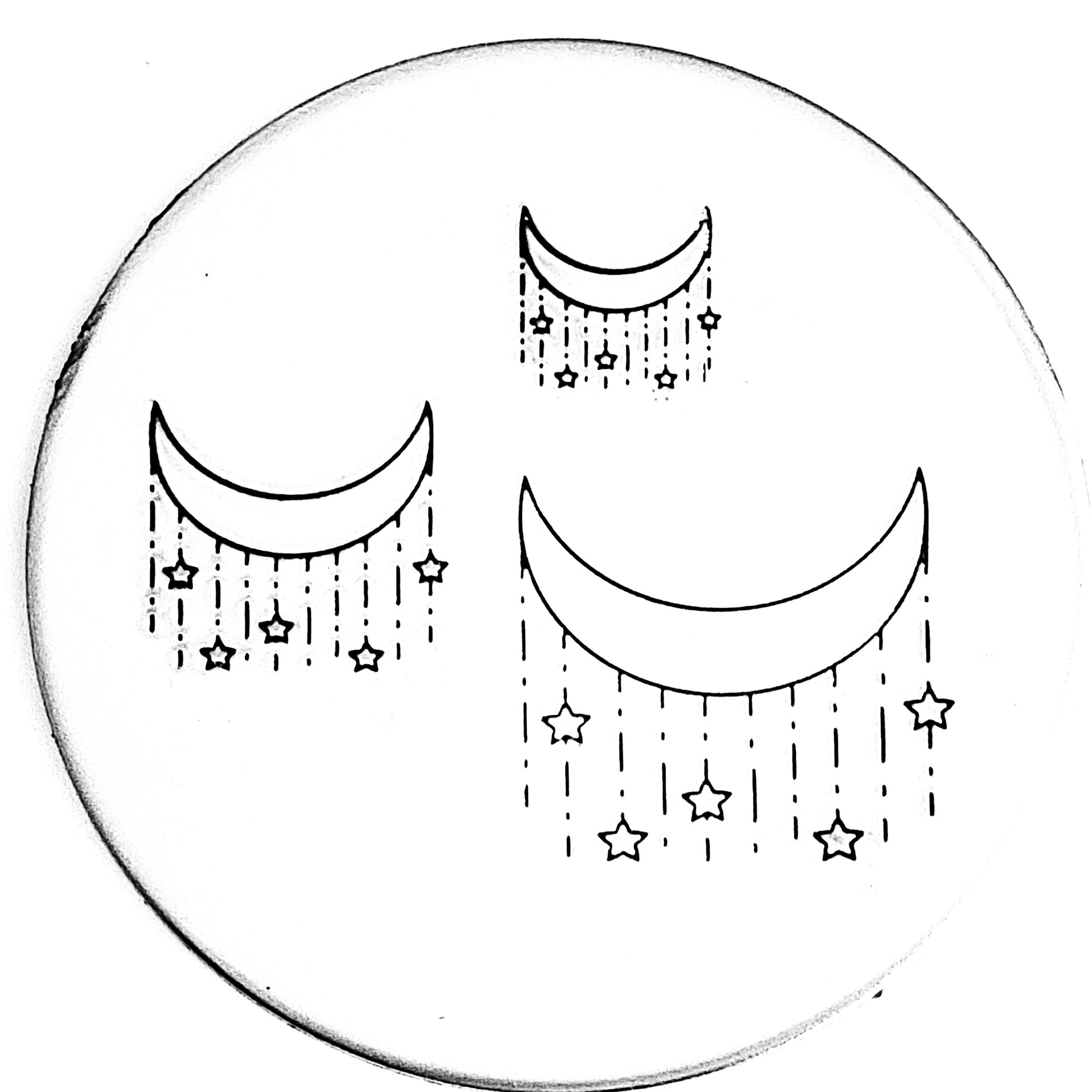 Another celestial beauty by Font Fixation, this moon with hanging stars metal design stamp is perfect for your crystals and mystical themed stamped works of art!