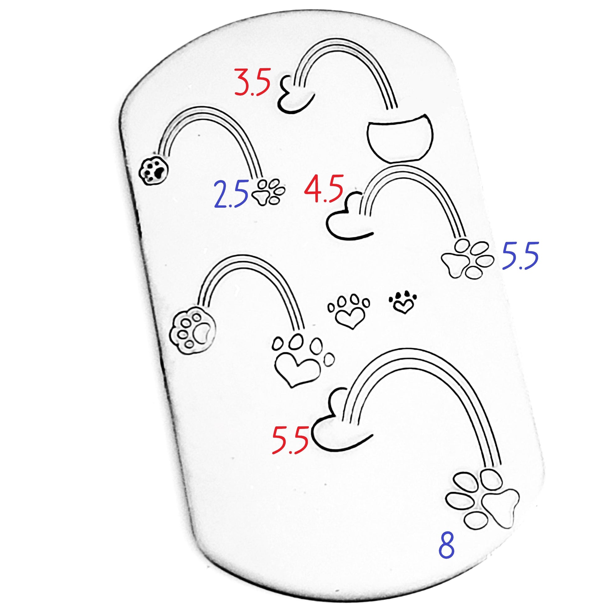 This rainbow isn't symmetrical and is perfect to hang off a word, add a cloud, or add a design stamp from which the rainbow is shooting! The possibilities with this design are absolutely endless, and perfect for all seasons and designs! Add a pawprint, and your furbabies are even crossing a rainbow bridge. SO much love to be had in just one stamp!
