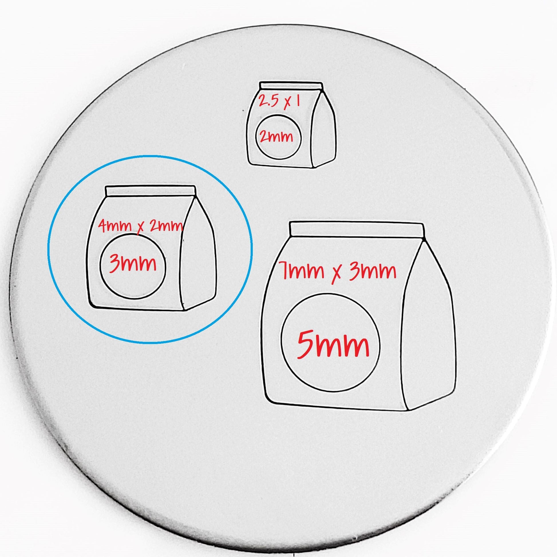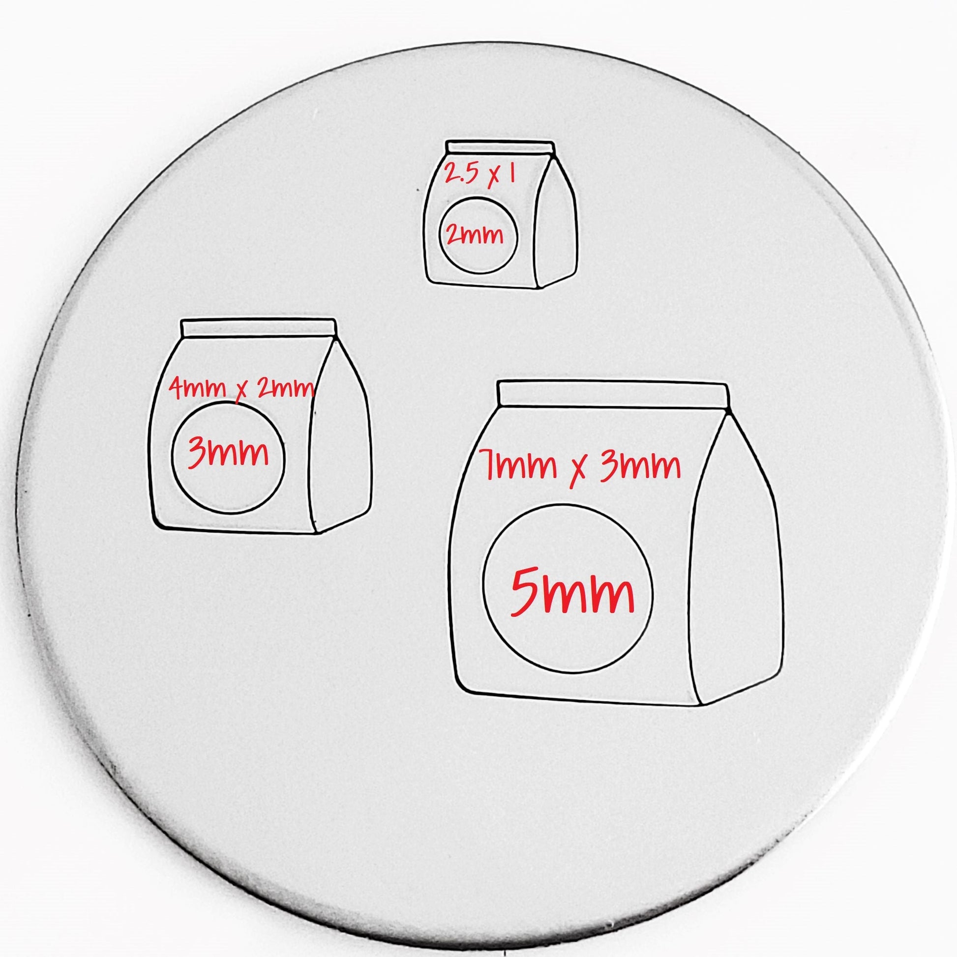 Pet Food hand stamps coming in the following sizes: