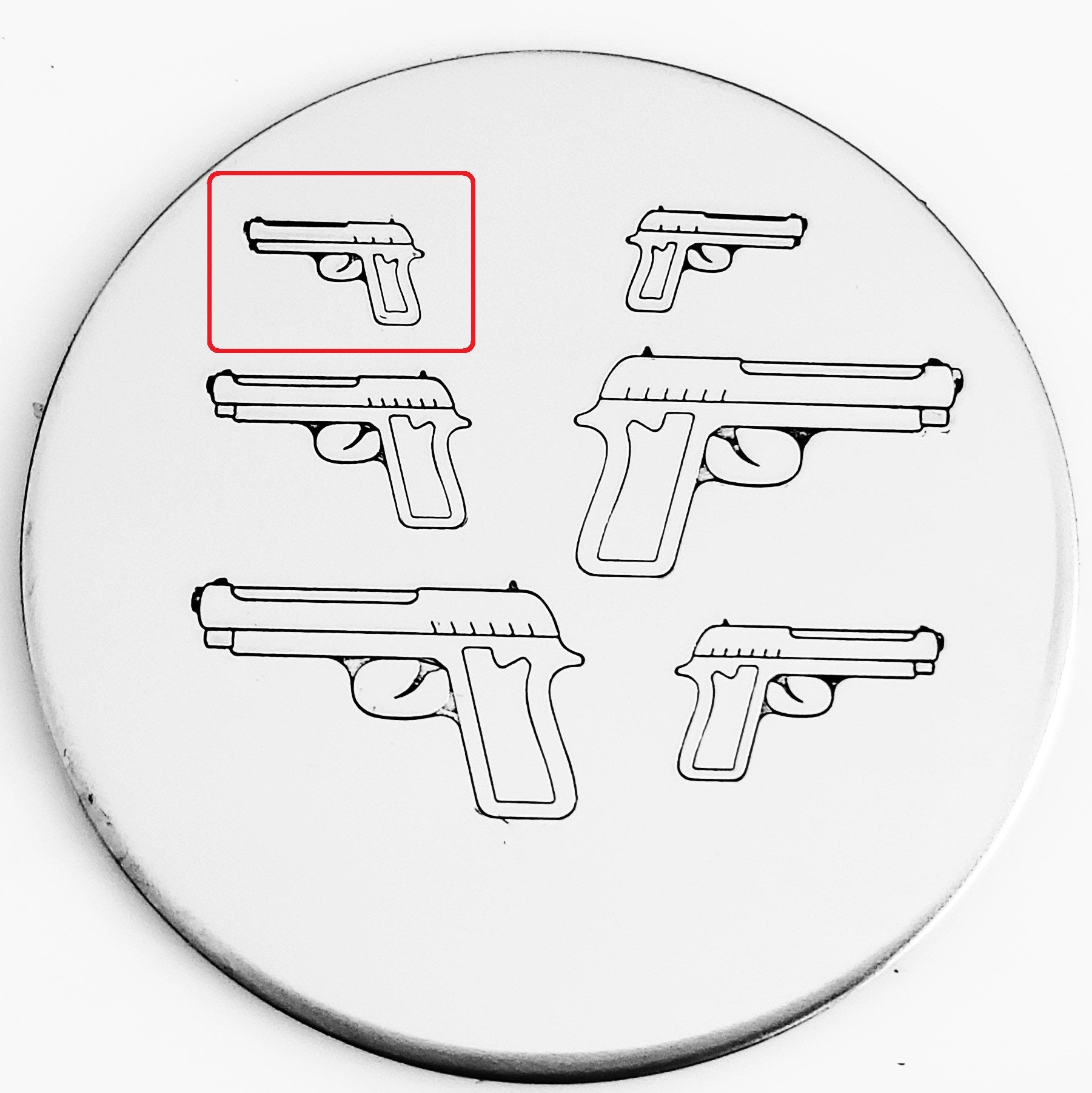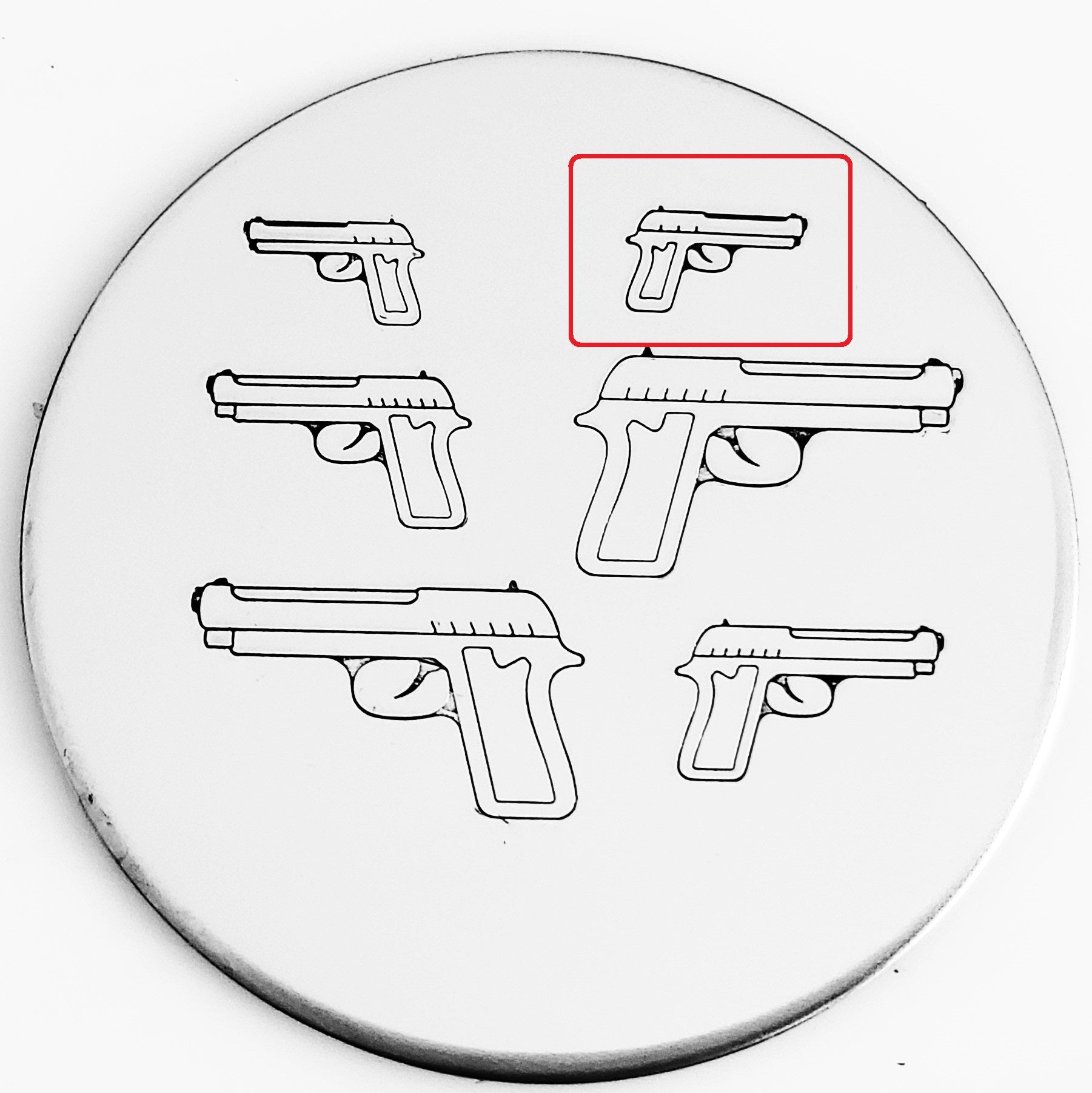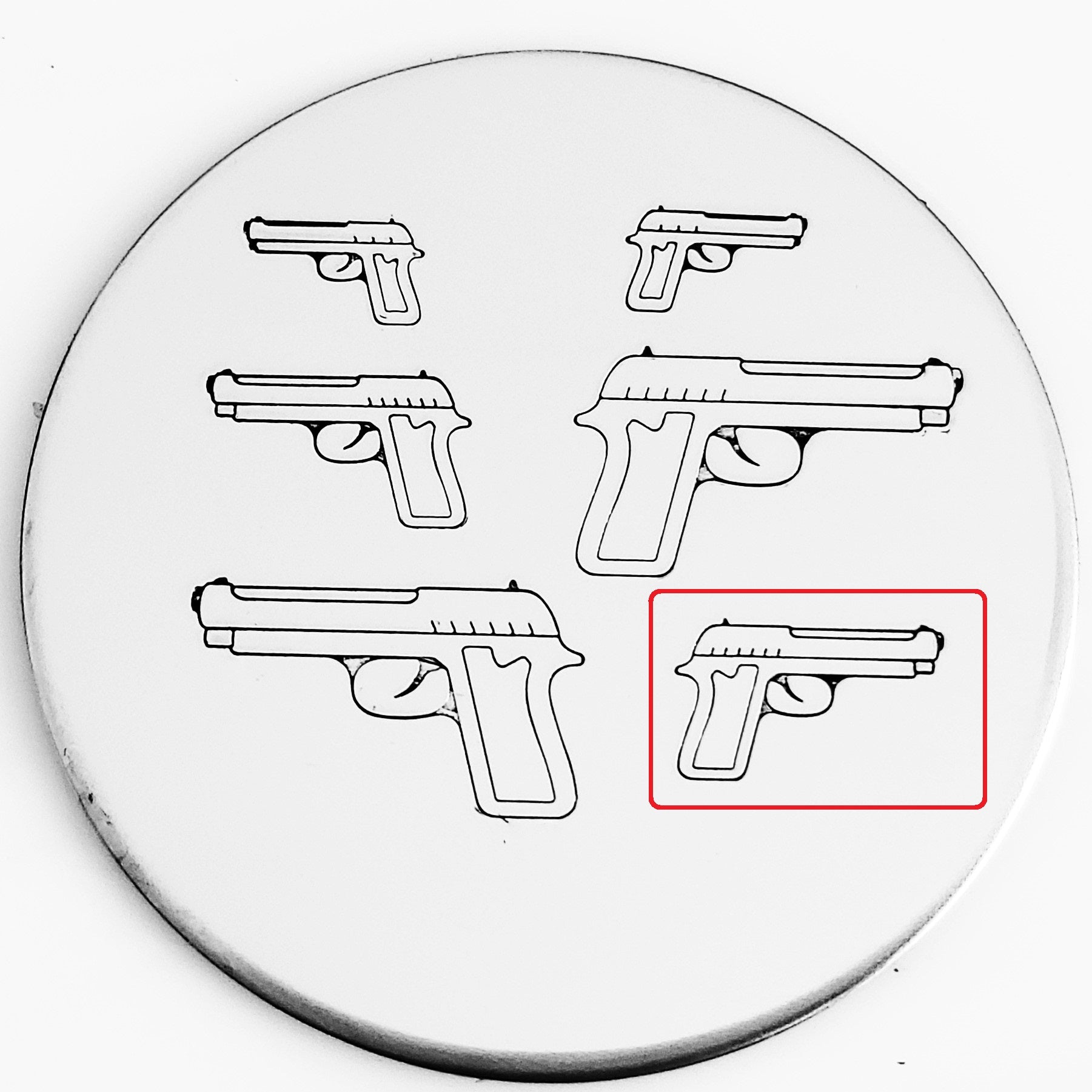 This pistol metal stamp is just what your hunting partner or customer needs! Pair with the ammunition, antlers, shield, doe/deer and you have a full hunting scene!