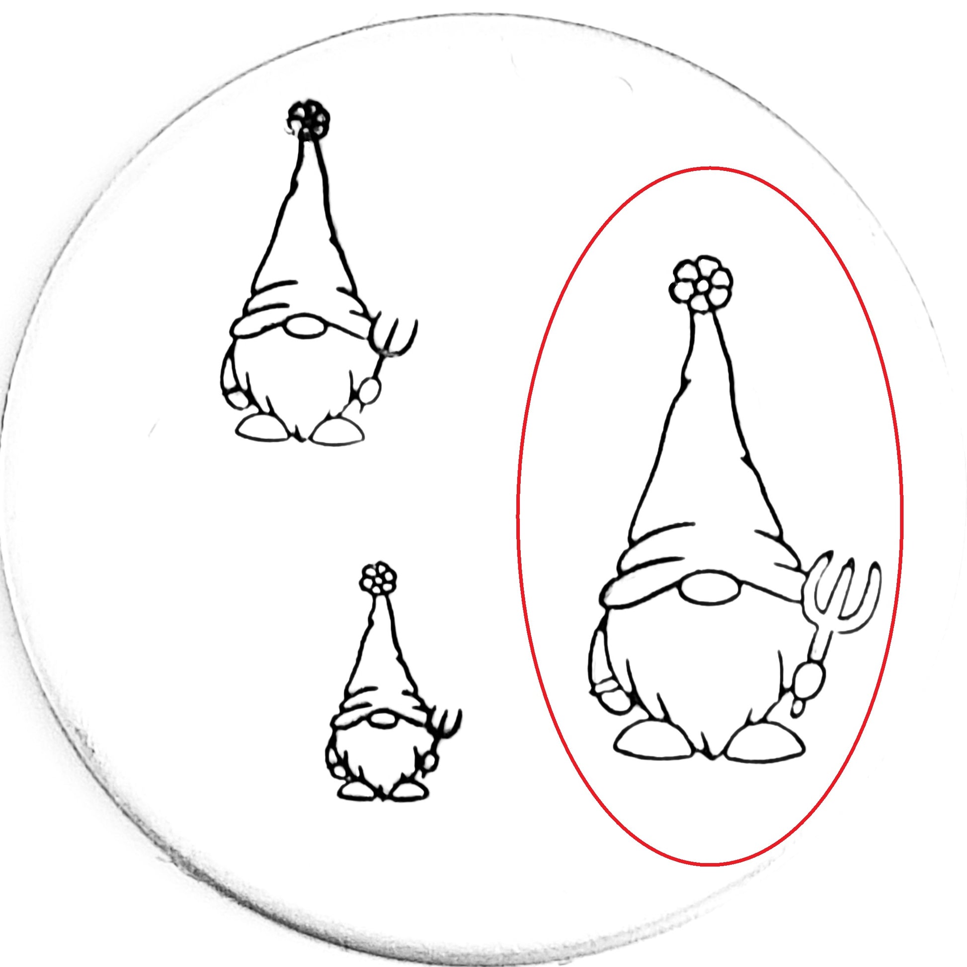 Nothing says 'cuteness' like this little pitchfork trowel gnome! Perfect for the garden and gardener in your customers! This design stamp could also be used for Halloween!