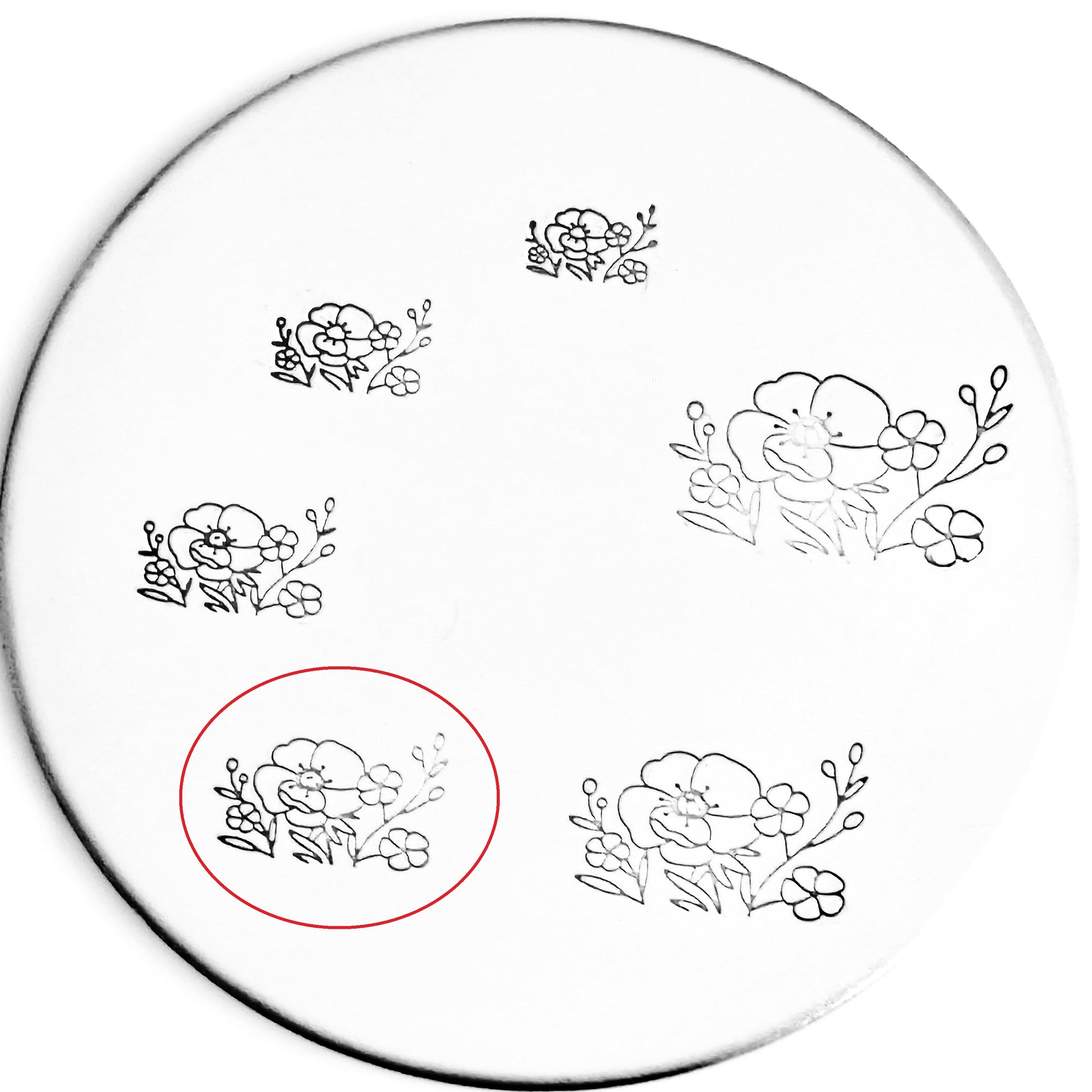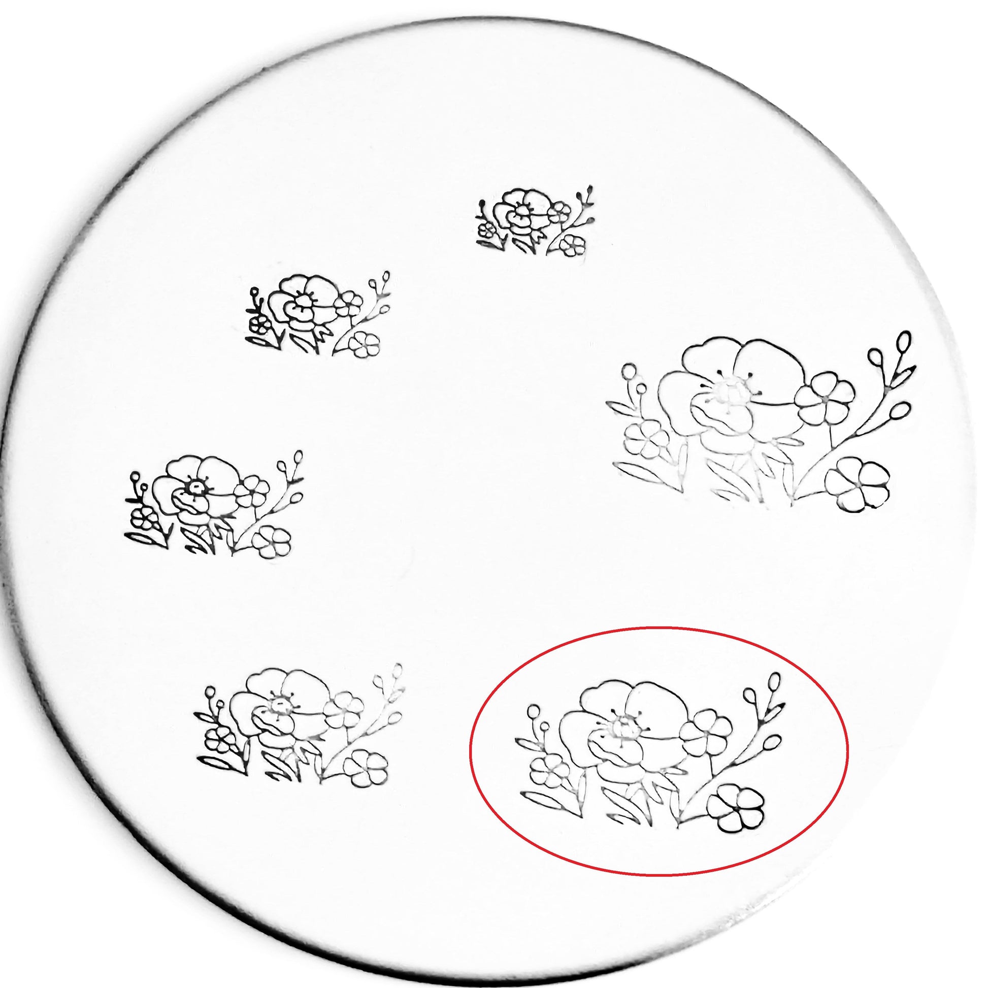 These lovely flowers metal design stamps can be paired with a lot of hand stamped designs! Whether it's popping up out of words, the Truck Bed hand stamp, or popping up out of a Pocket hand stamped design, these bouquets are ready for adventure and beauty!