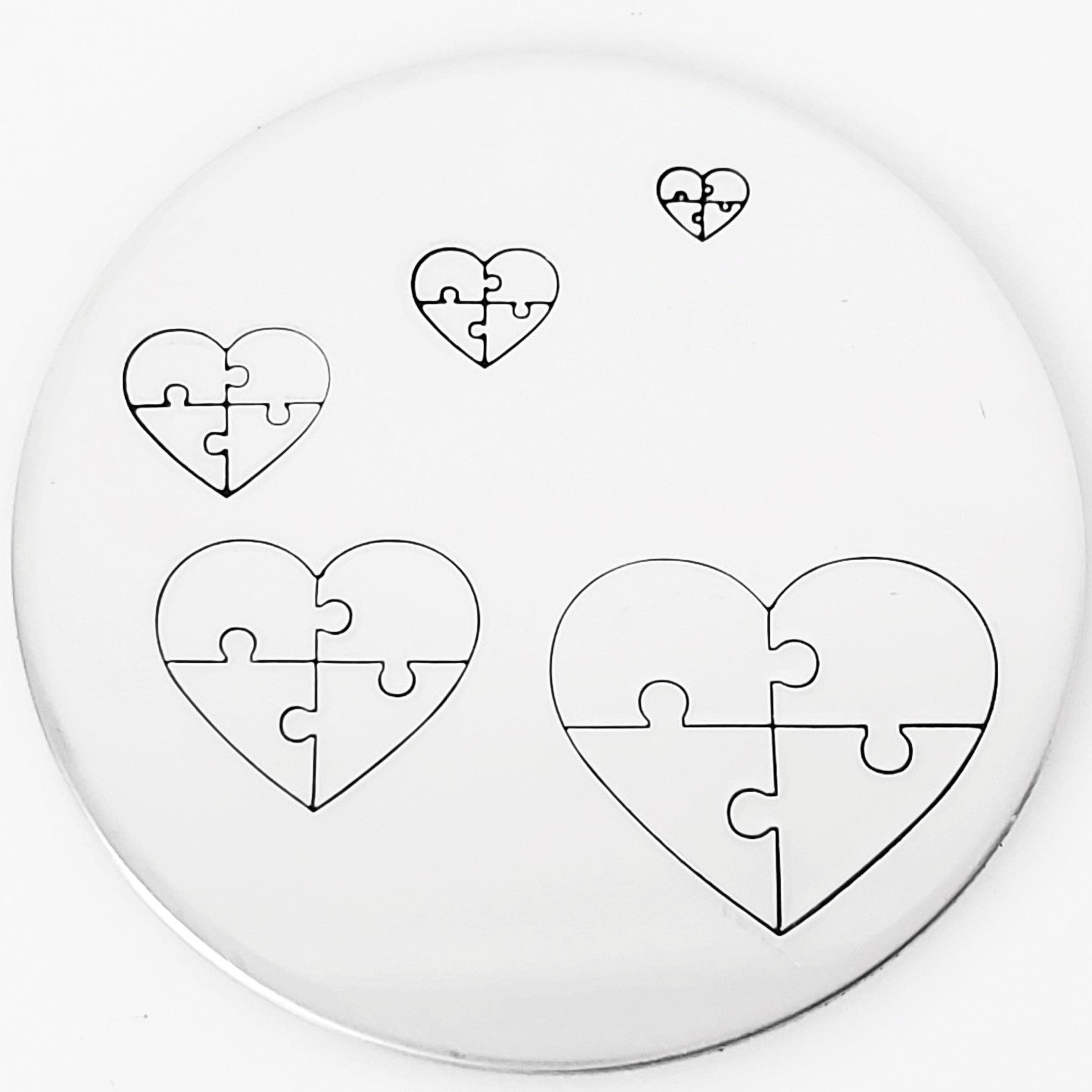Puzzle metal design stamps. It seems like such a simple thing, so why didn't we carry them until now? Puzzle pieces fit together, stand apart, are the missing pieces, or fight until all the pieces fit. We have so much love for our puzzle piece hand stampers, we asked our friend, Melissa Demke, to draw up several designs to spread the love even further. We think this line of puzzle piece metal stamps are pretty special, unique, and we can't wait to see what you all hand stamp with their image. For more puzzle piece hand stamp designs, check here: Puzzle Pieces This design was expertly designed and drawn by Melissa Demke! Thank you, Melissa!