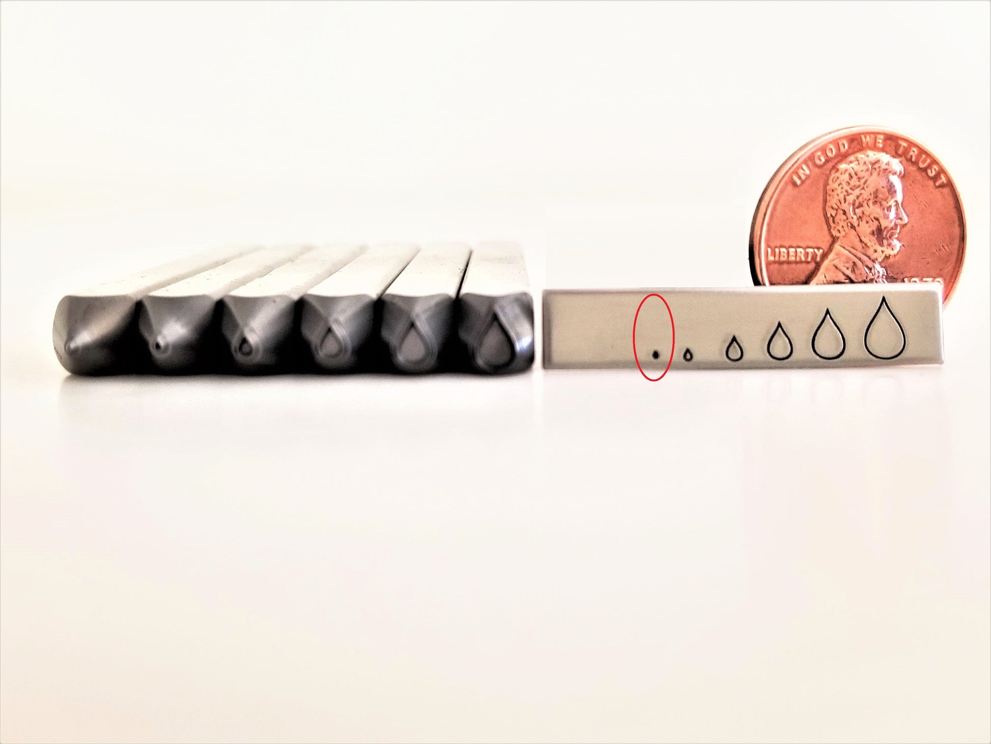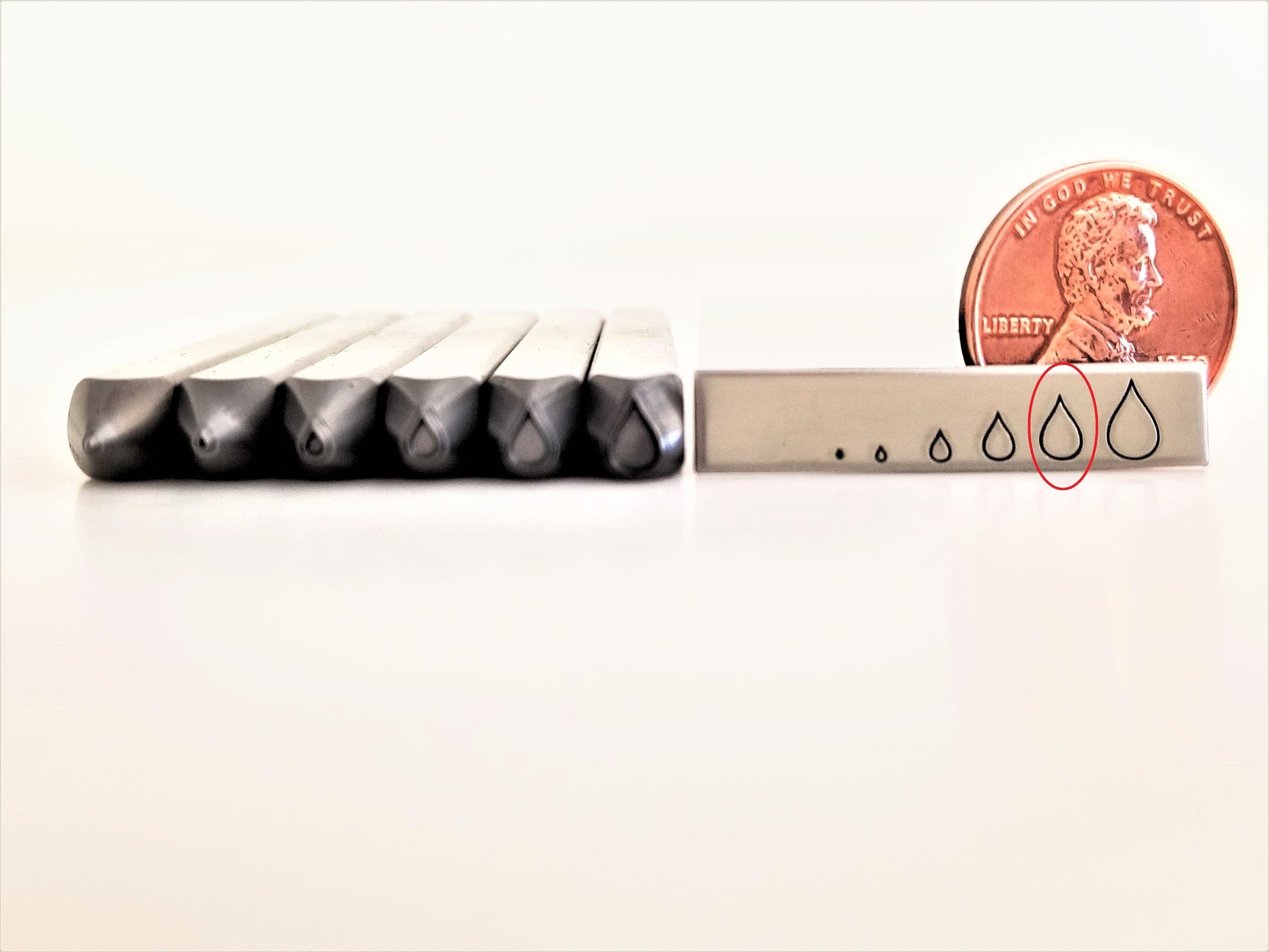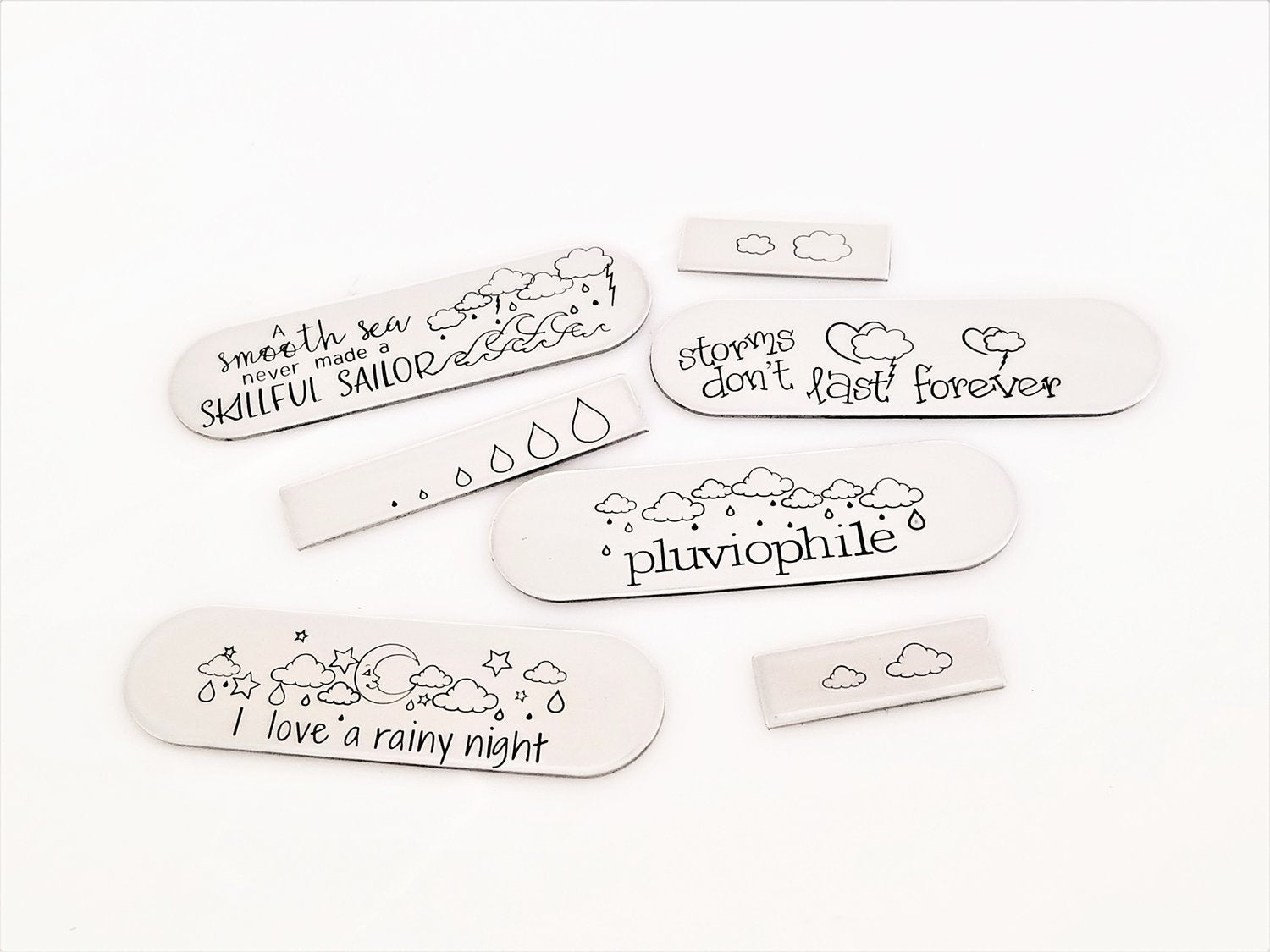 Rain, rain, go away! But wait! These Simple Dimple rain drop metal design stamps are TOO cute! Pair these hand stamping drops along with our clouds and lightning, and you have a pluviophile's dream! (Google it) :)