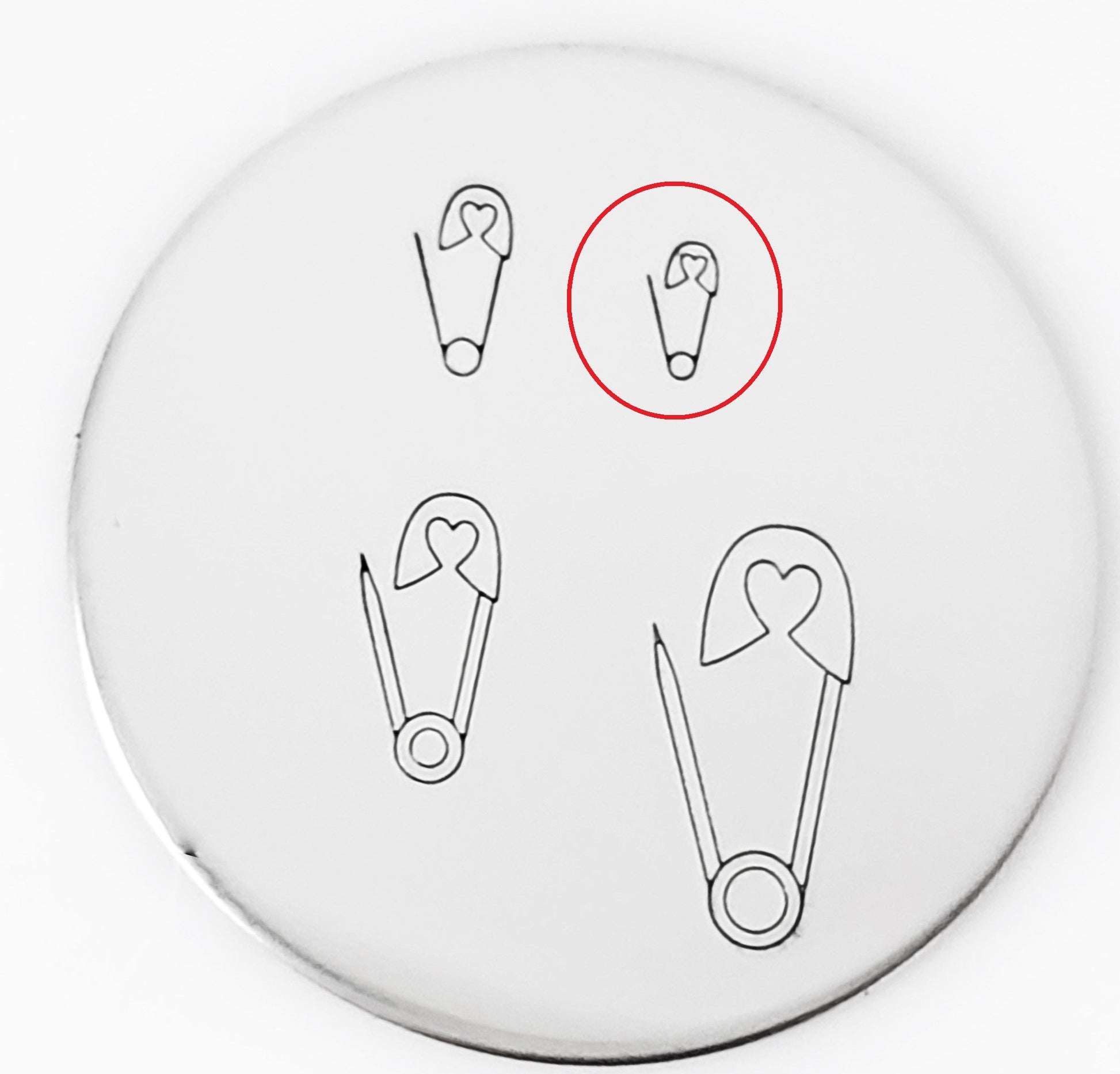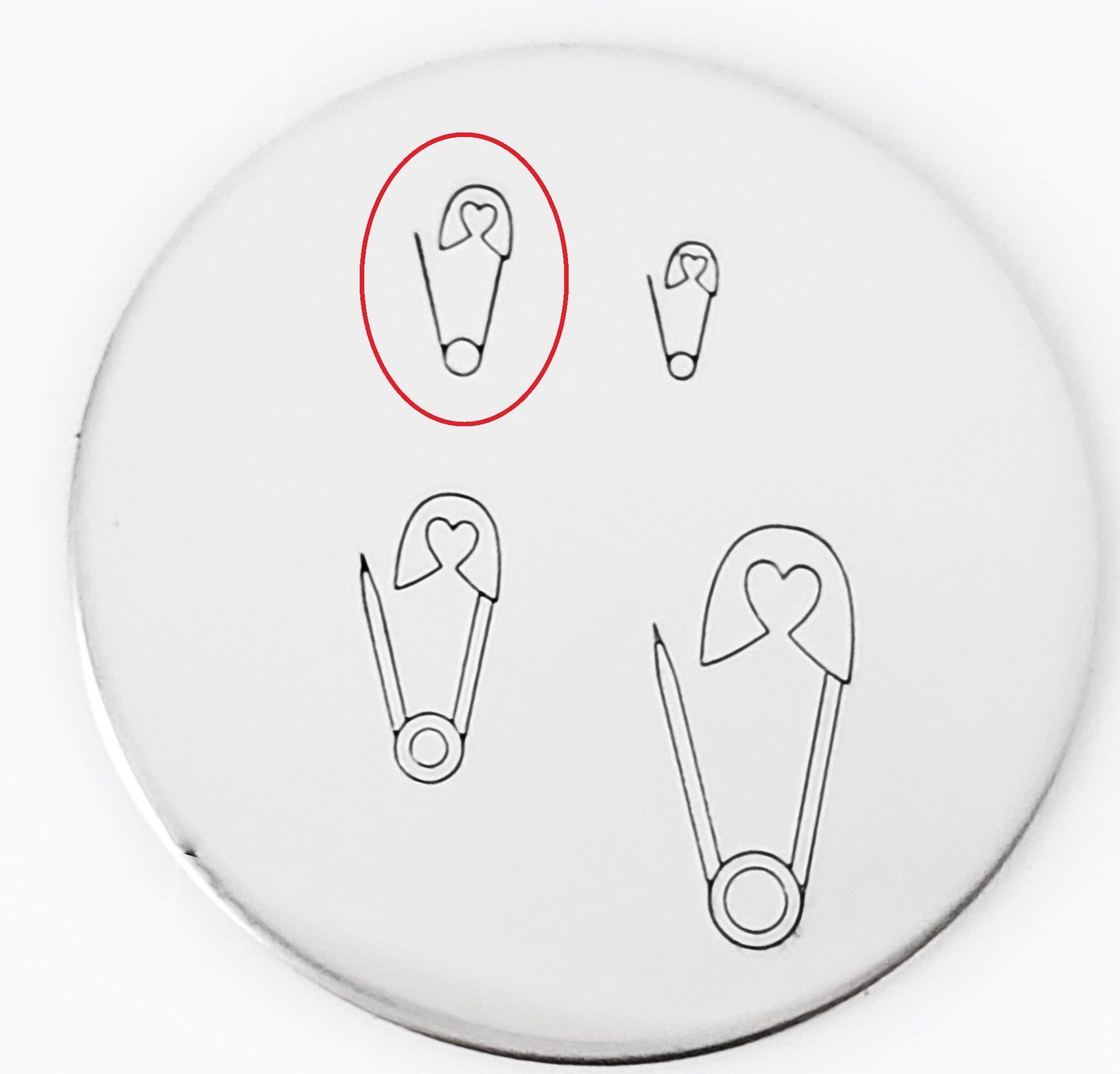Put a pin in it! This heart safety pin metal design stamp is perfect for all baby themed hand stamped works of art! Thanks to Amanda Durrant for creating this line of adorable baby themed metal design stamps, just in time for Christmas ornaments, but useful all year!