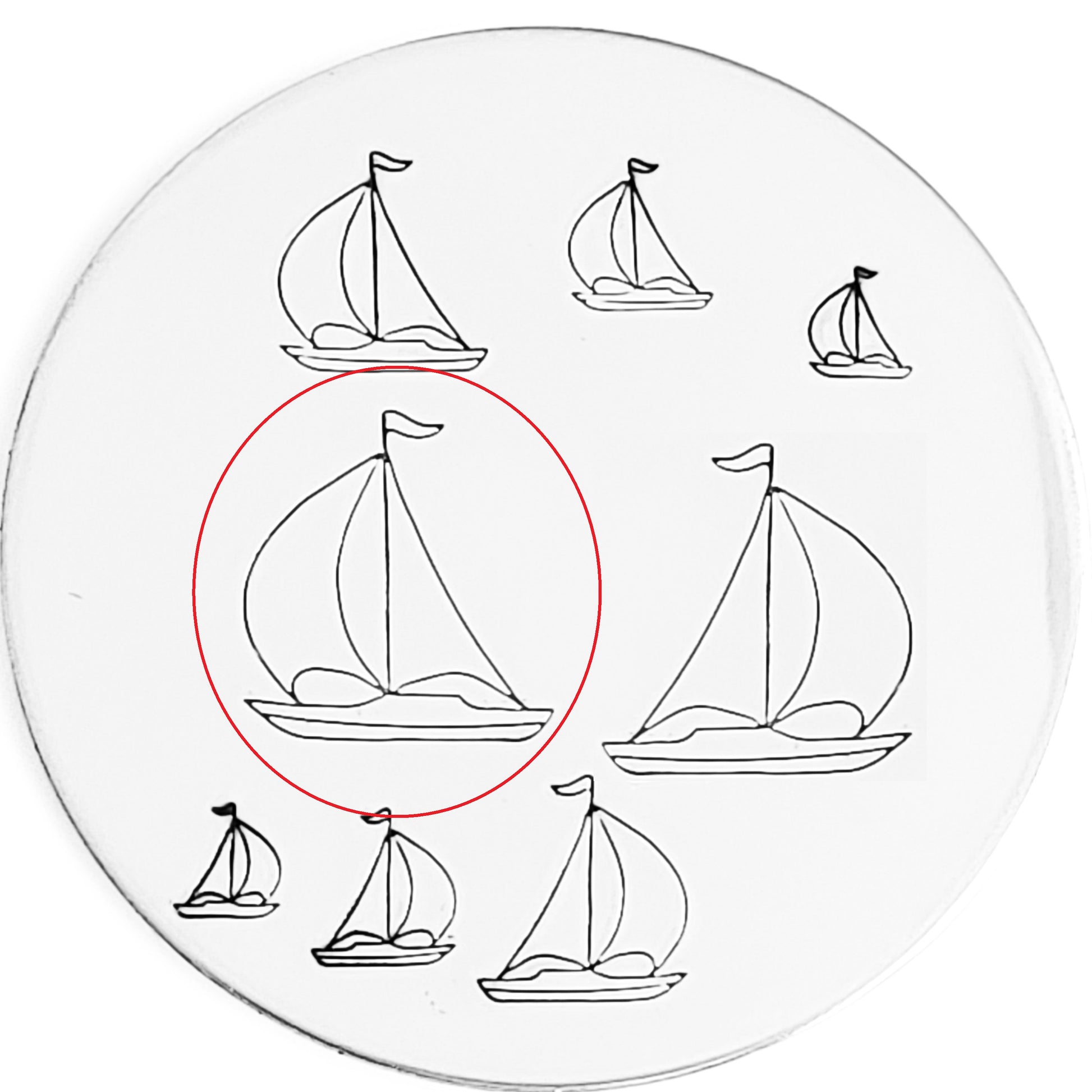 I'm sailing away! So many sizes of Sailboat hand stamp and left and right means you can have a full regatta going on for your nautical customers!